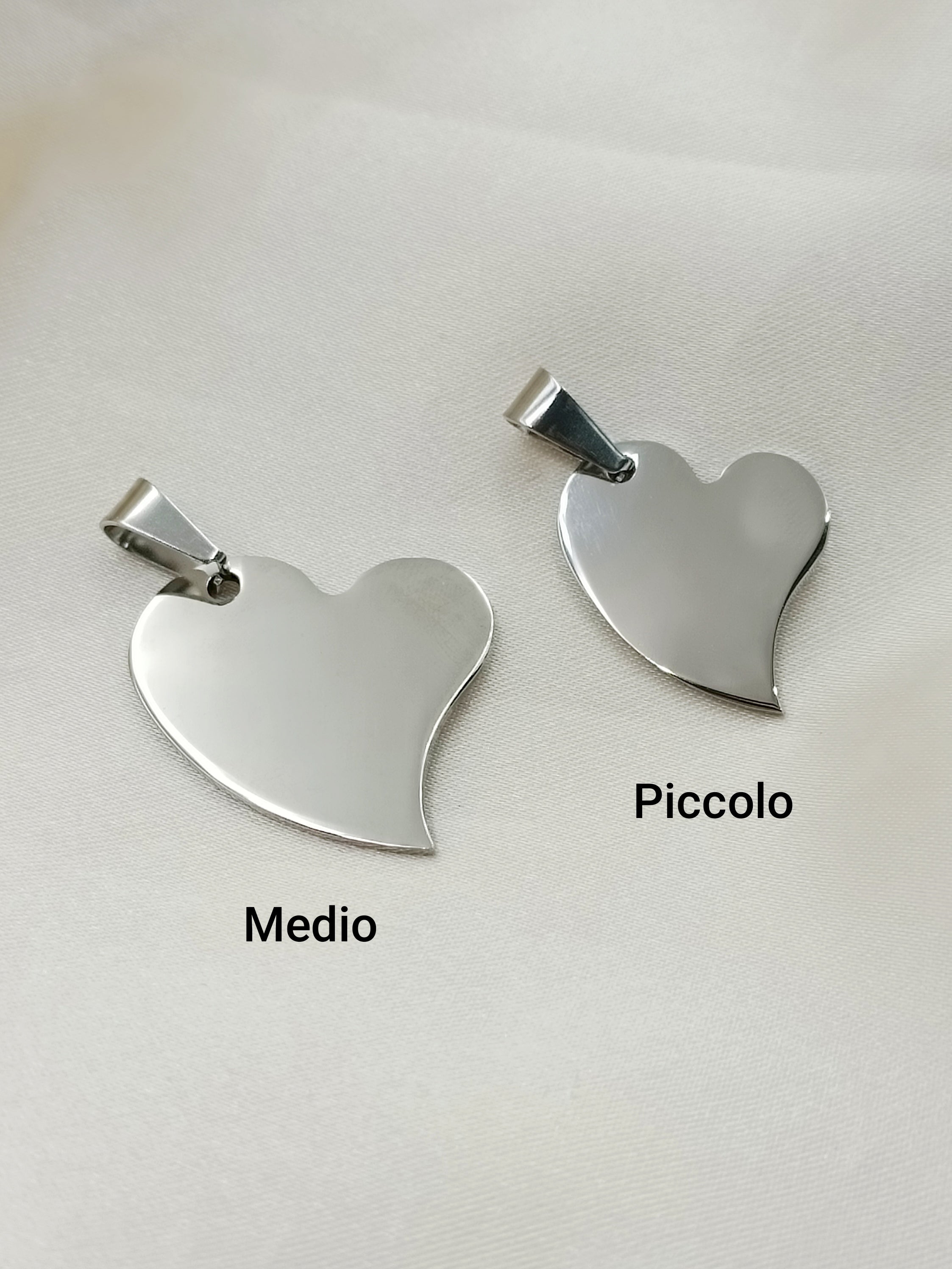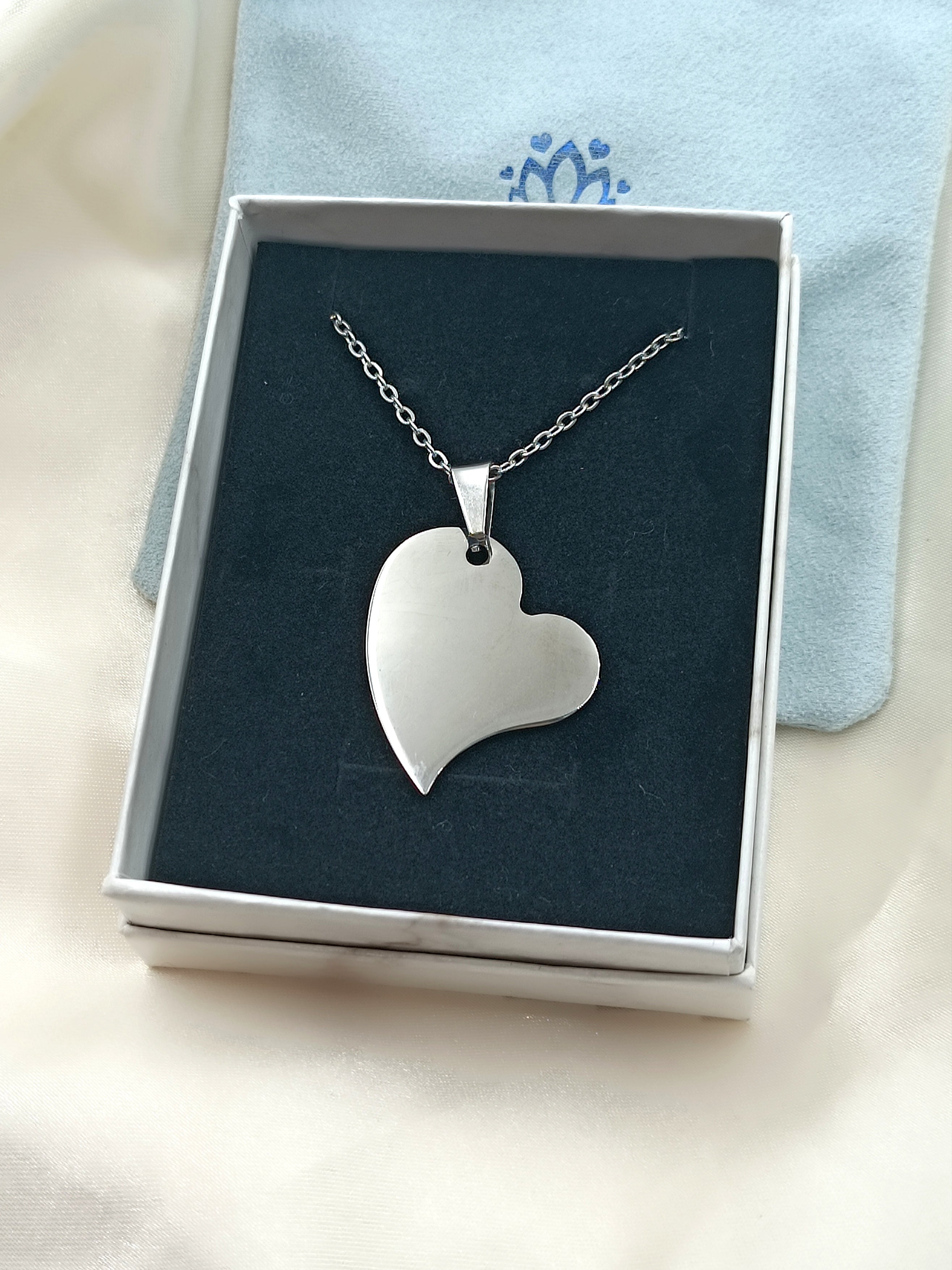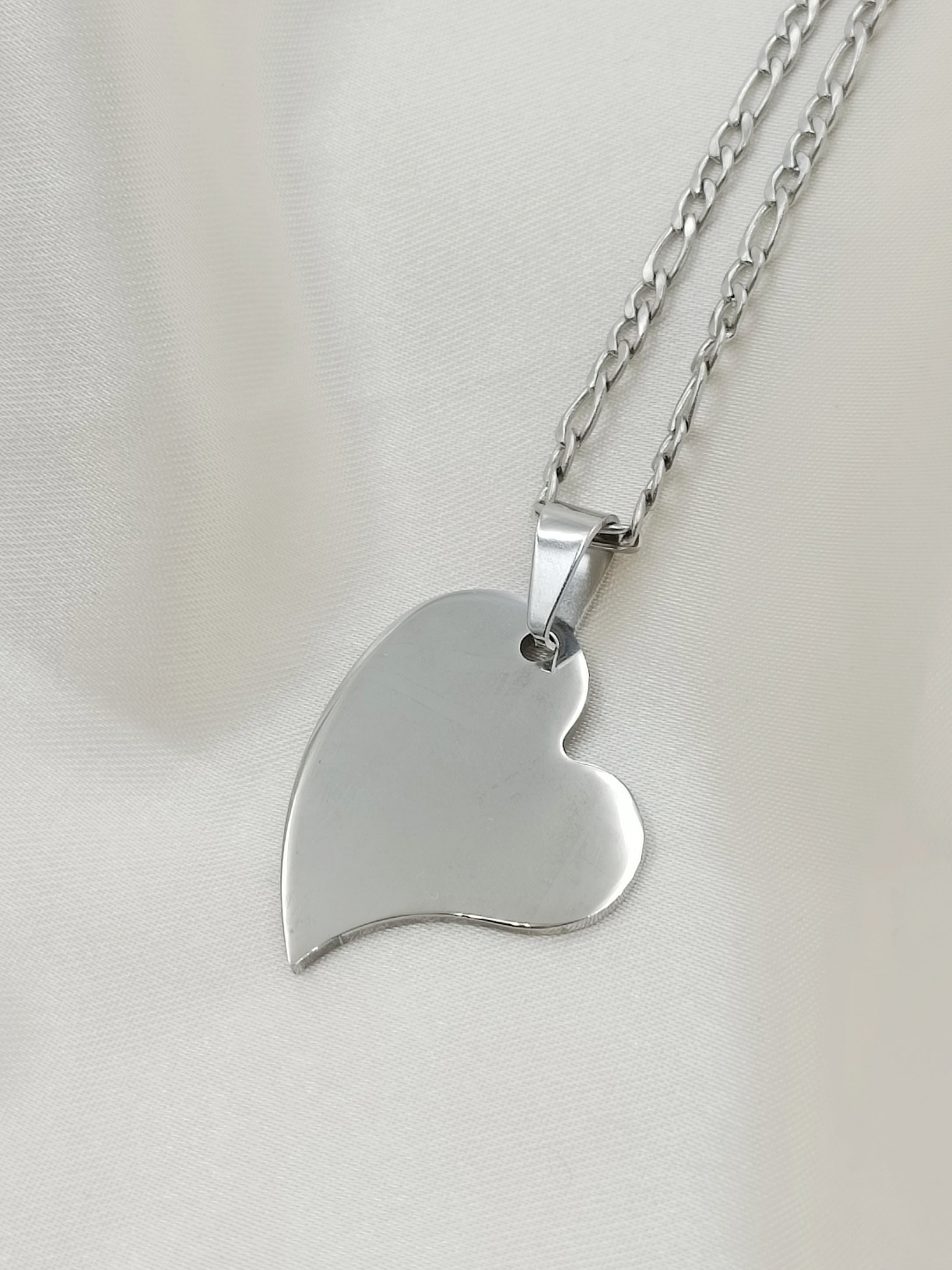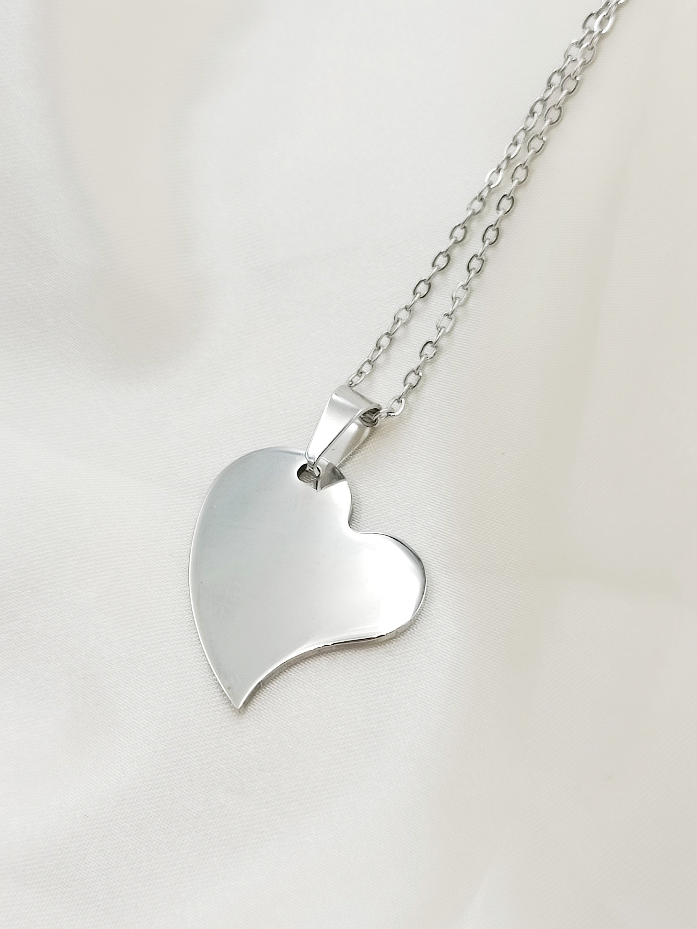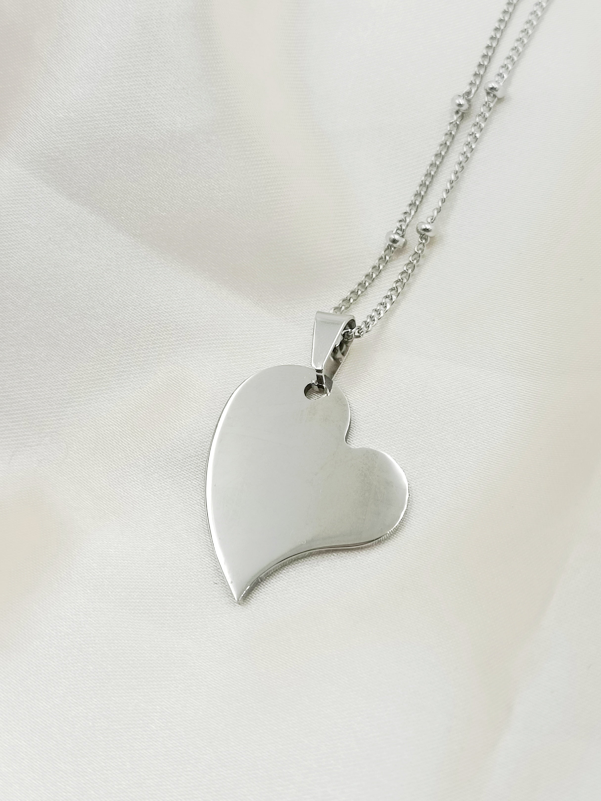 Collana in acciaio anallergico e inossidabile con ciondolo cuore storto medio.
