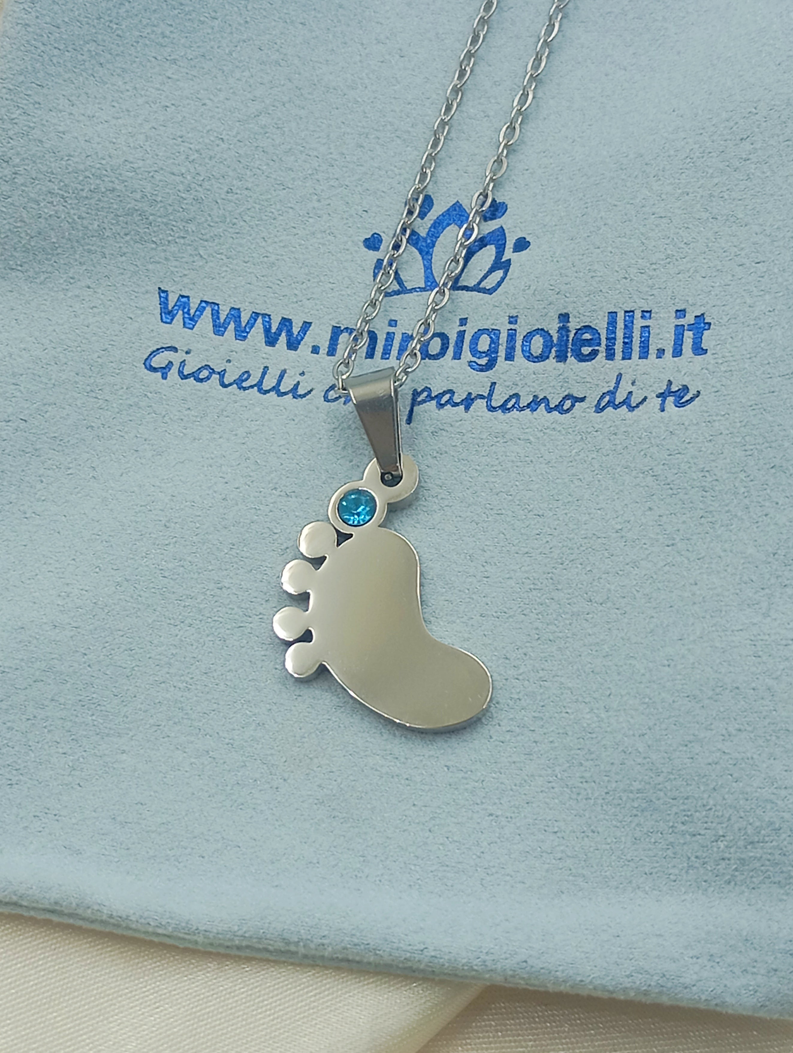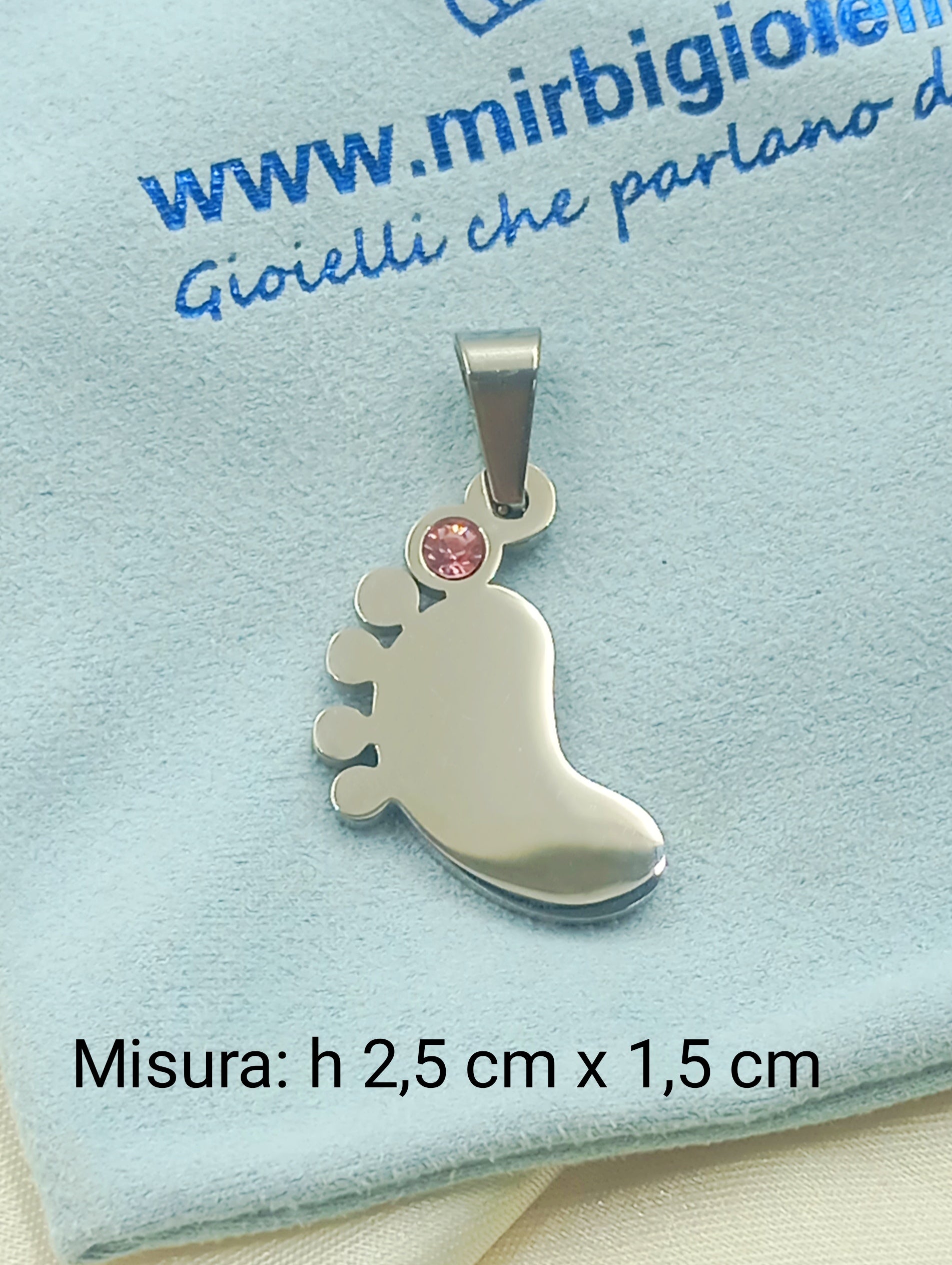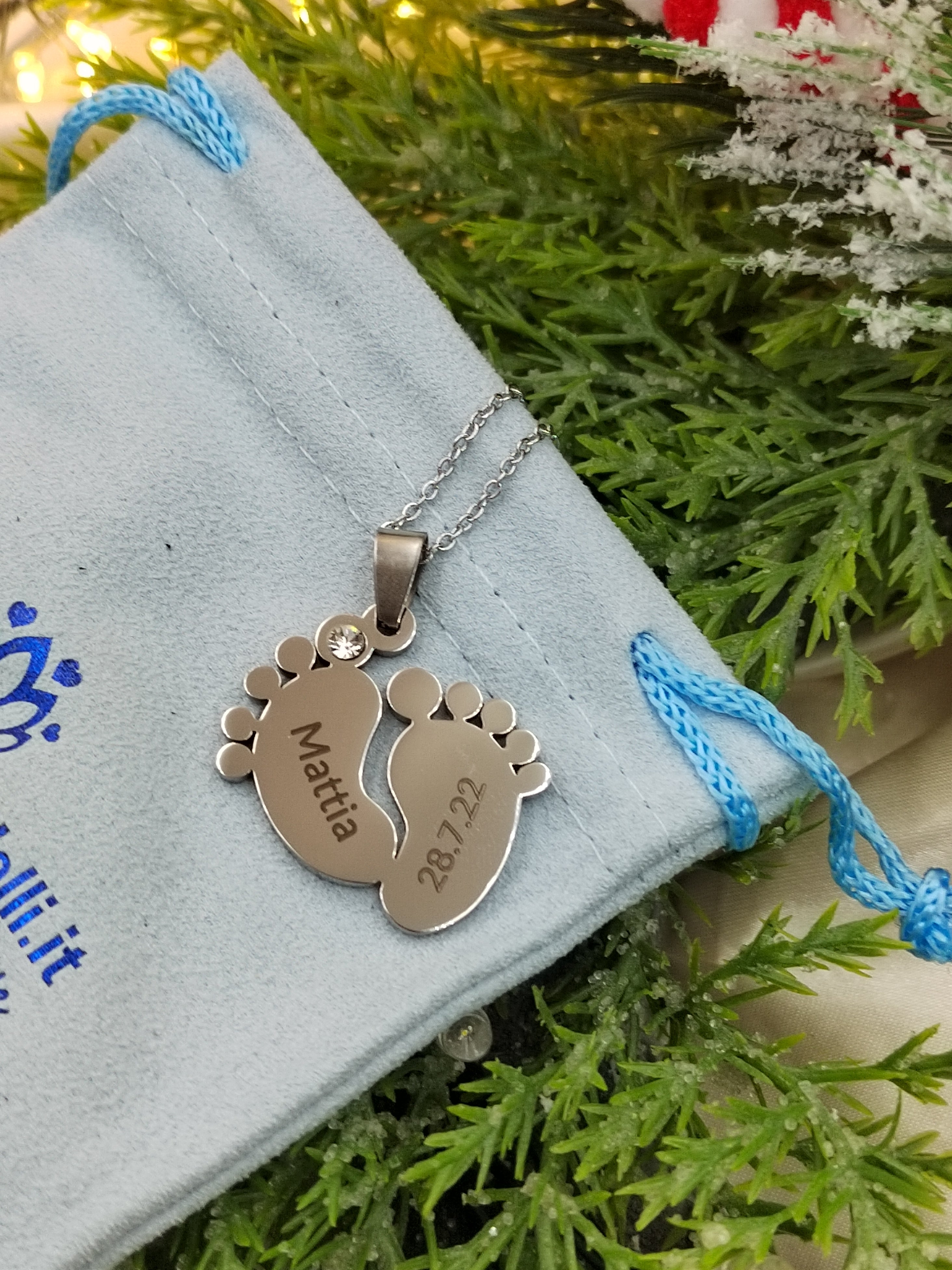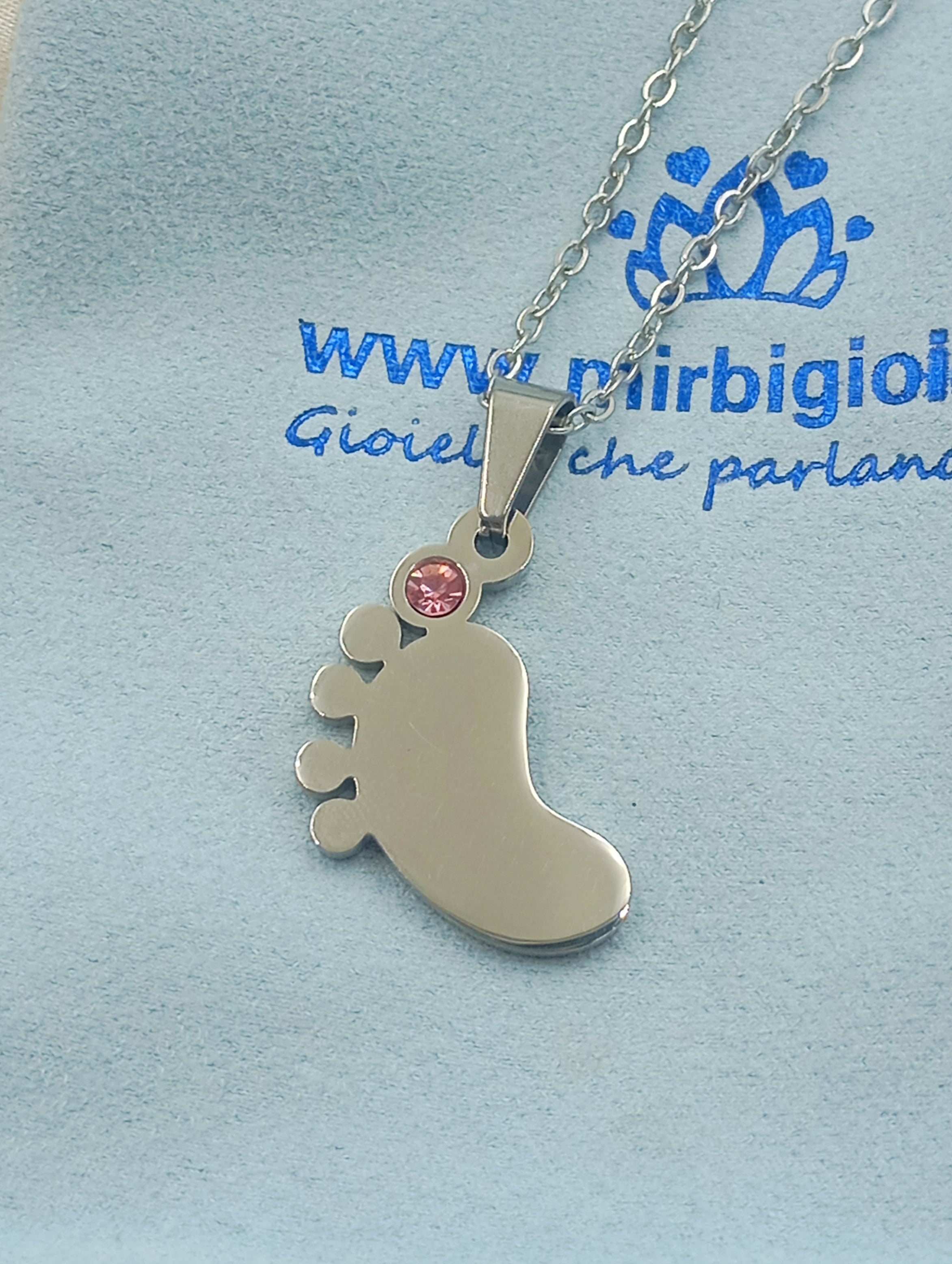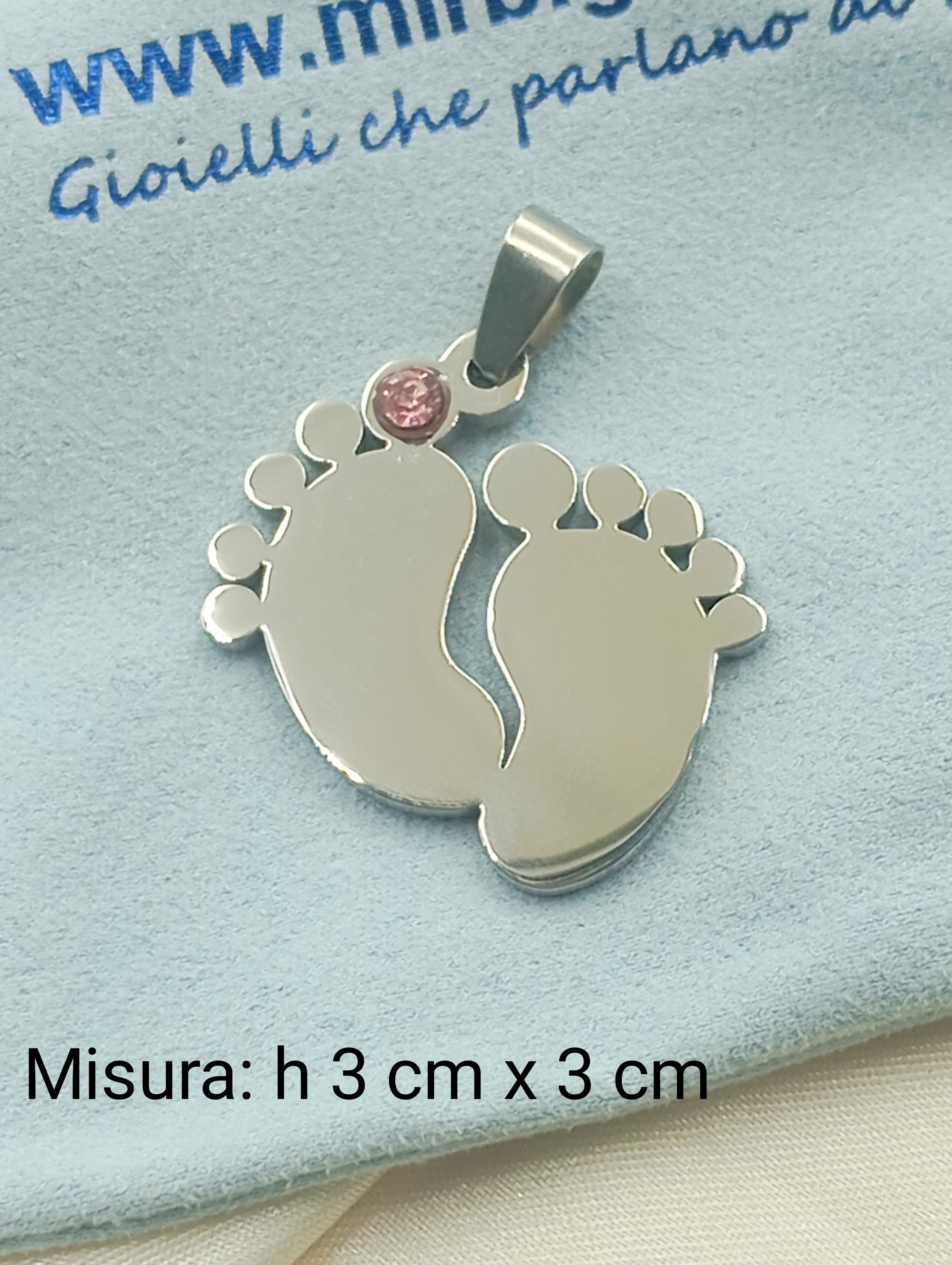 Collana in acciaio anallergico e inossidabile con ciondolo piedini, disponibili nella versione singola o doppia.