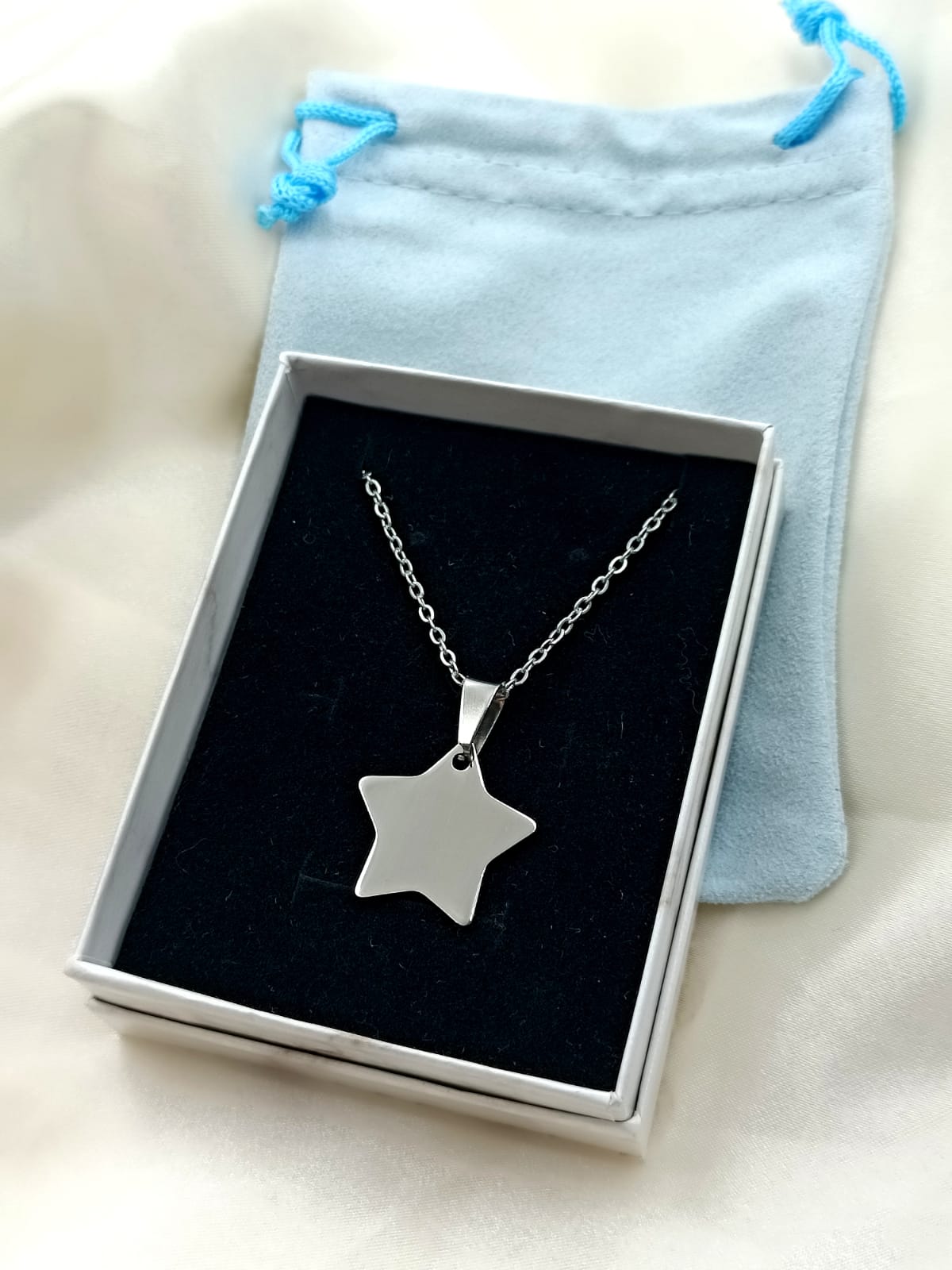 Collana con stella in acciaio inossidabile e anallergico.