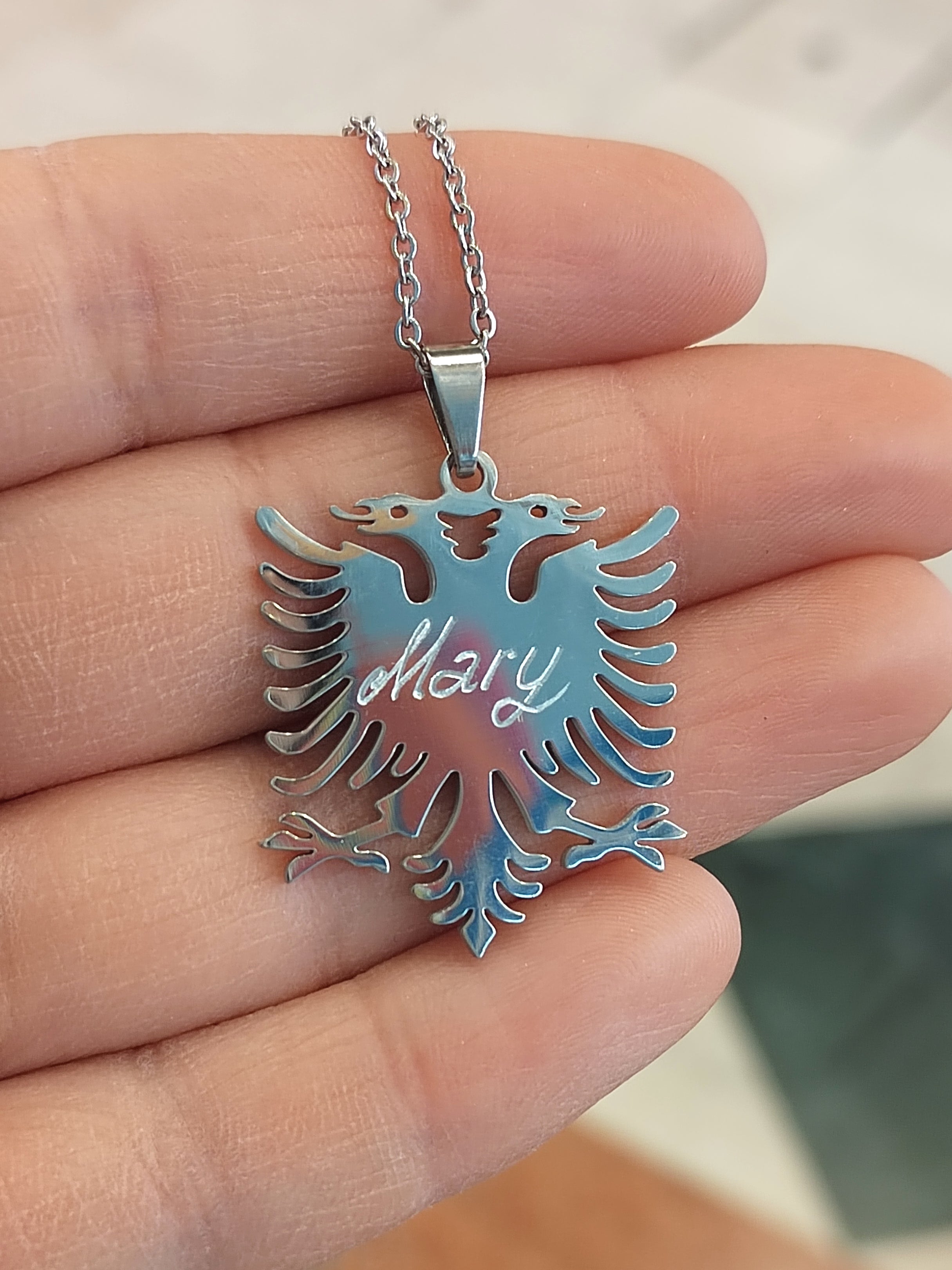 Collana Albania formato piccolo in acciaio inossidabile e anallergico , personalizzabile con incisione.