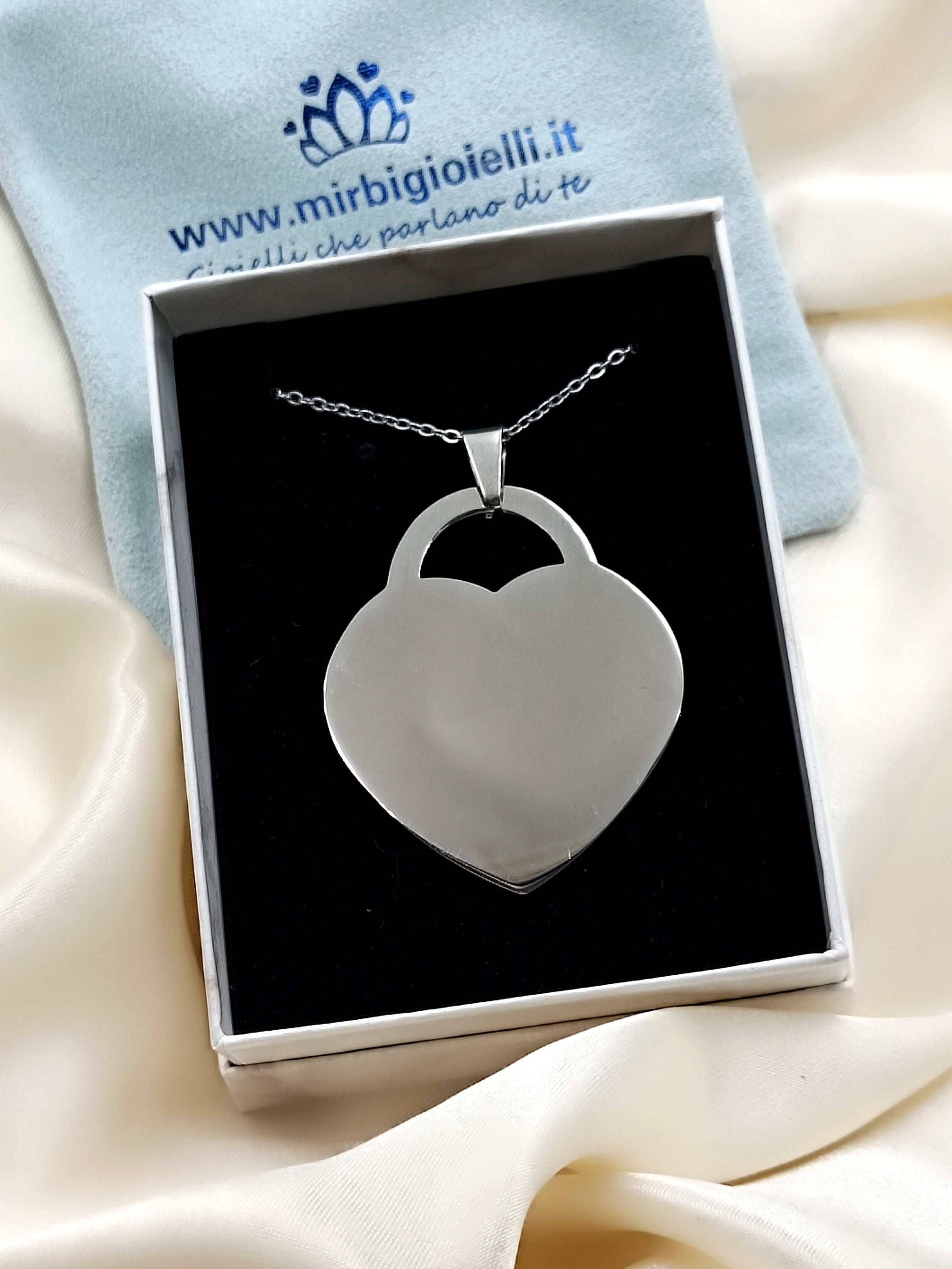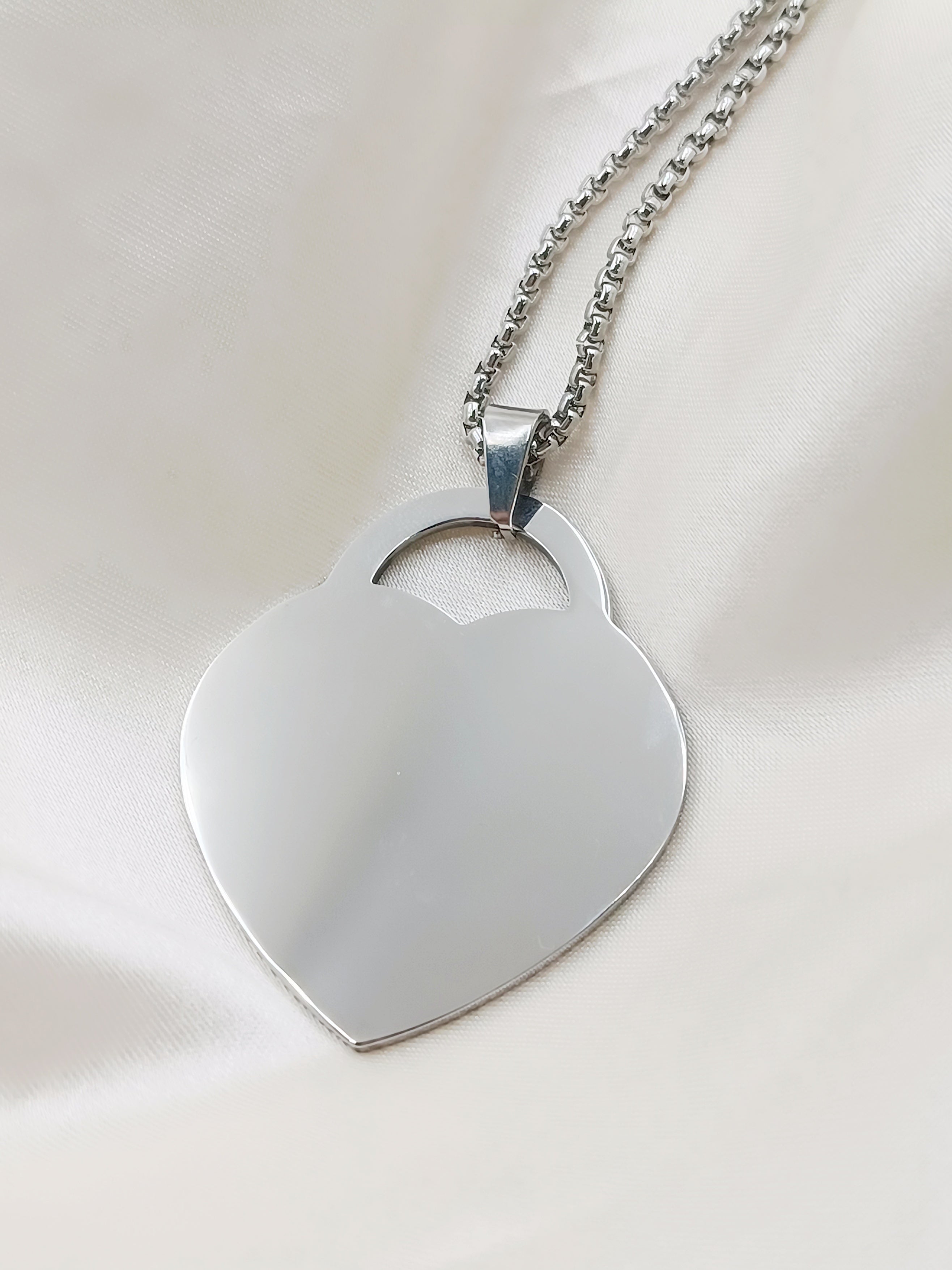 Collana con cuore lucchetto big in acciaio anallergico e inossidabile, personalizzabile con incisione o fotoincisione!