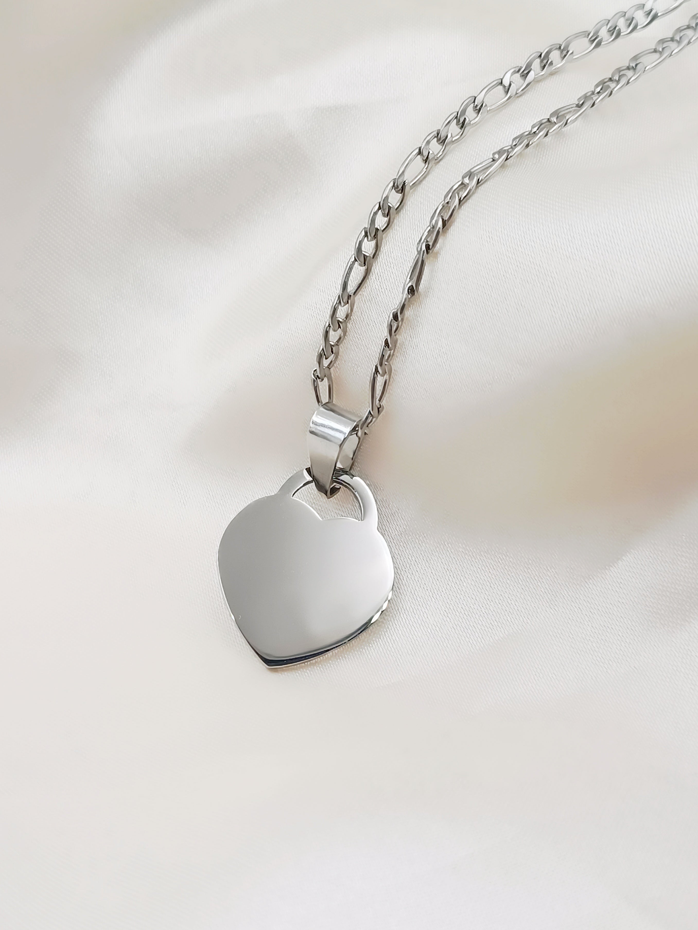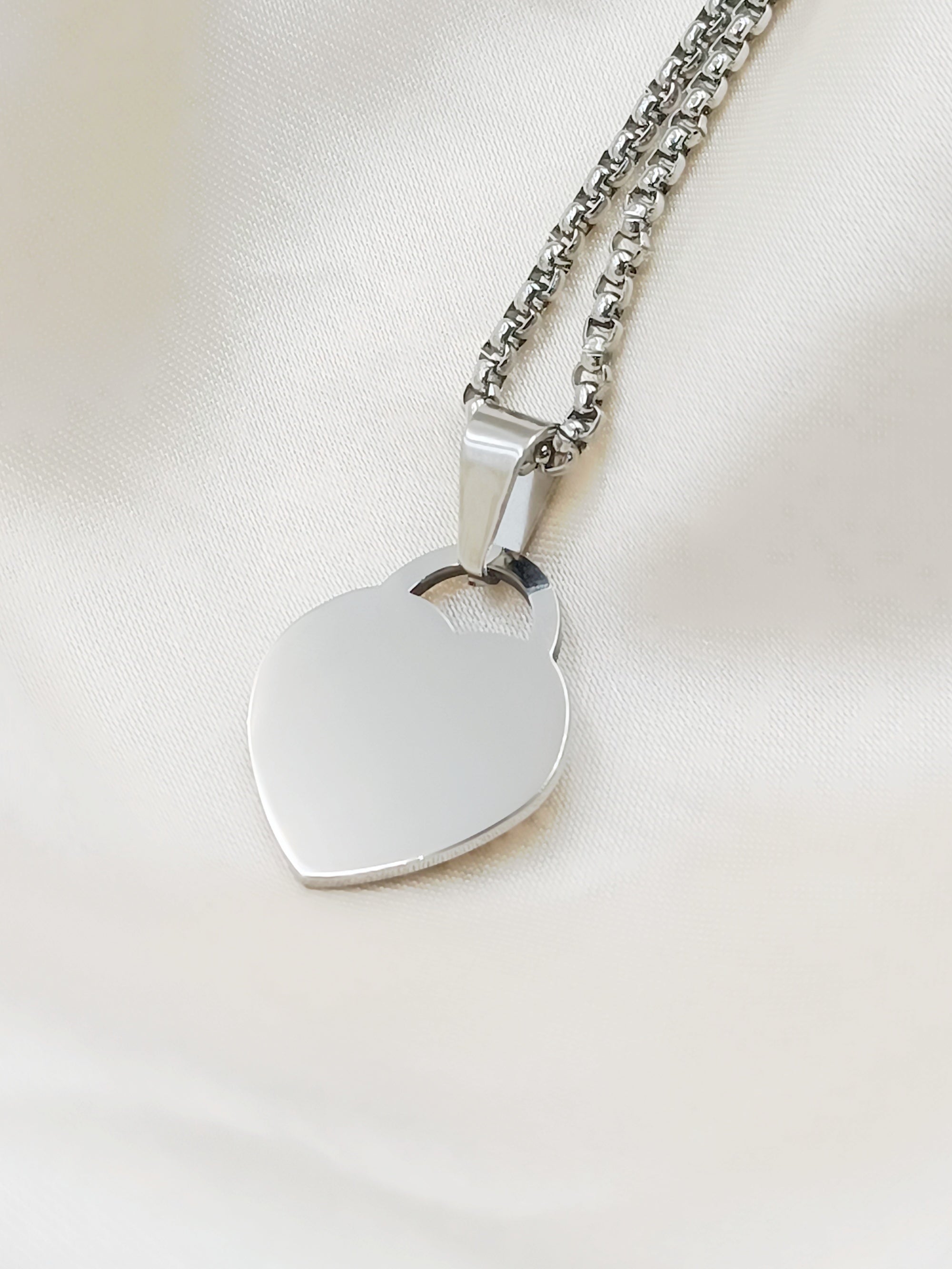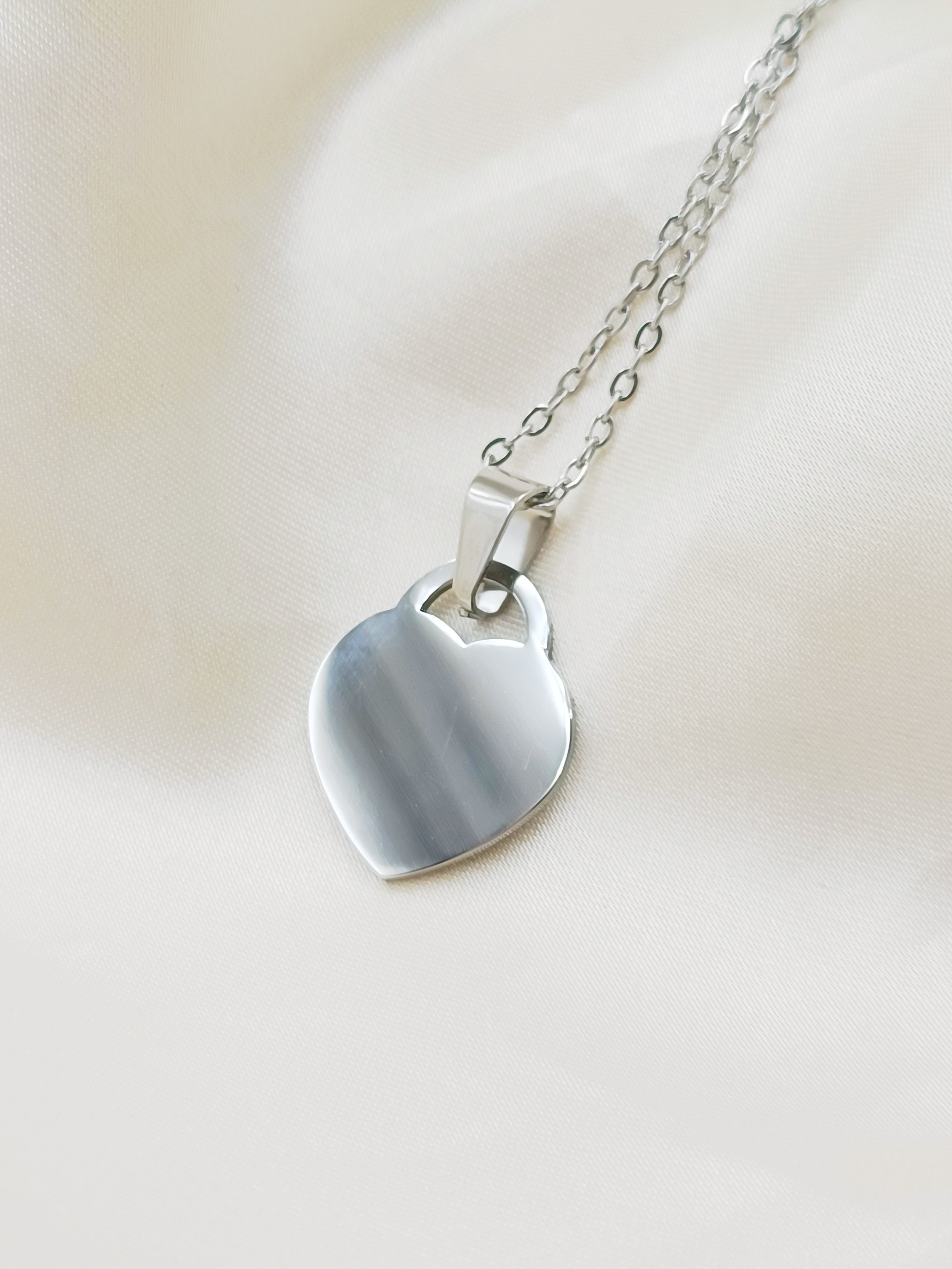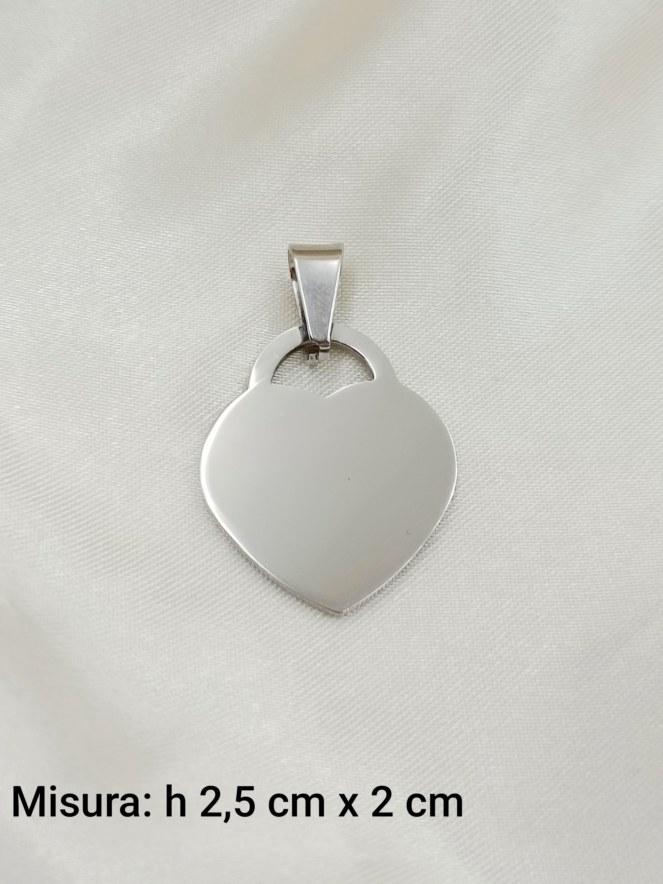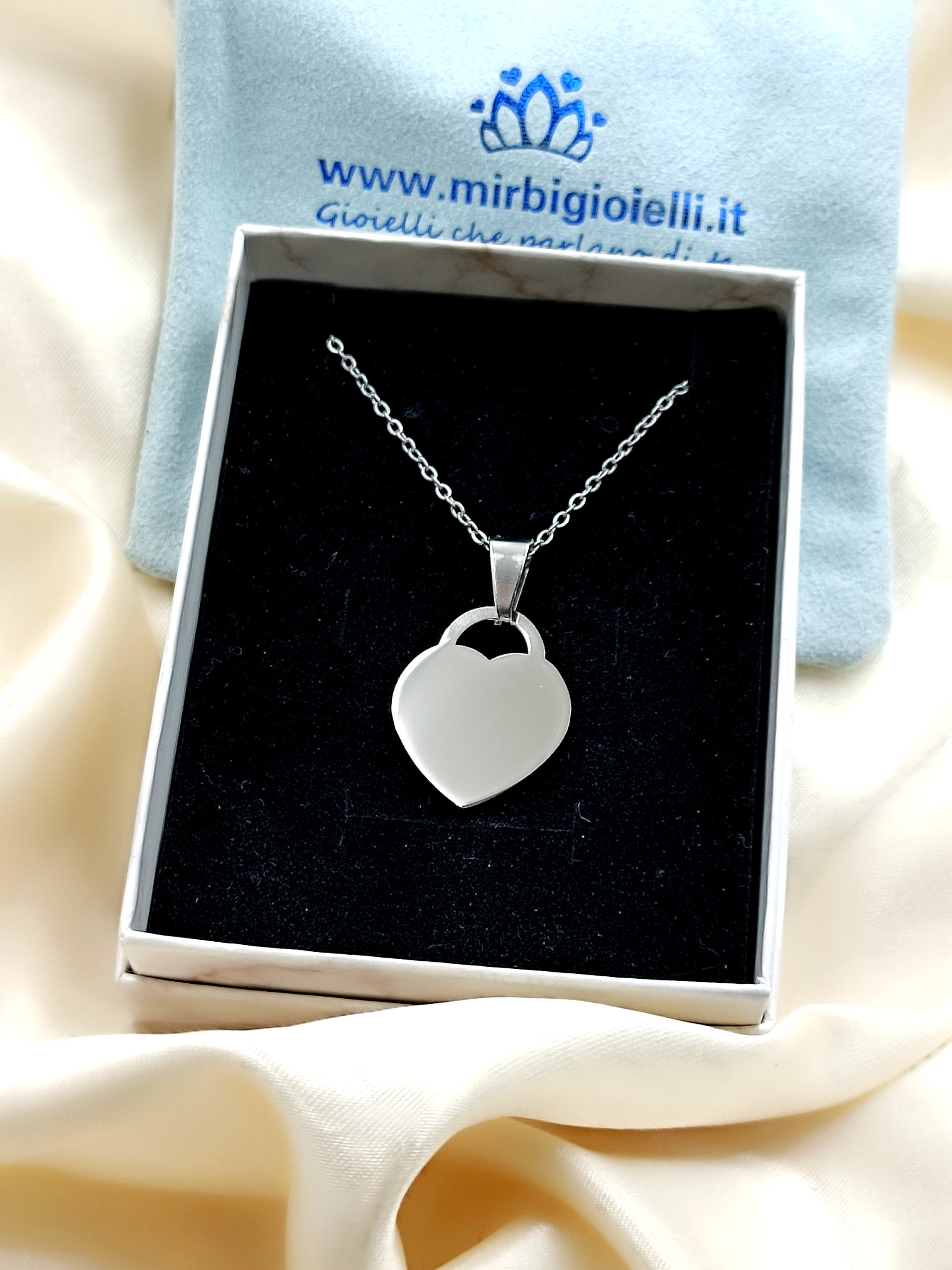 Collana con cuore lucchetto medio in acciaio anallergico e inossidabile, personalizzabile con incisione o fotoincisione!