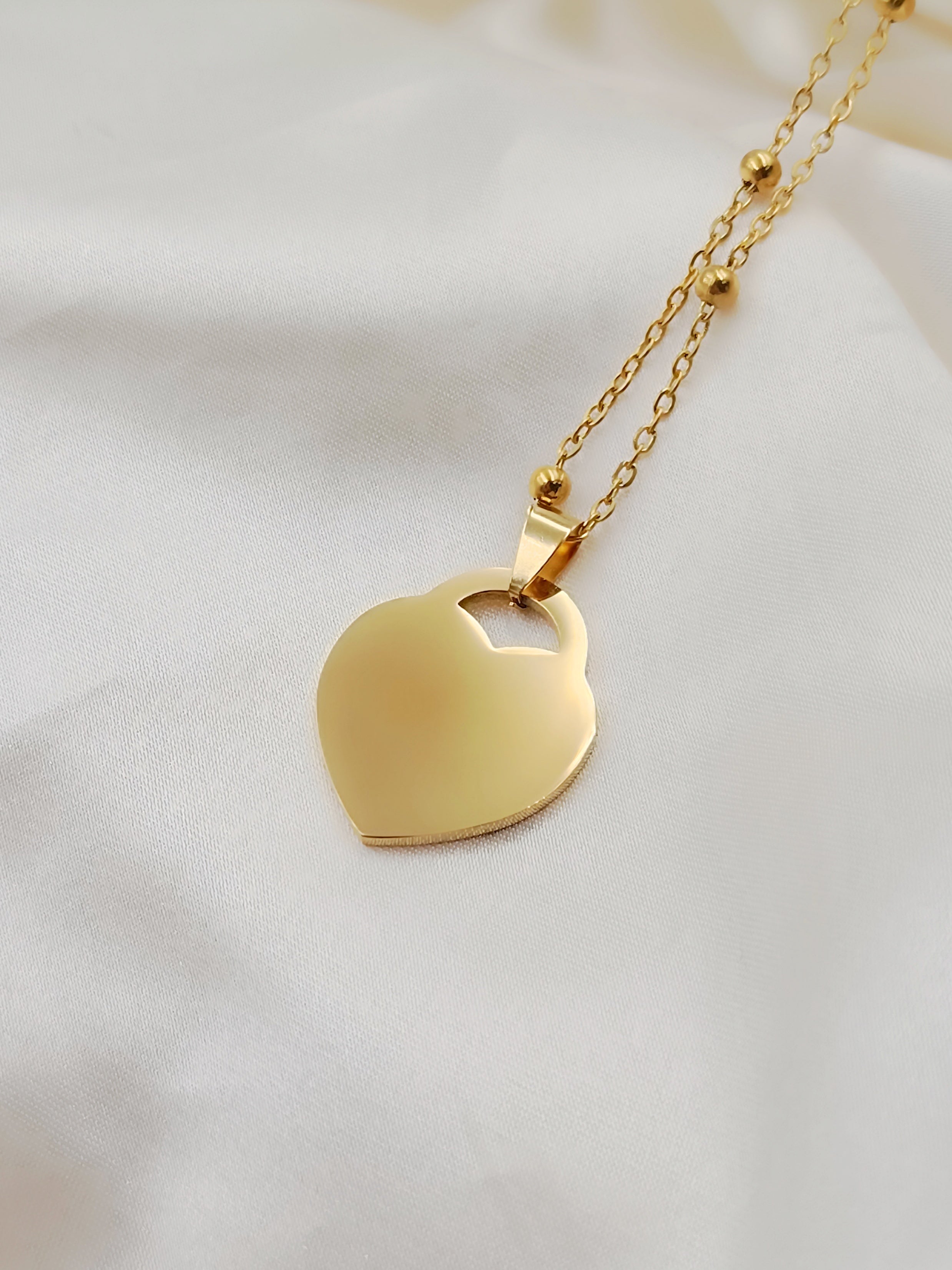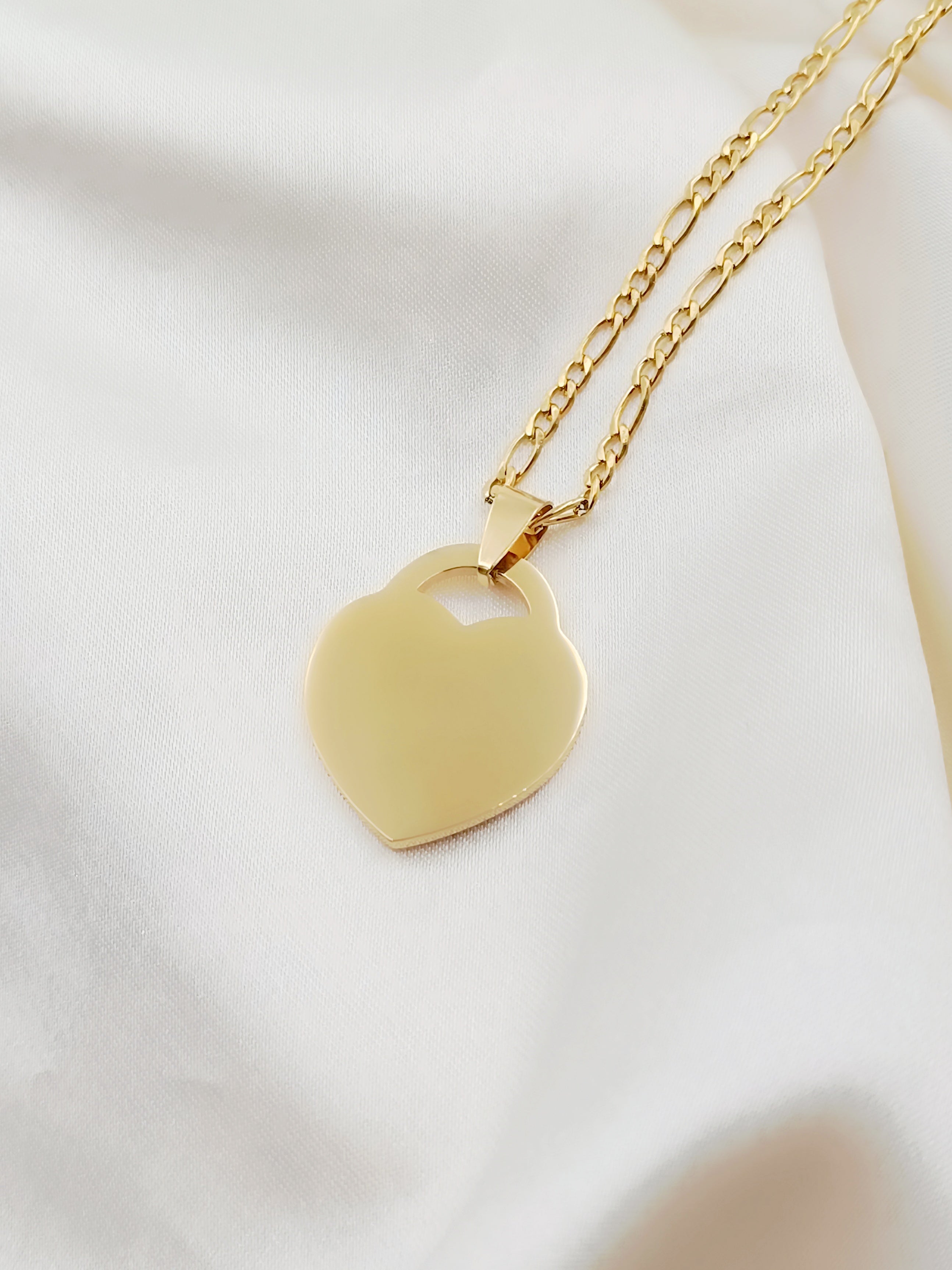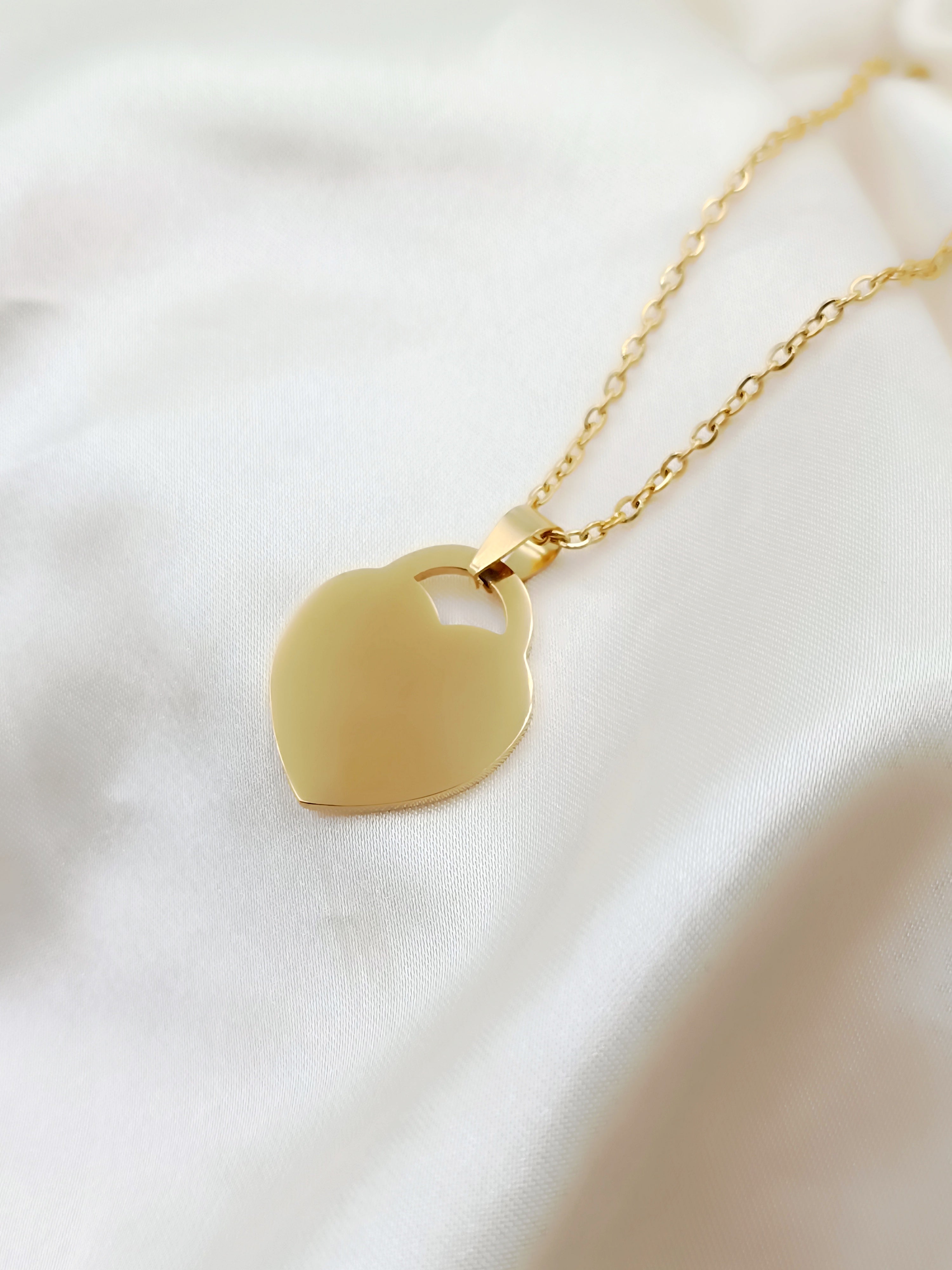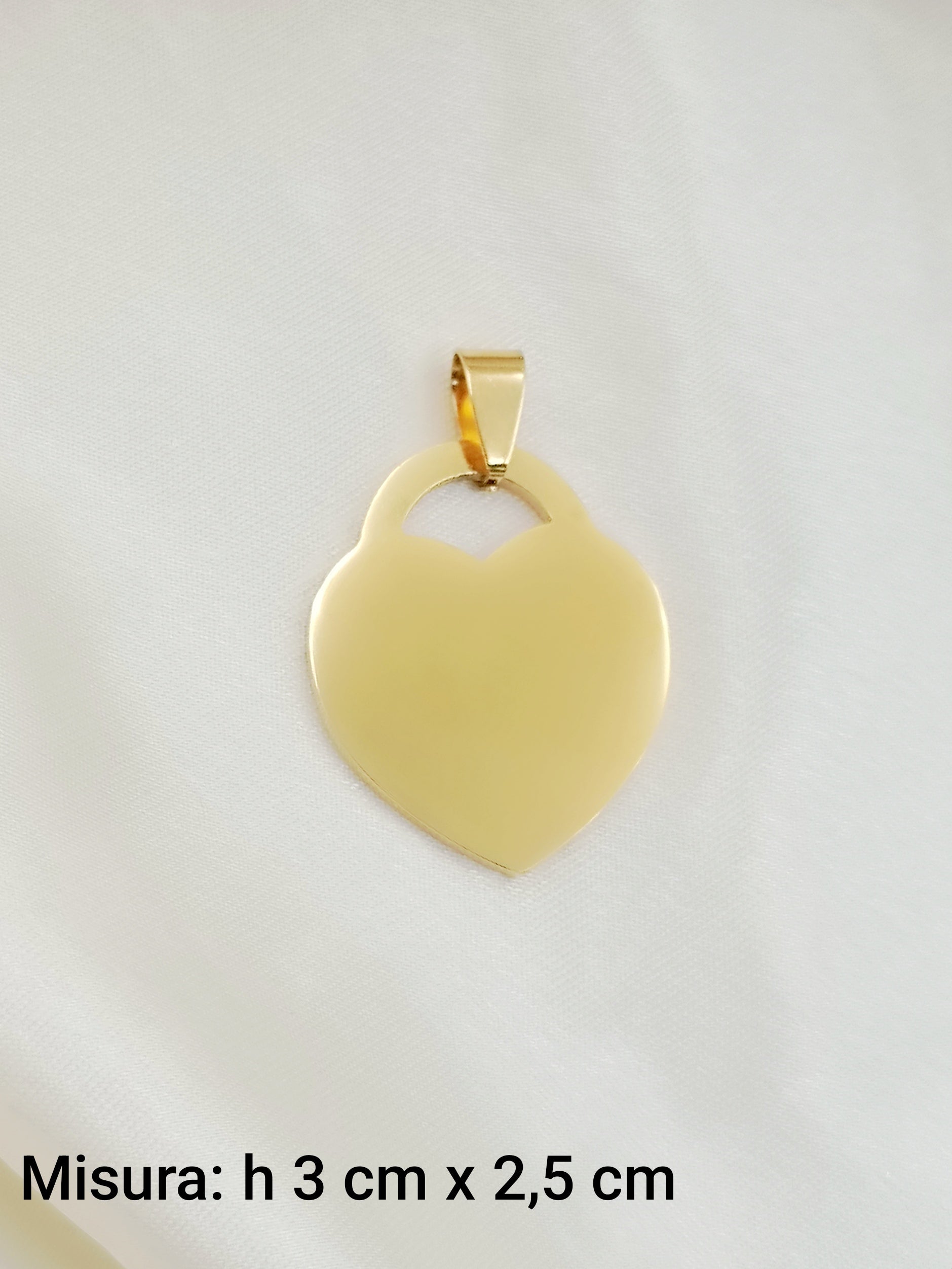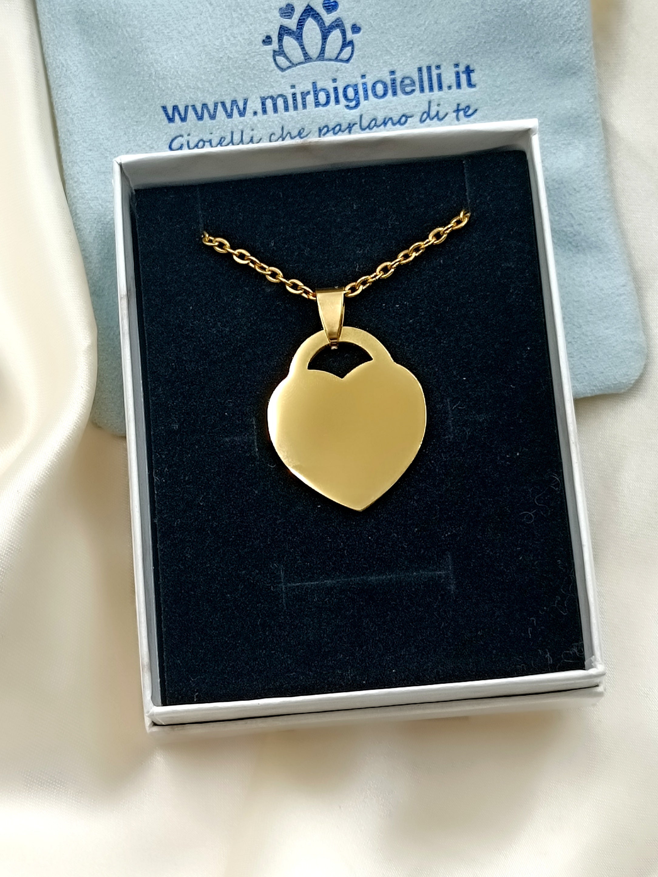 Collana con cuore lucchetto medio in acciaio gold anallergico e inossidabile, personalizzabile con incisione o fotoincisione!
