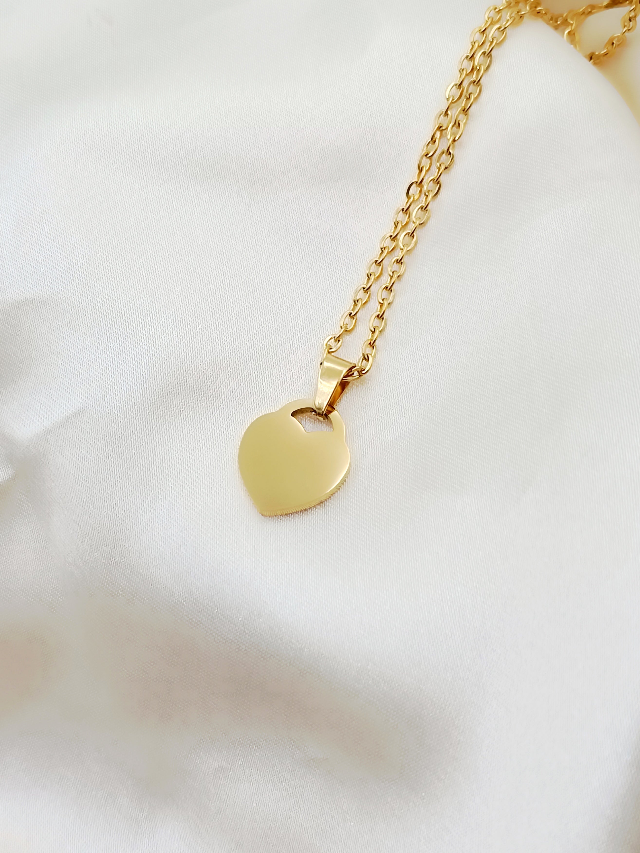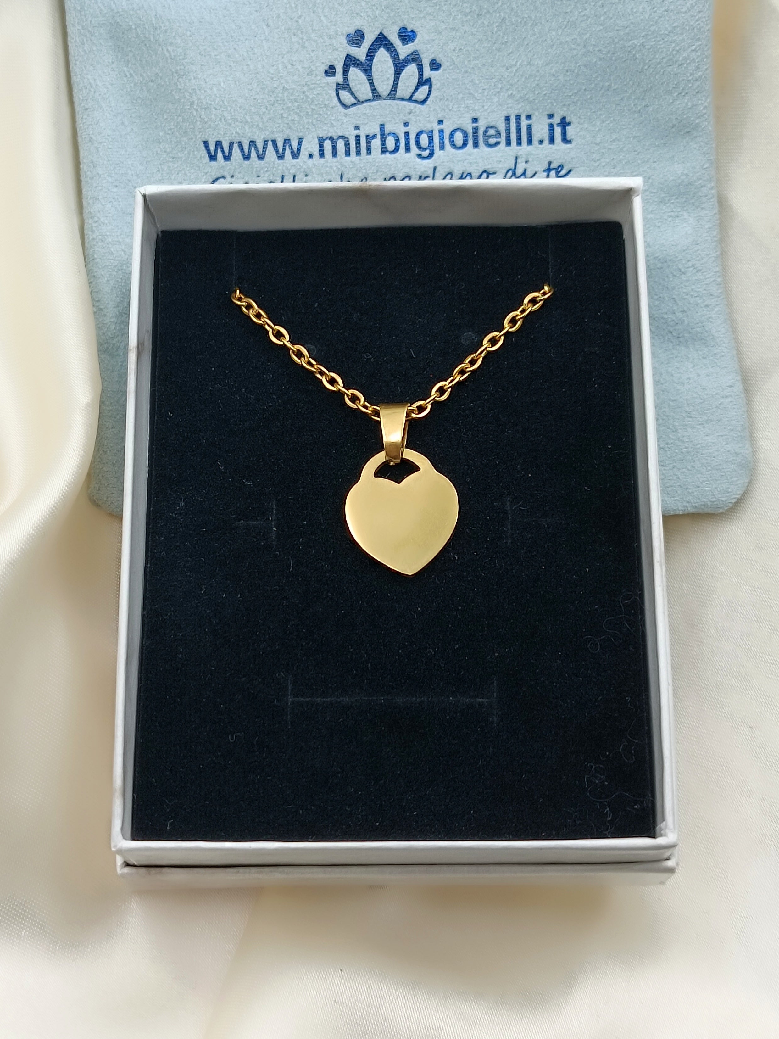 Collana con cuore lucchetto piccolo in acciaio gold anallergico e inossidabile , personalizzabile con incisione o fotoincisione!