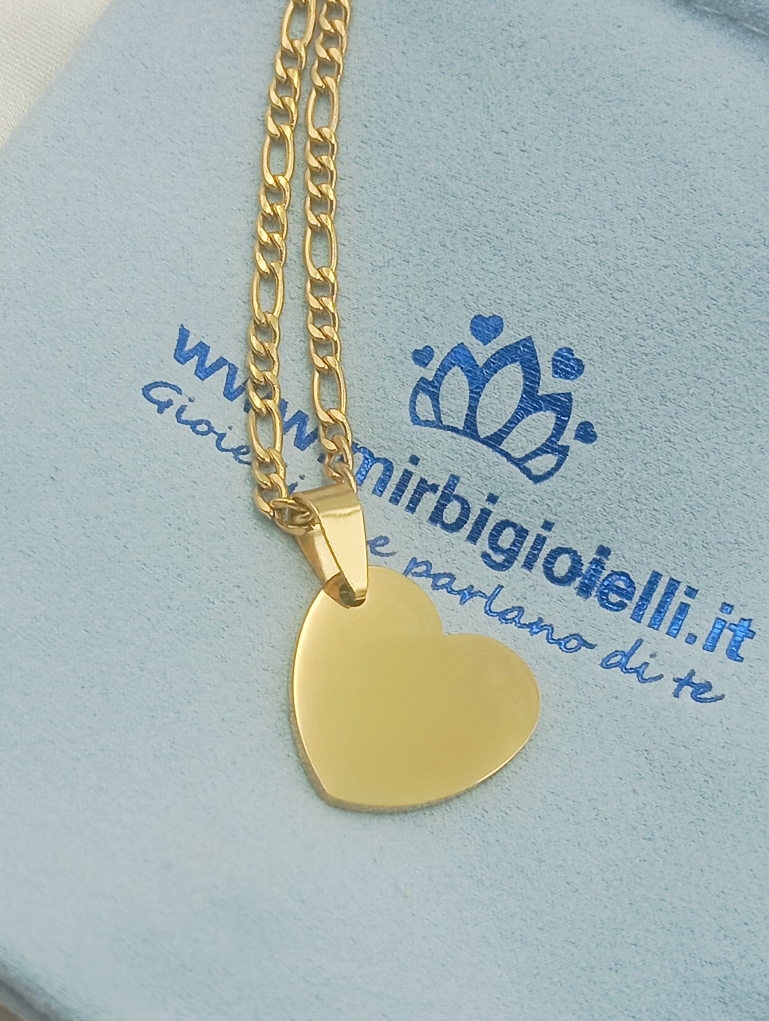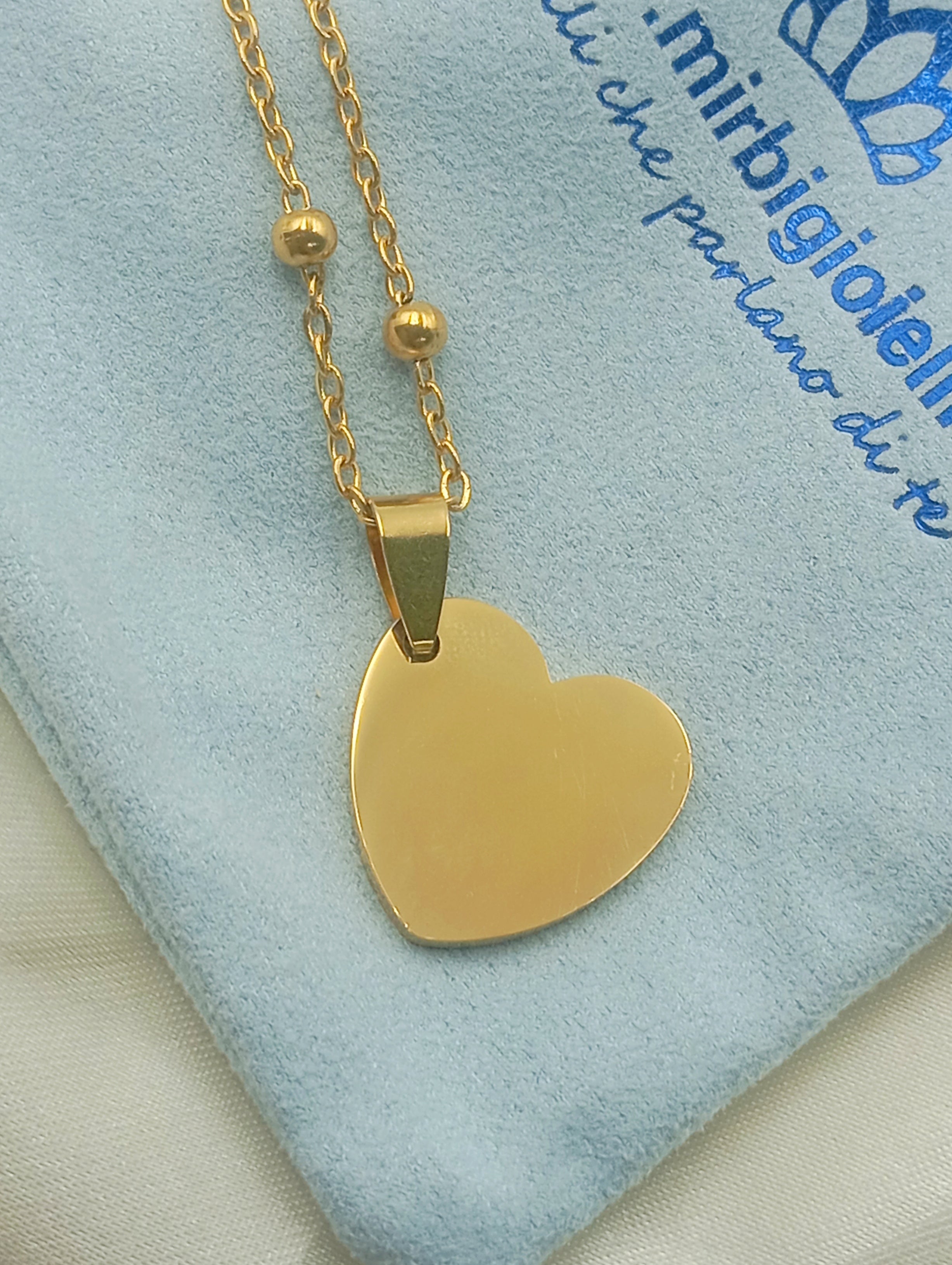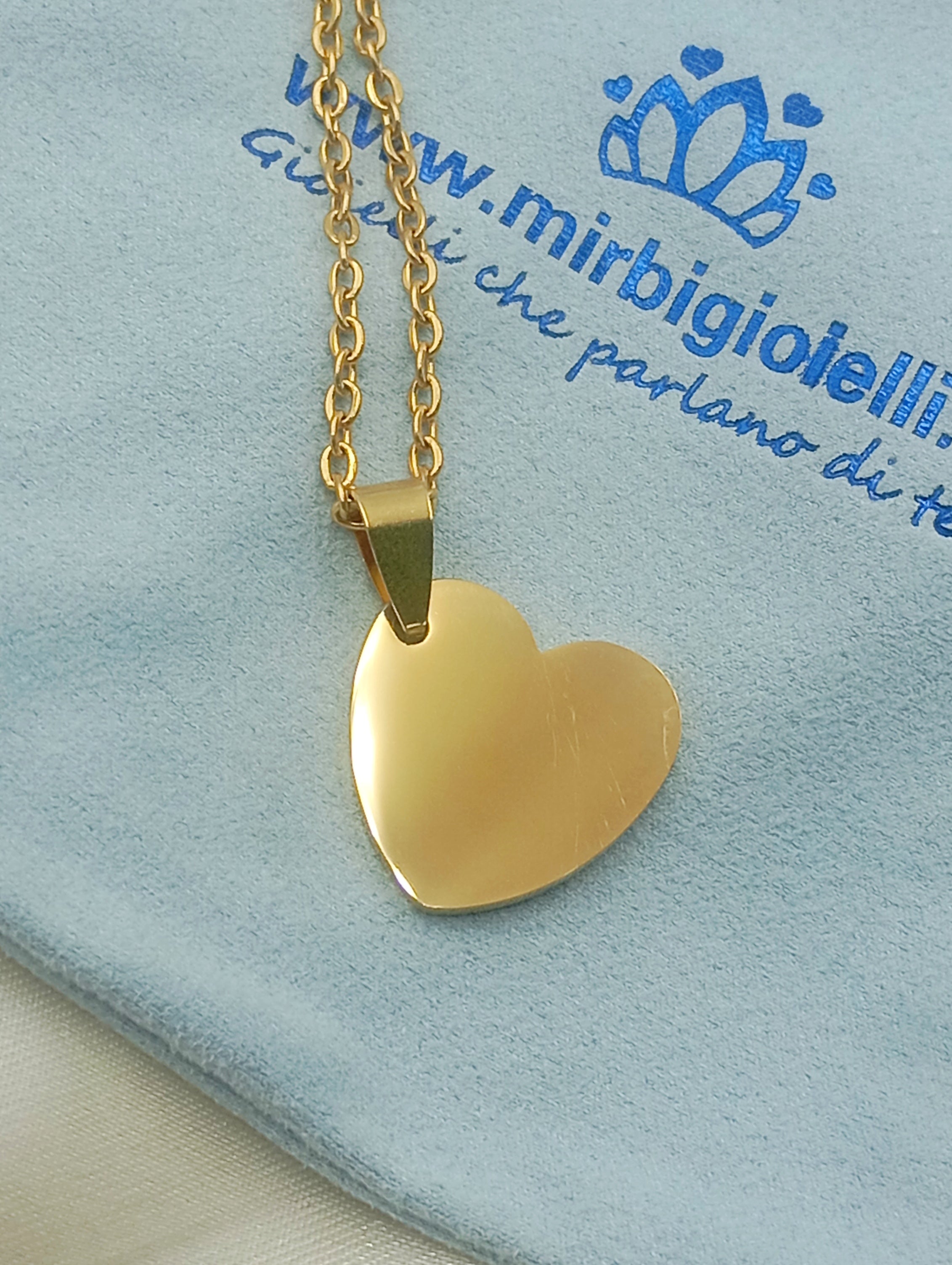 Collana in acciaio Gold anallergico e inossidabile con cuore pendente, personalizzabile con incisione.