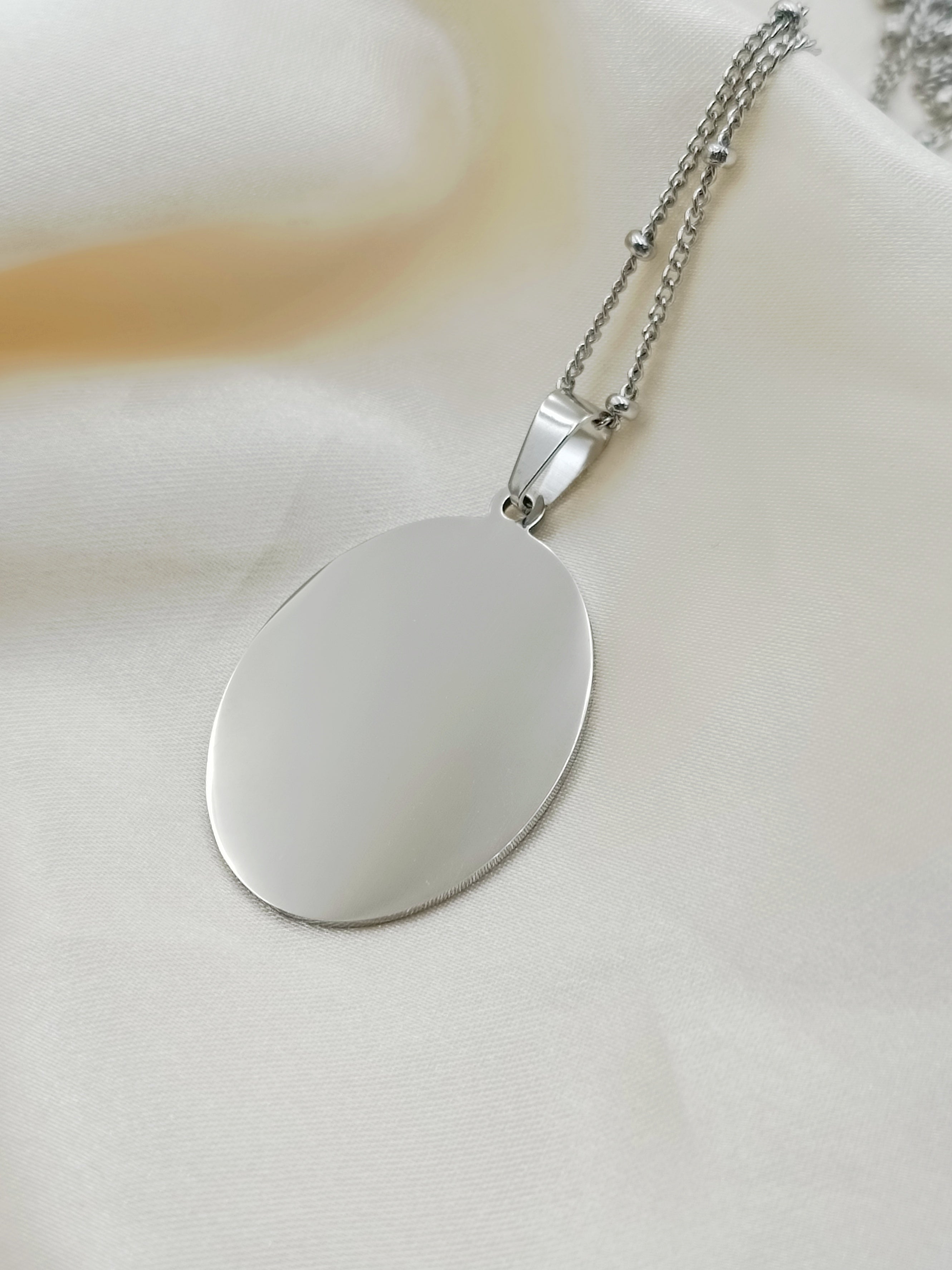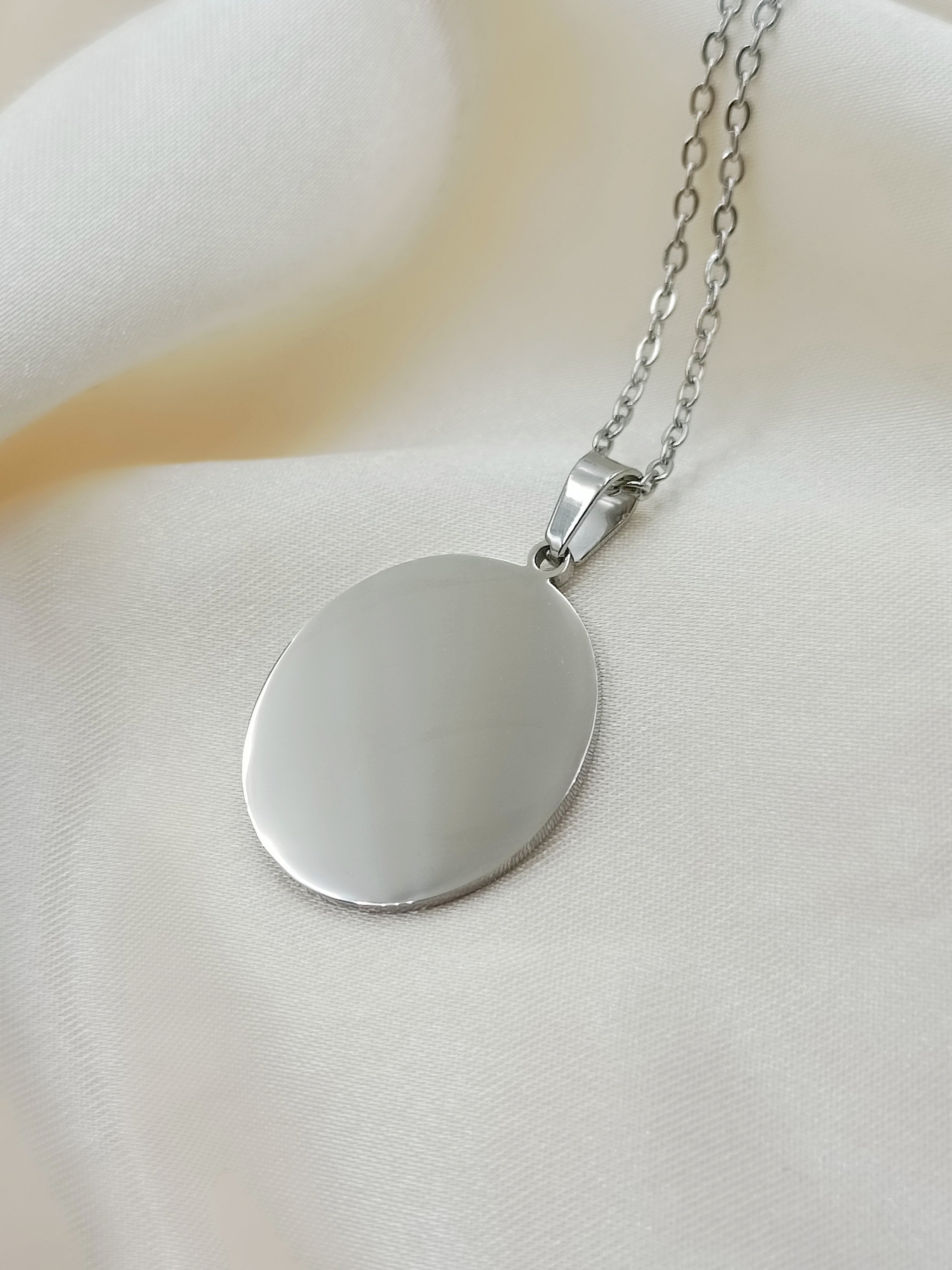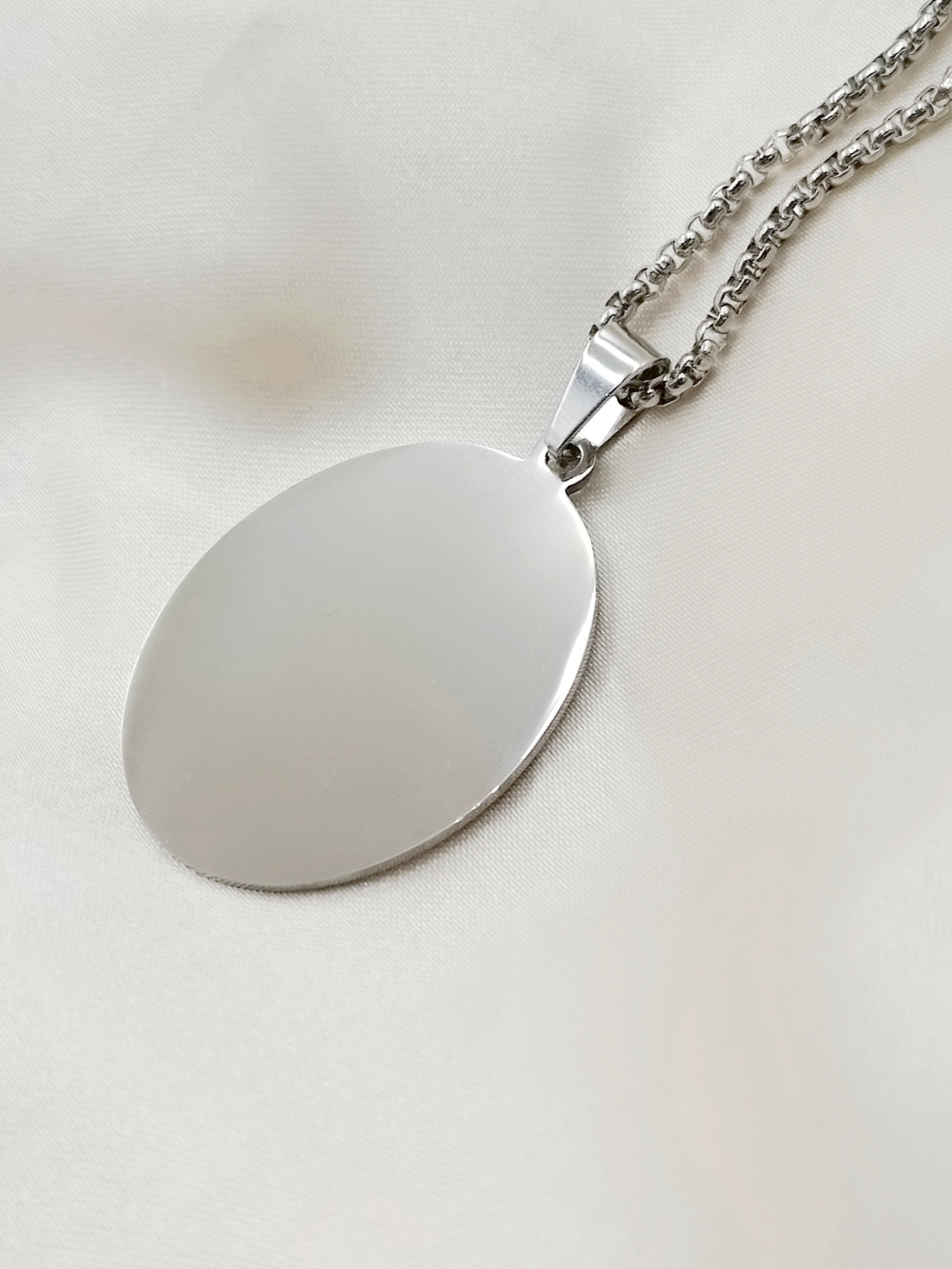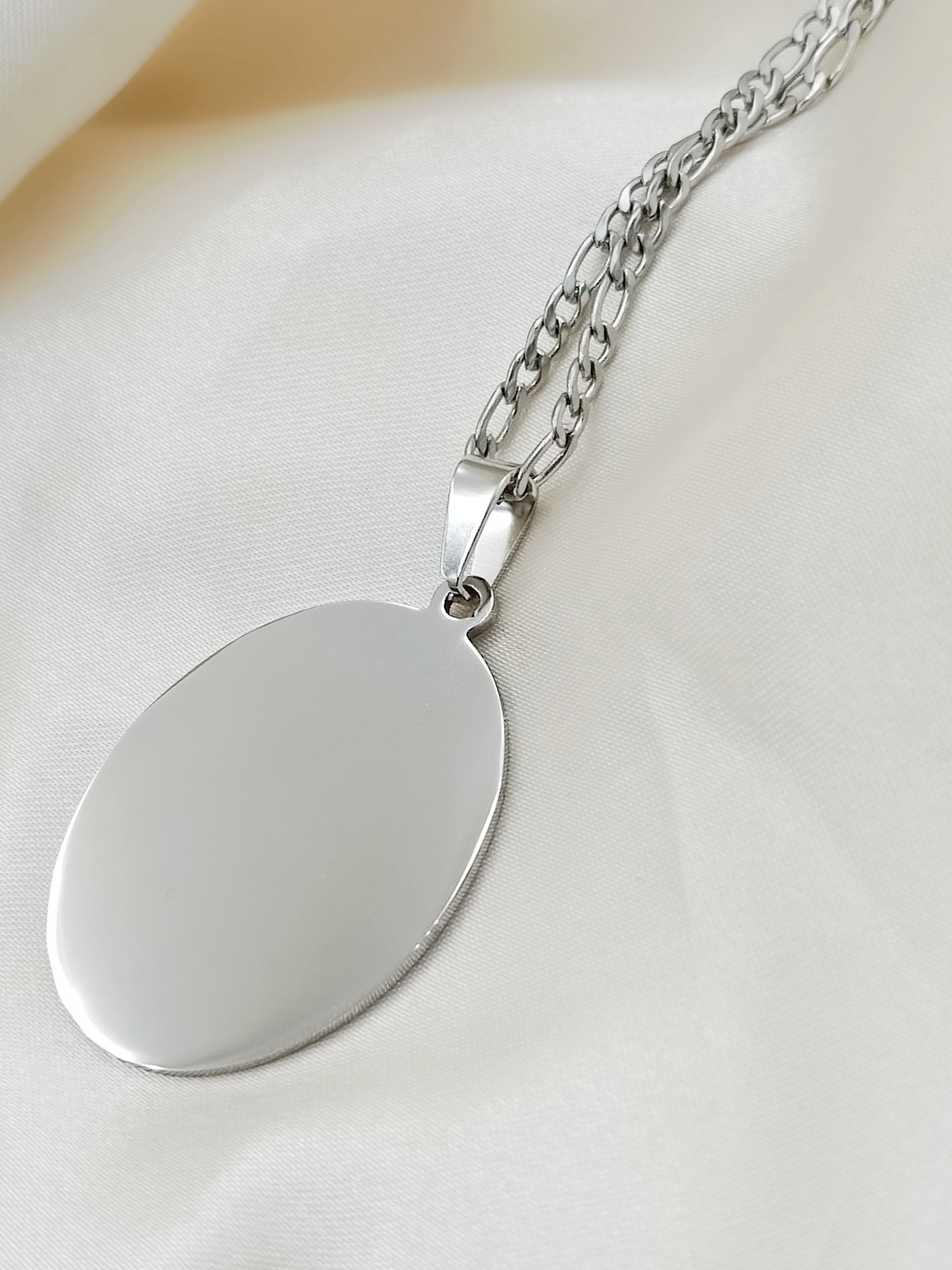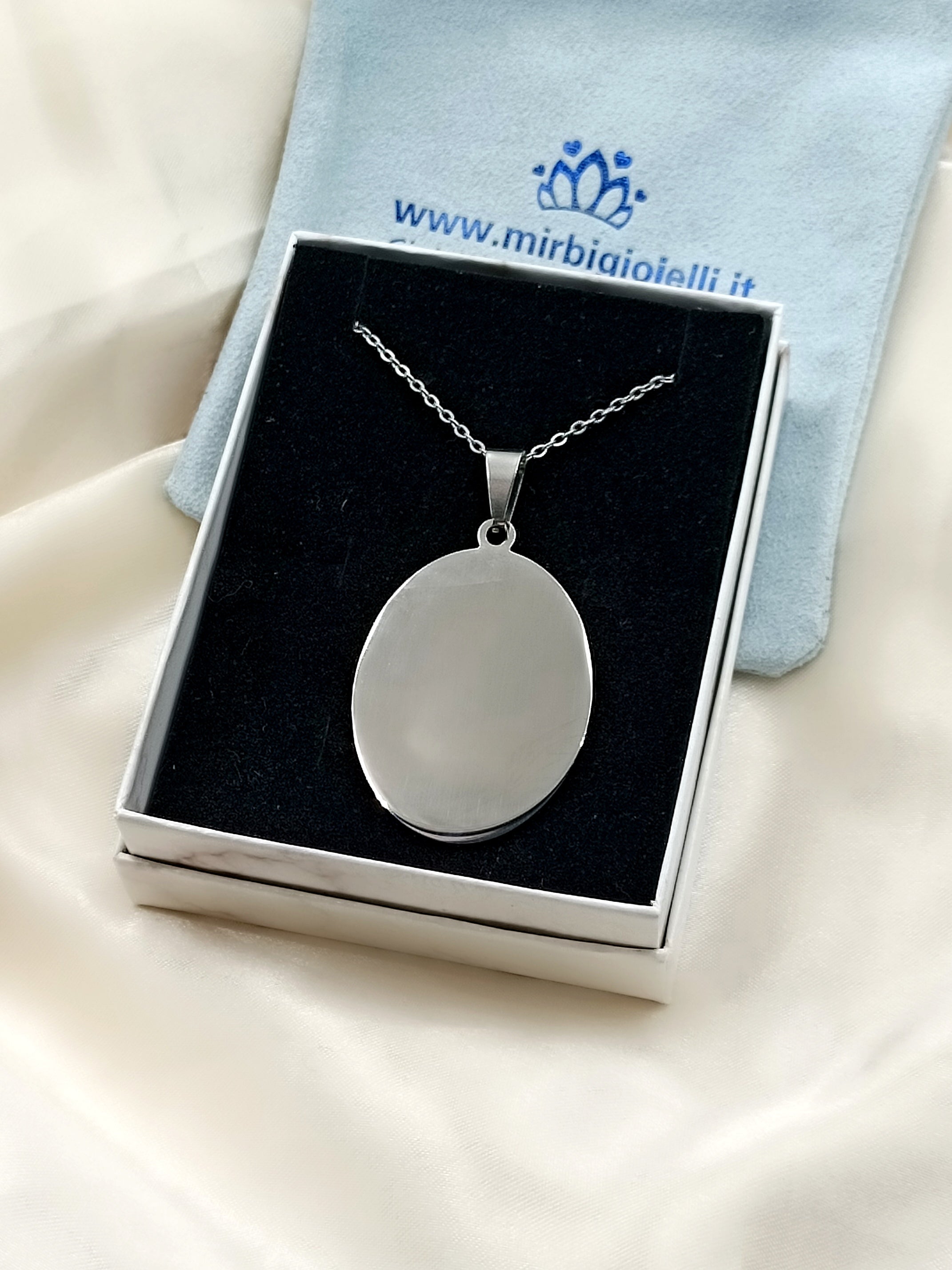 Collana con tondo ovale in acciaio anallergico e inossidabile, personalizzabile con incisione o fotoincisione!