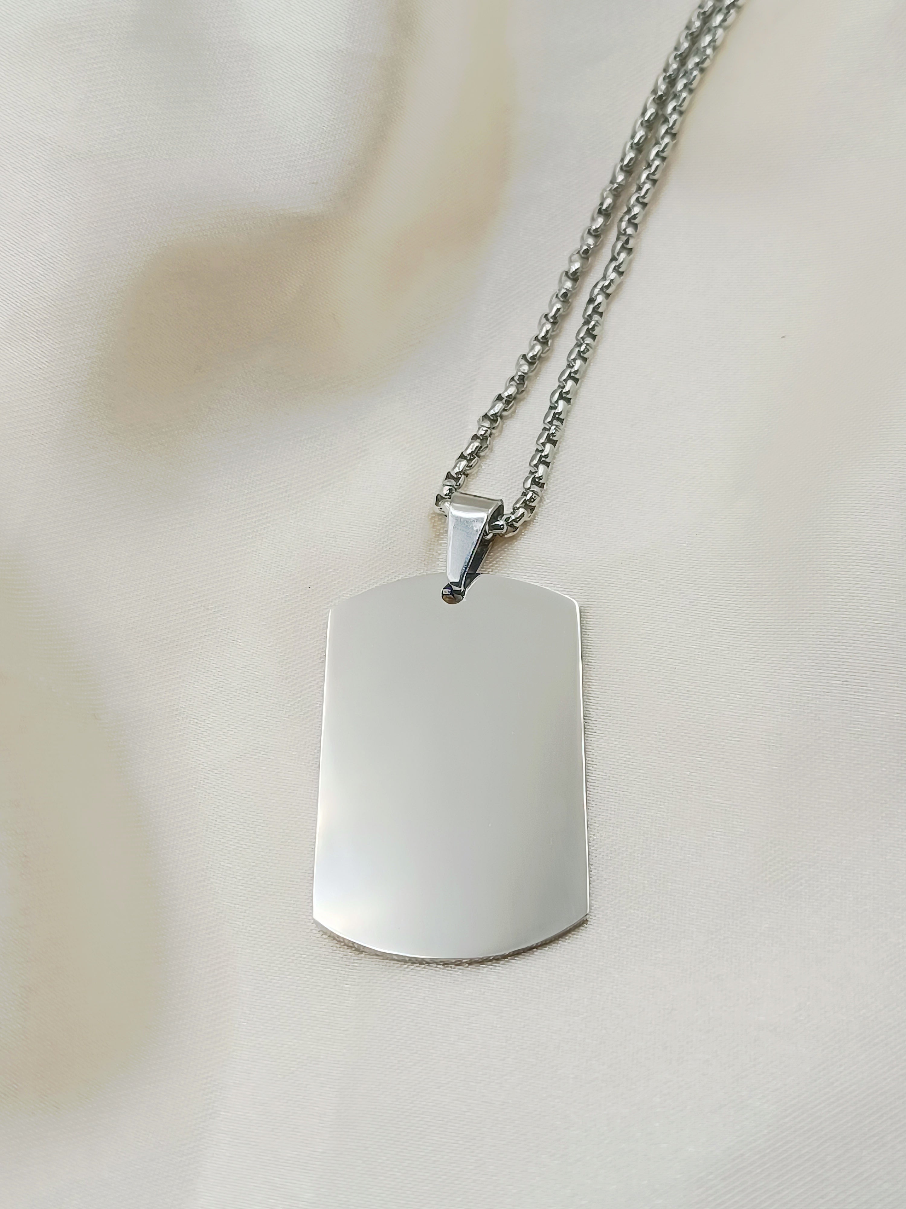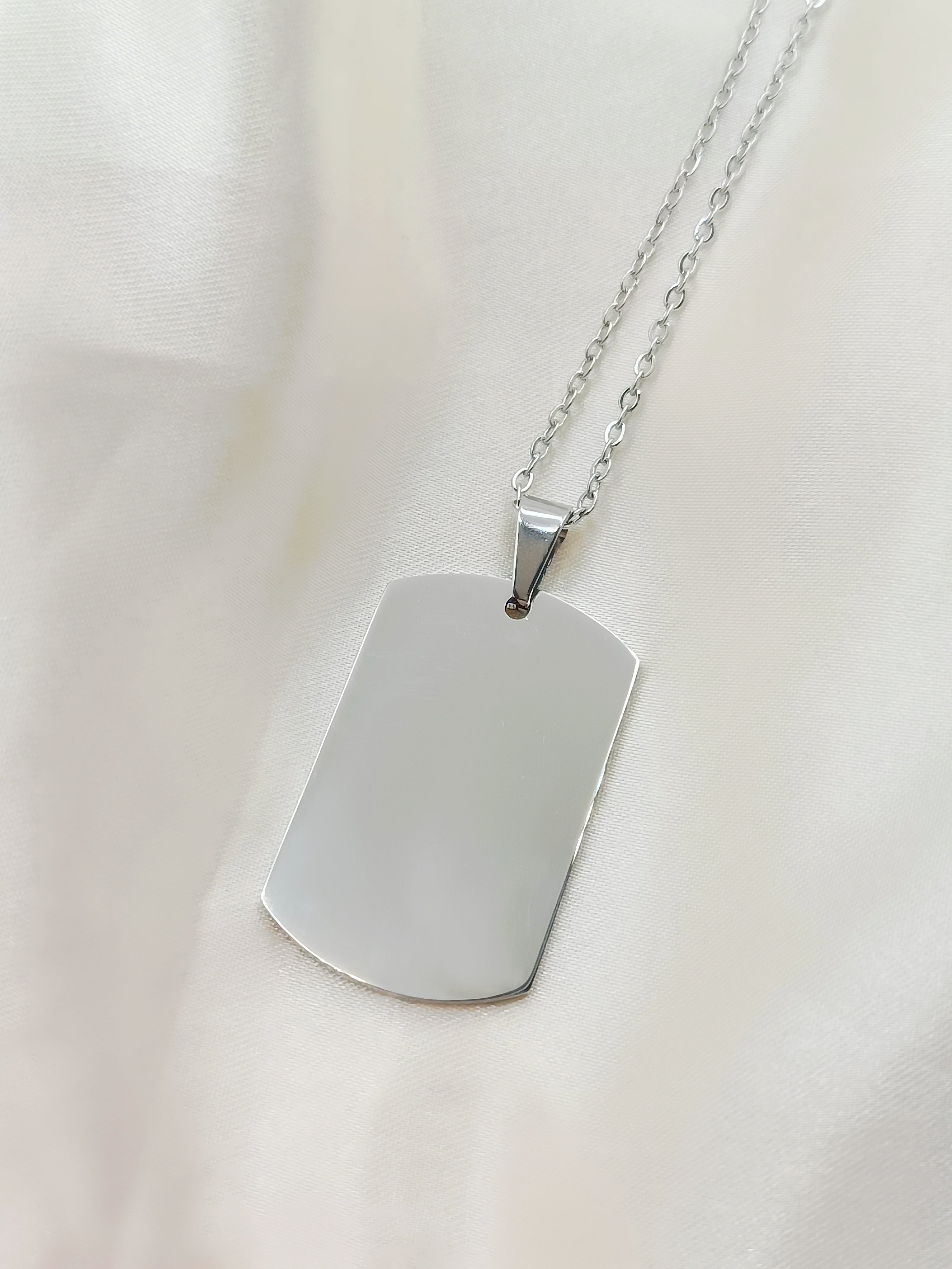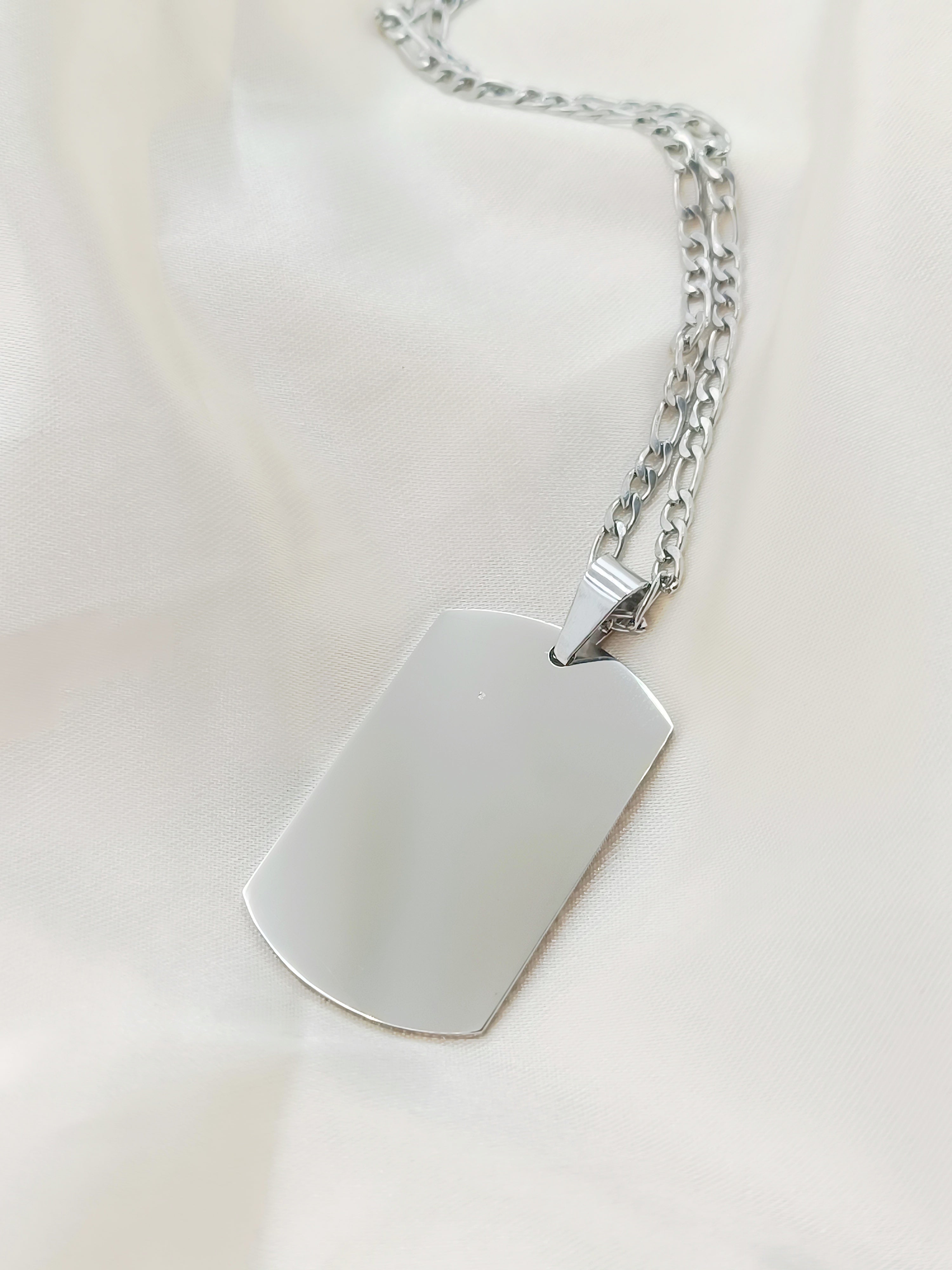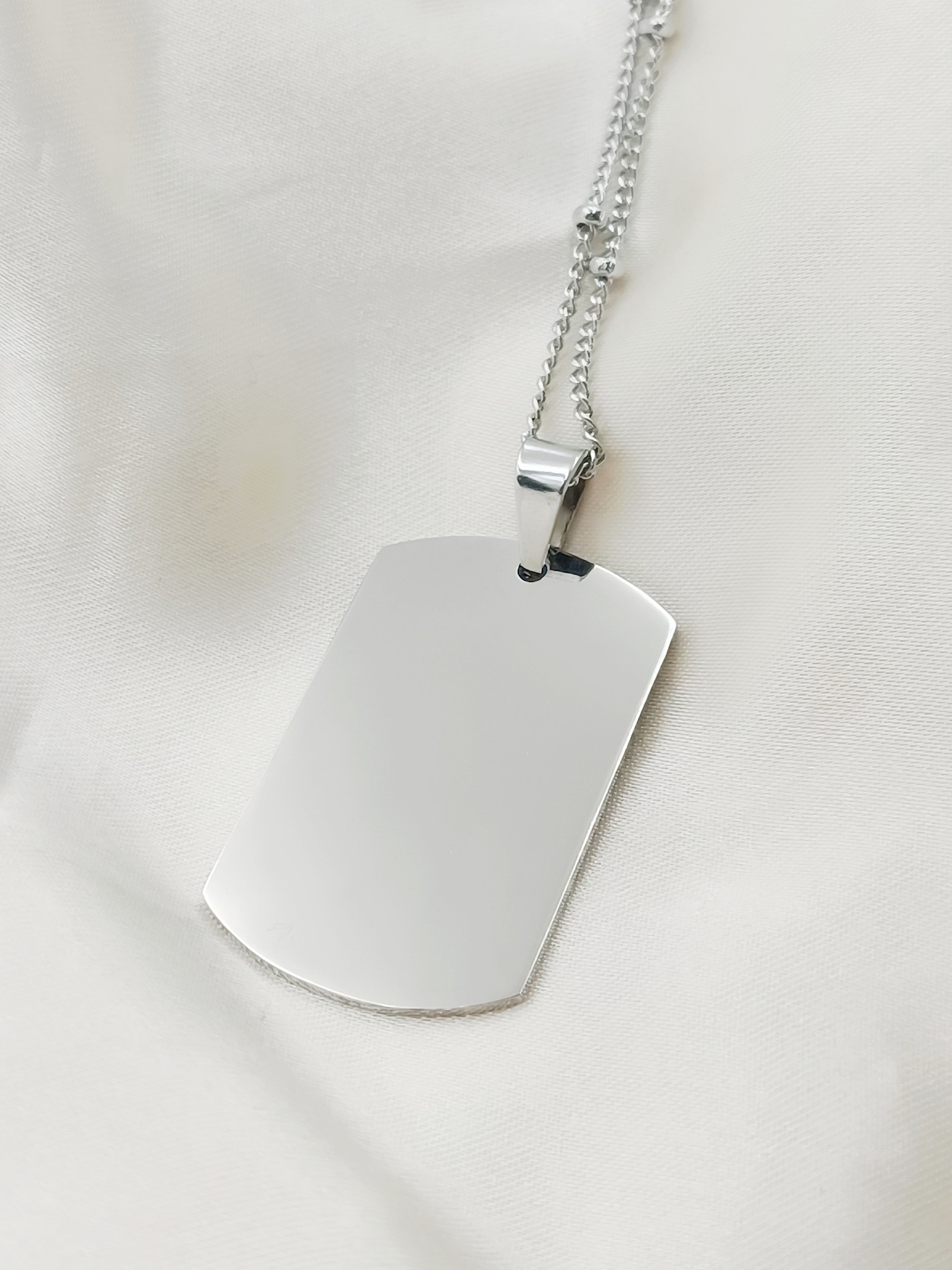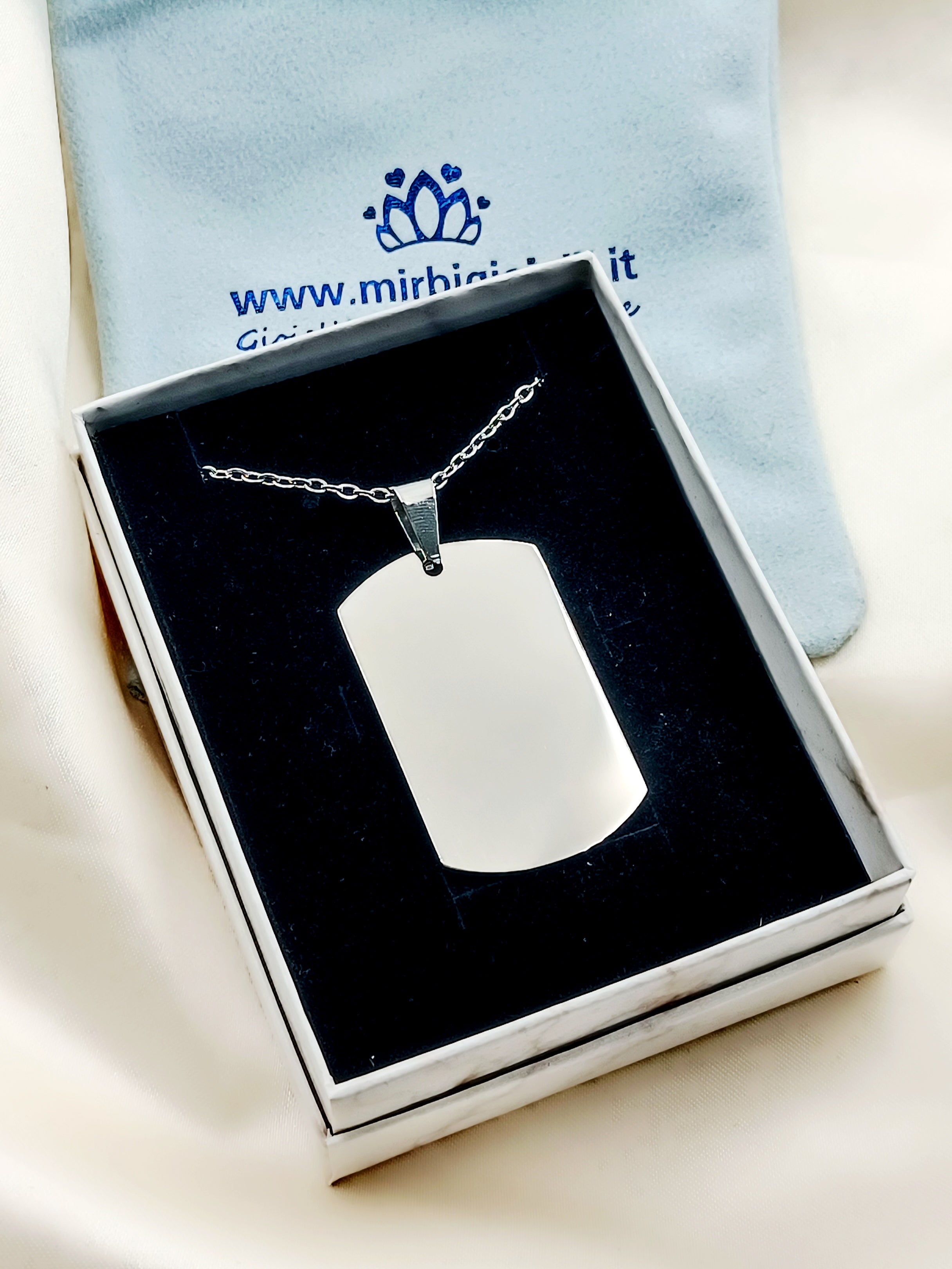 Collana con piastrina militare grande in acciaio anallergico e inossidabile.