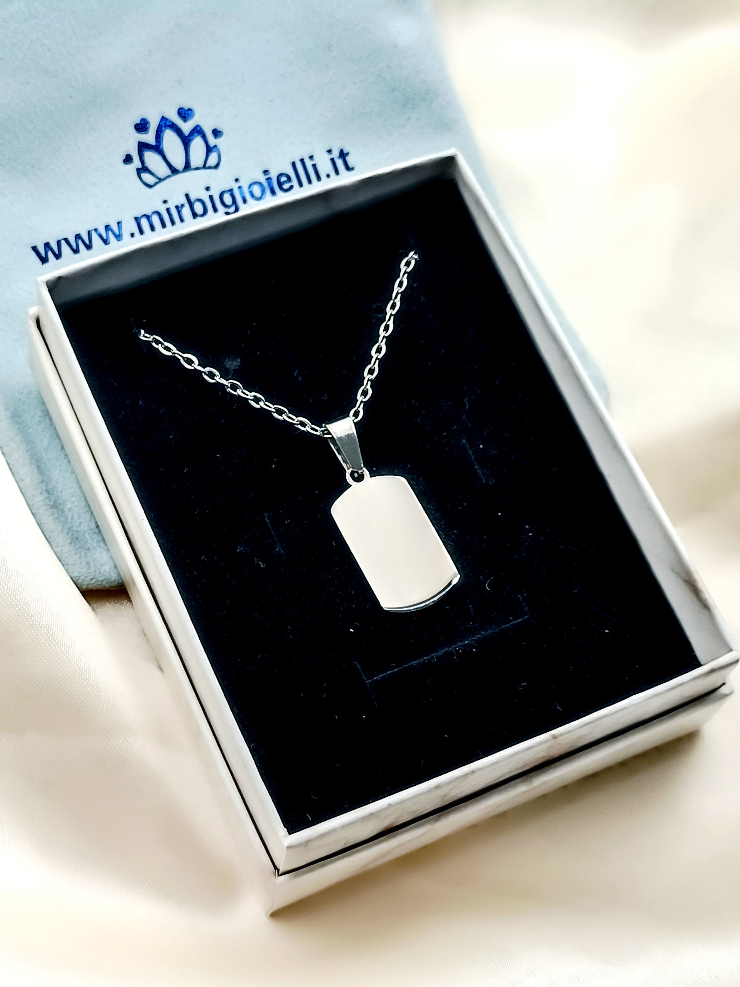 Collana con piastrina militare piccola in acciaio anallergico e inossidabile.