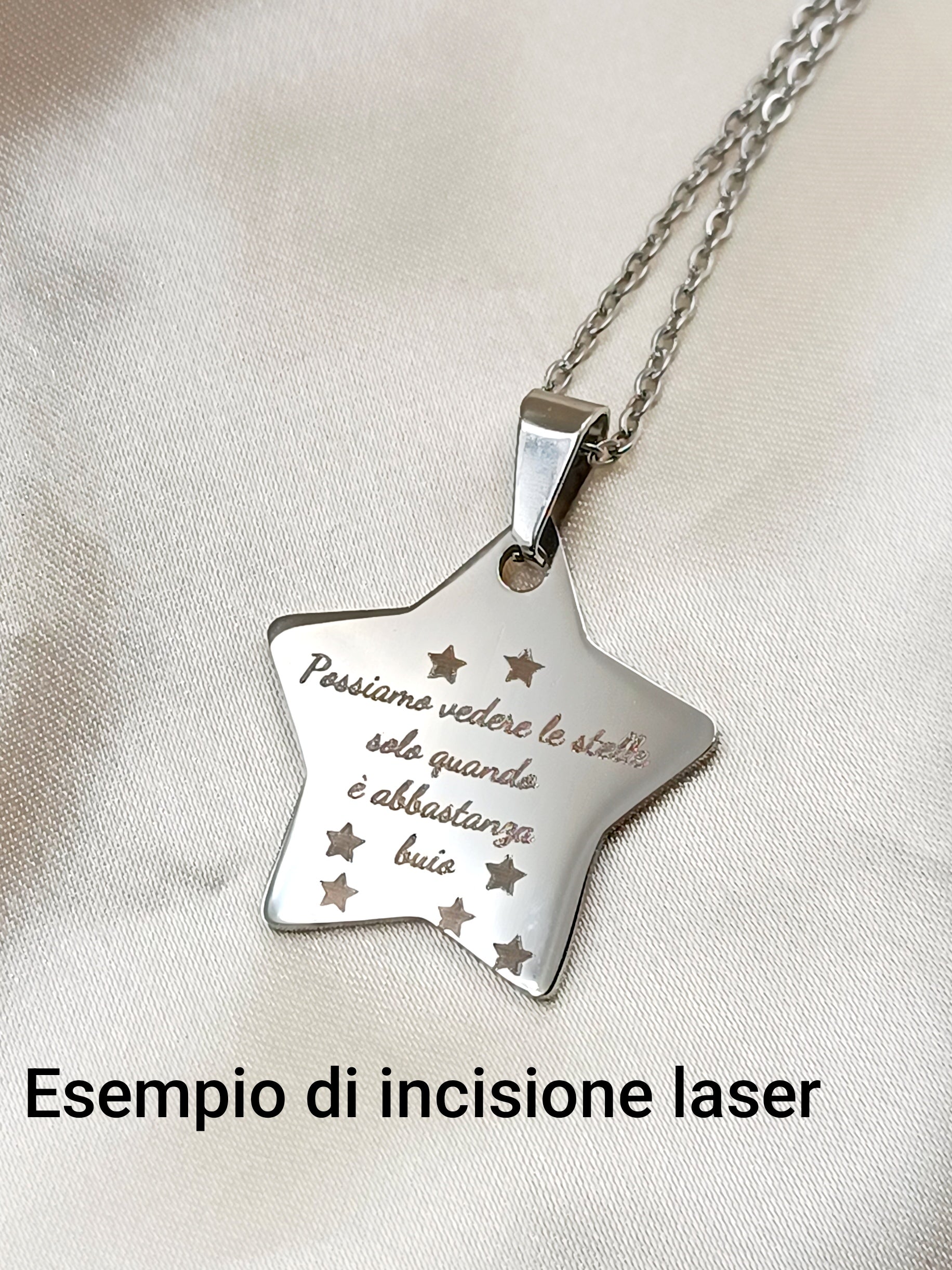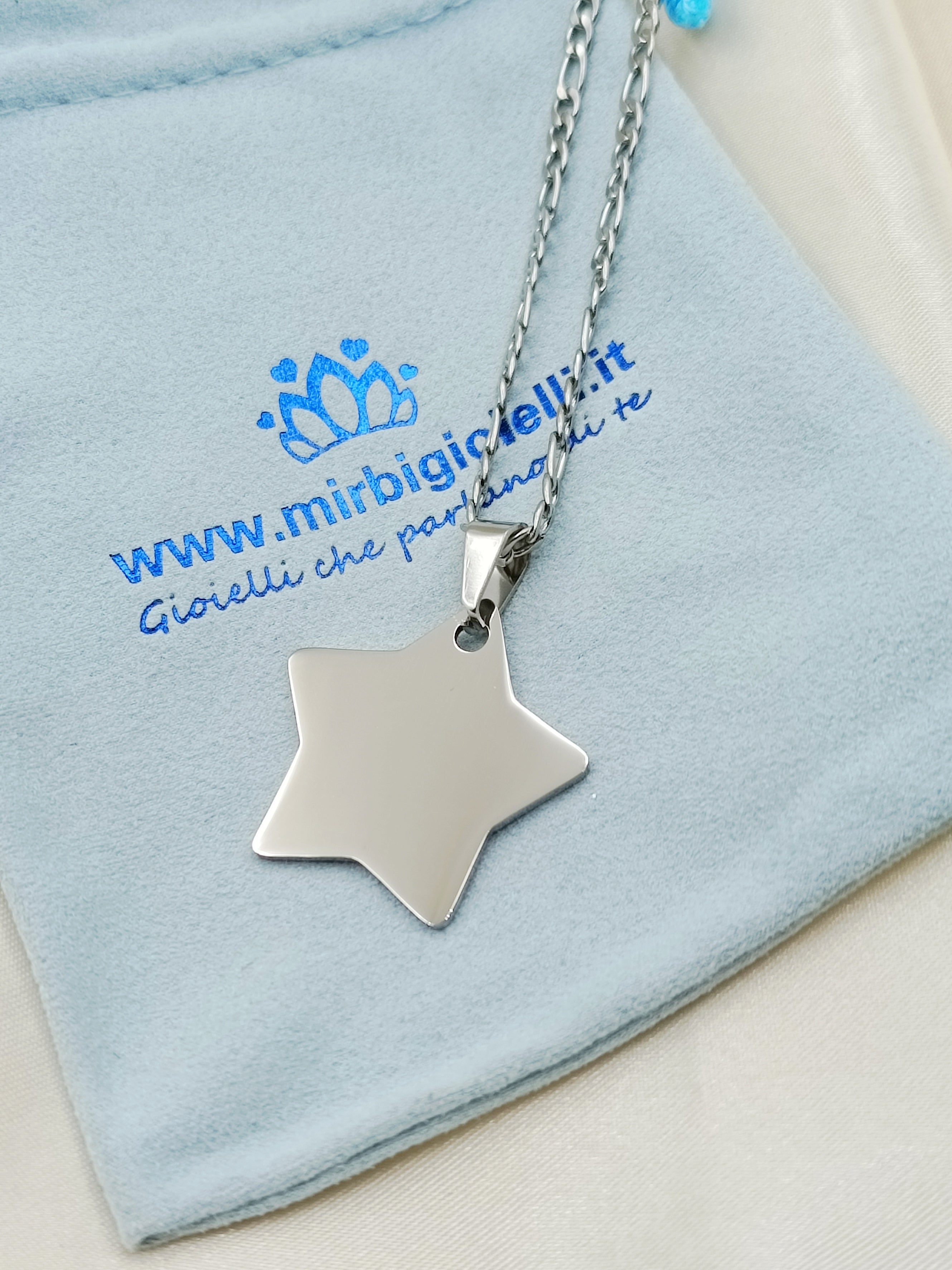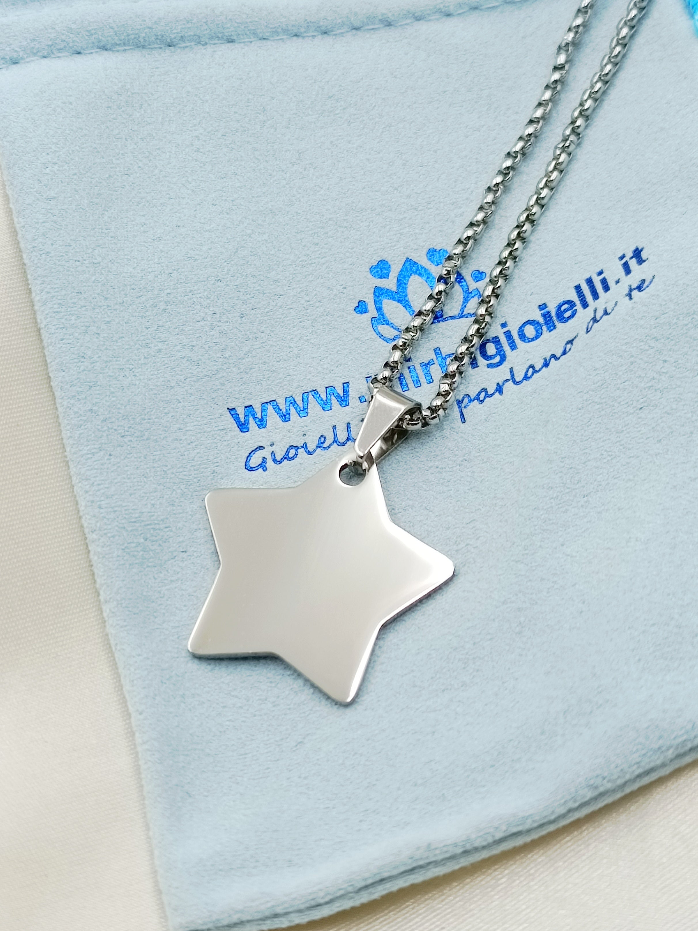 Collana con stella media in acciaio anallergico e inossidabile, personalizzabile con incisione.