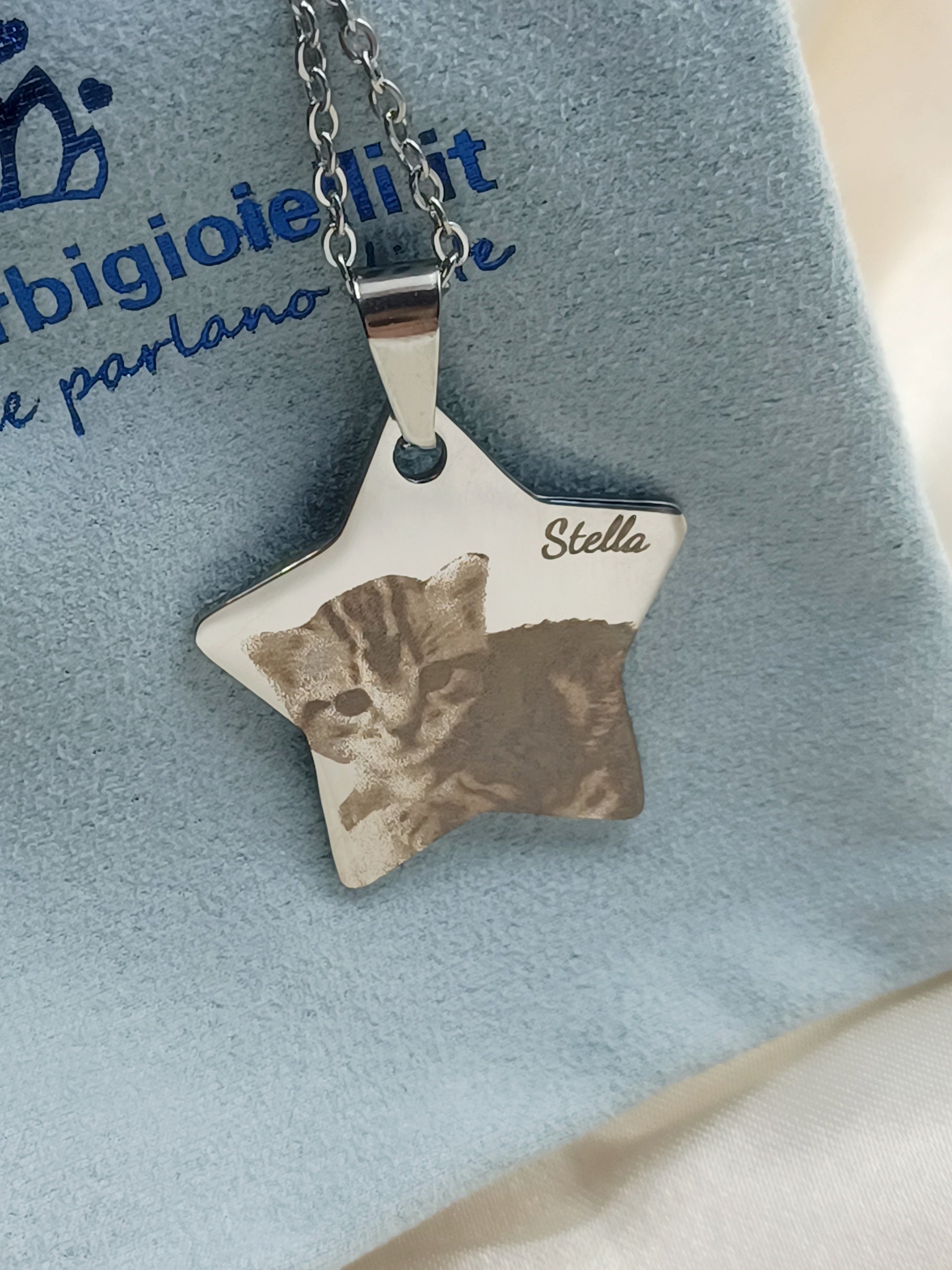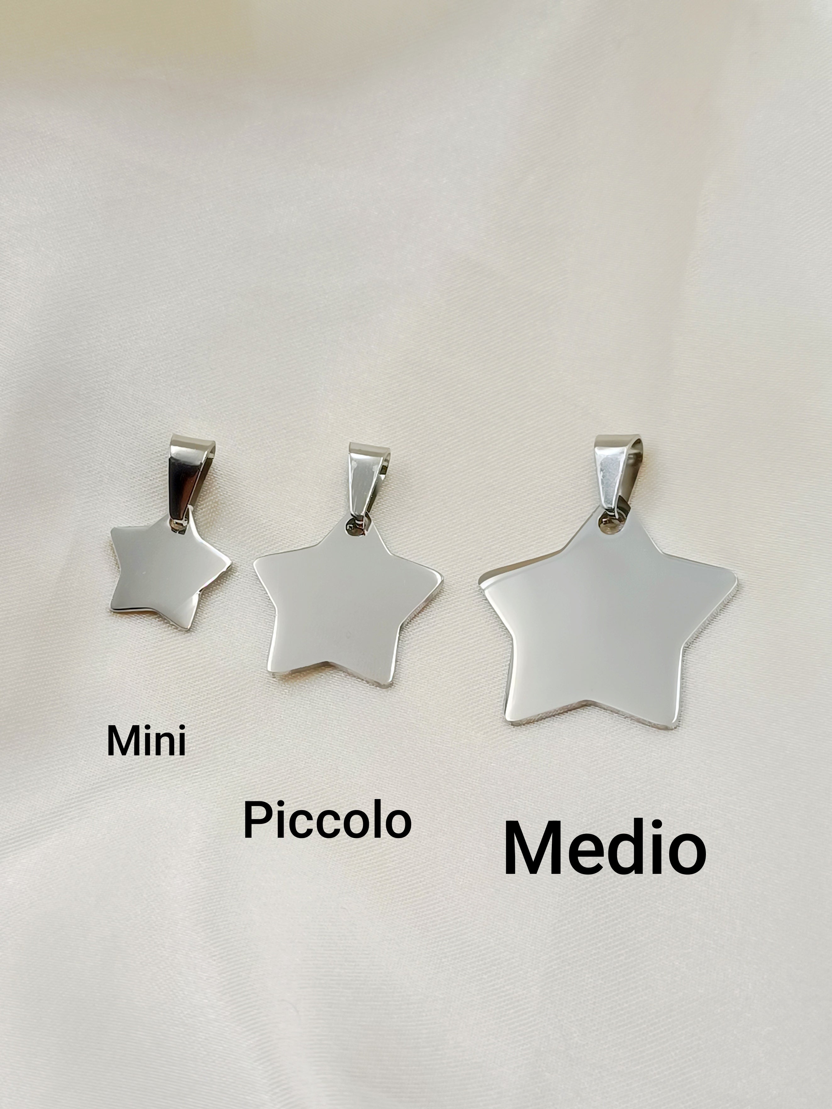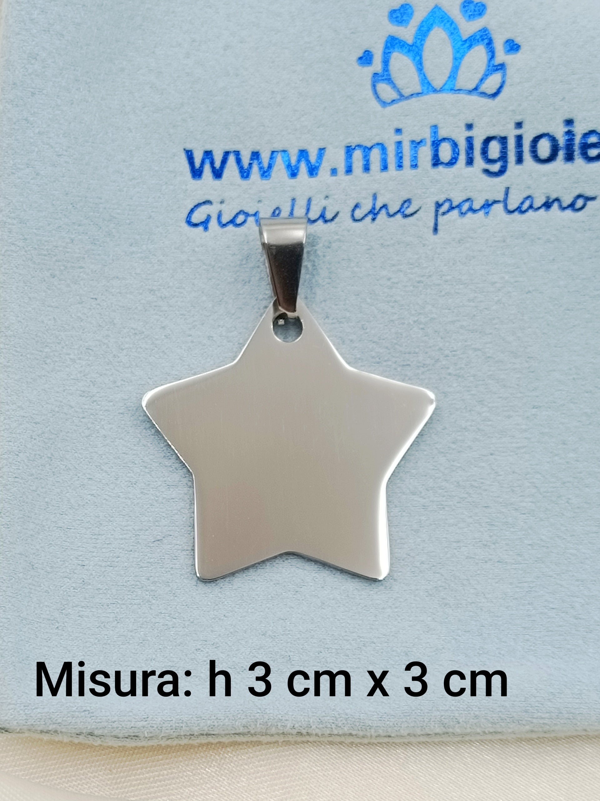 Collana con stella media in acciaio anallergico e inossidabile, personalizzabile con incisione.
