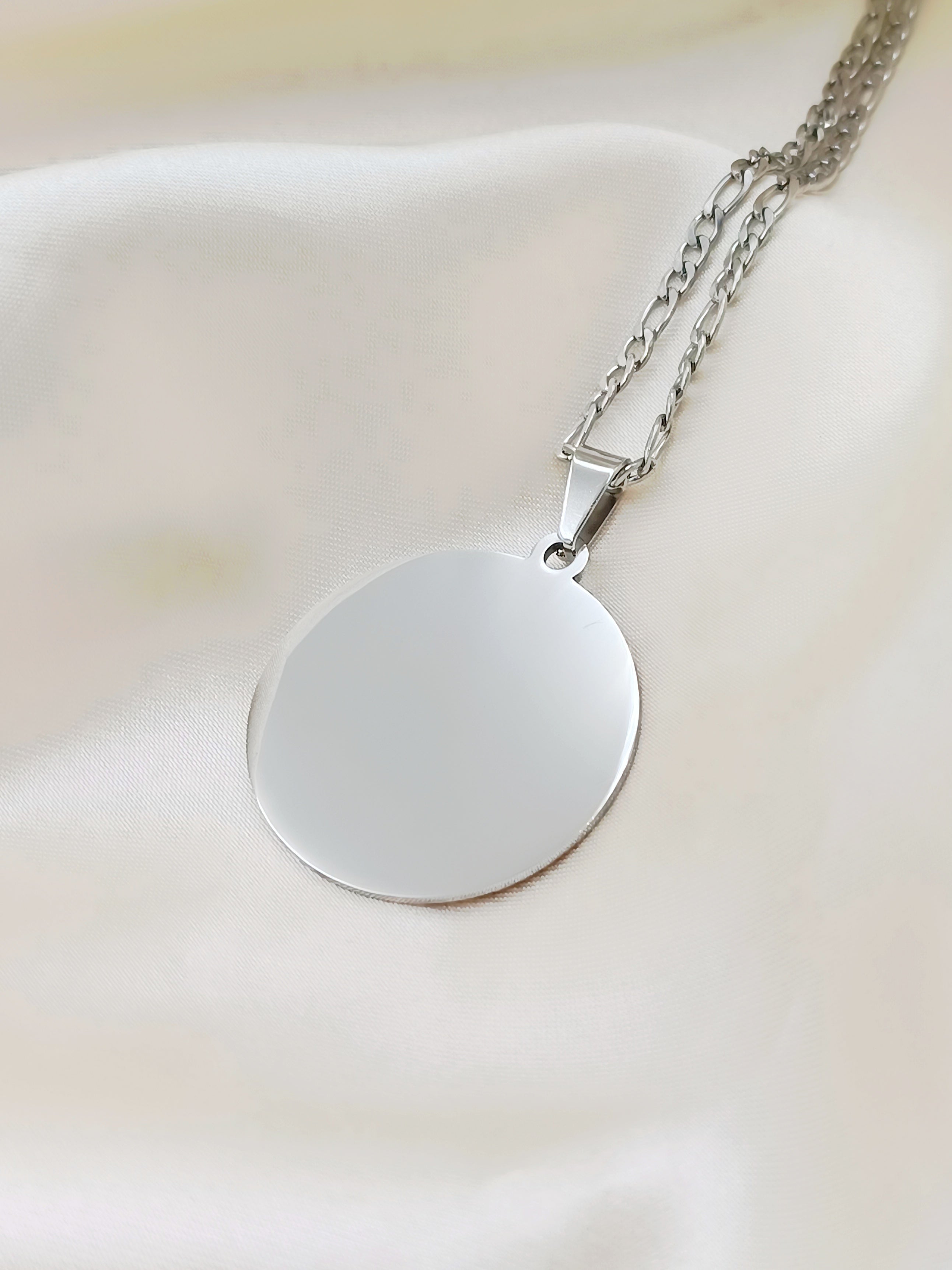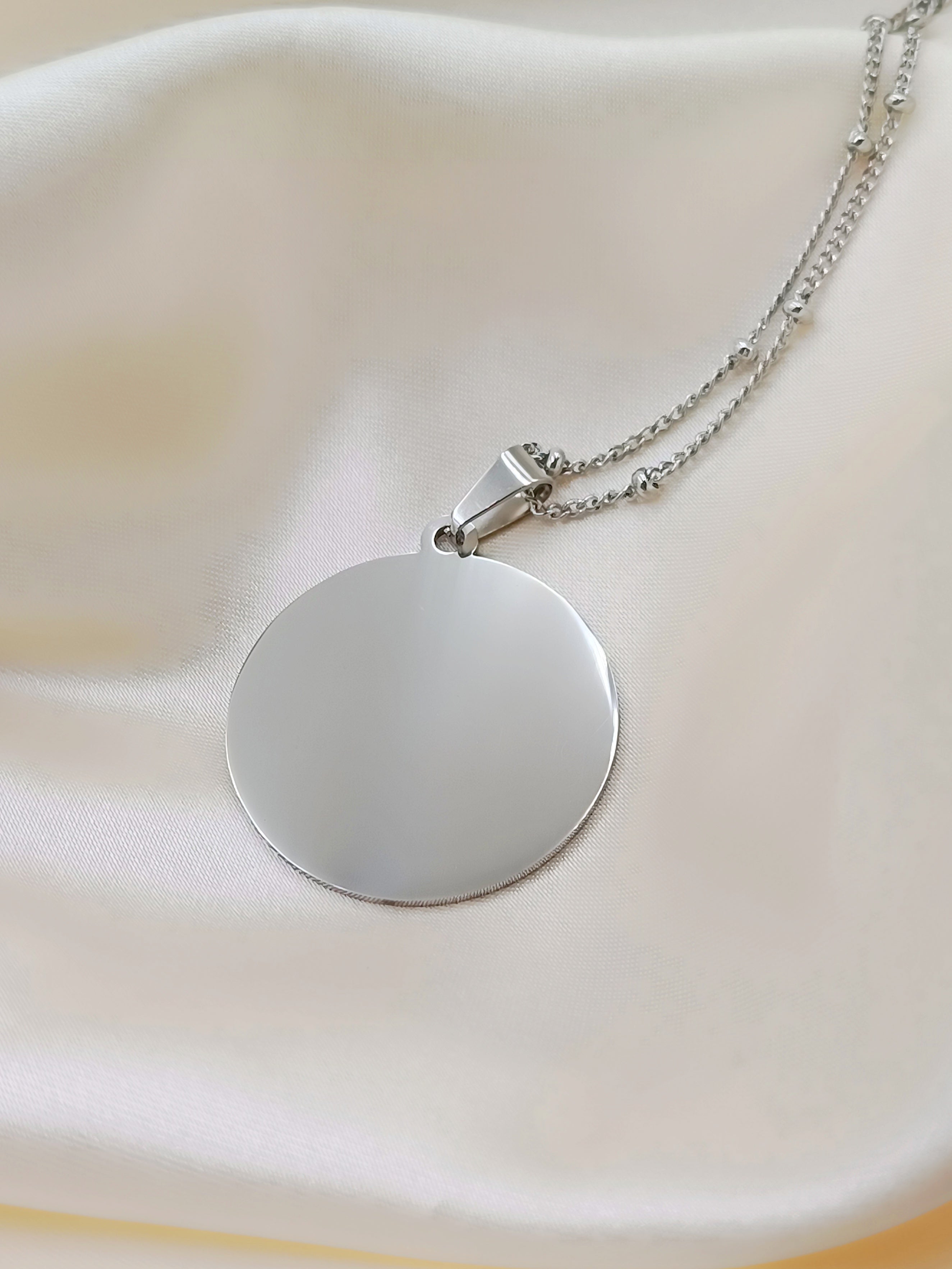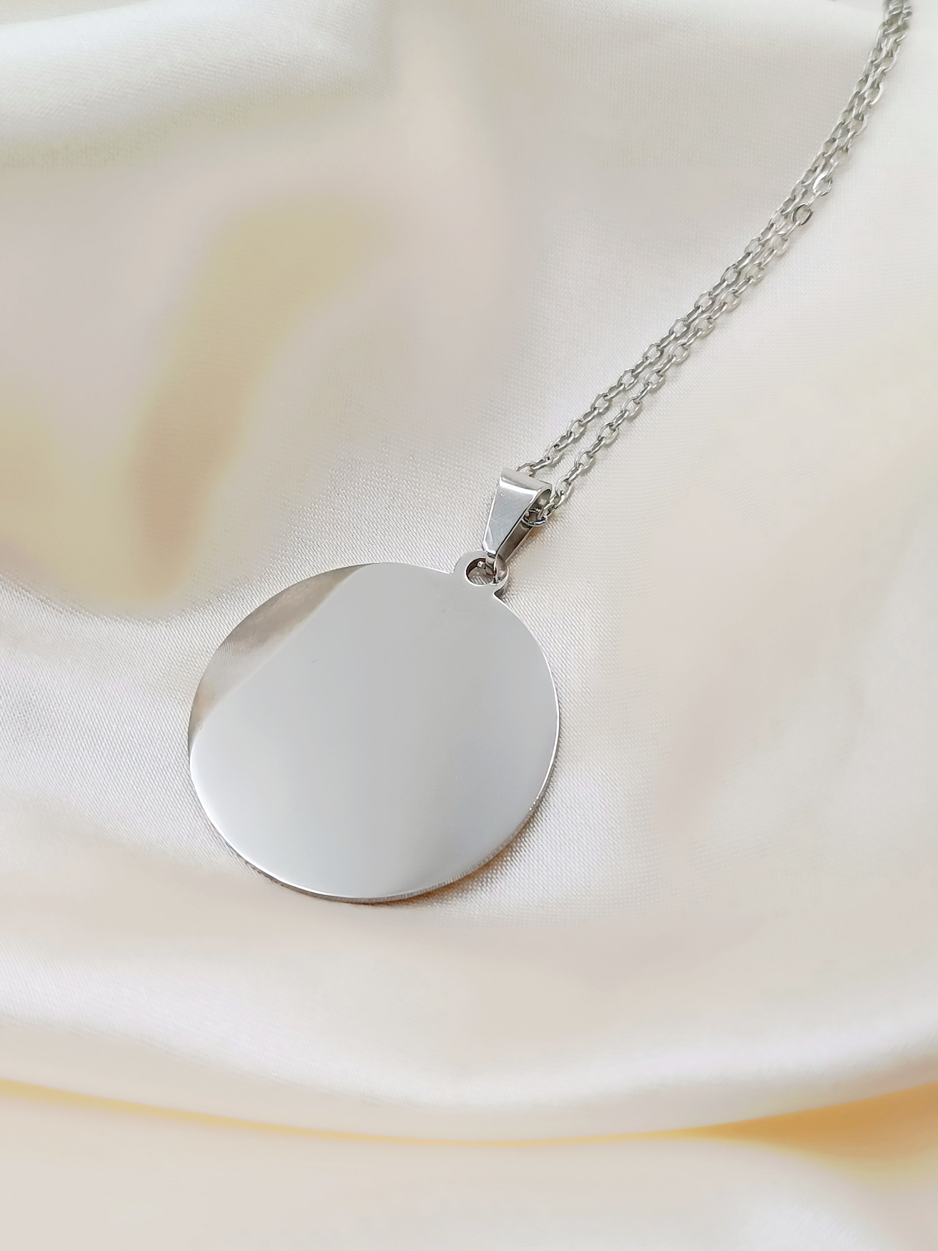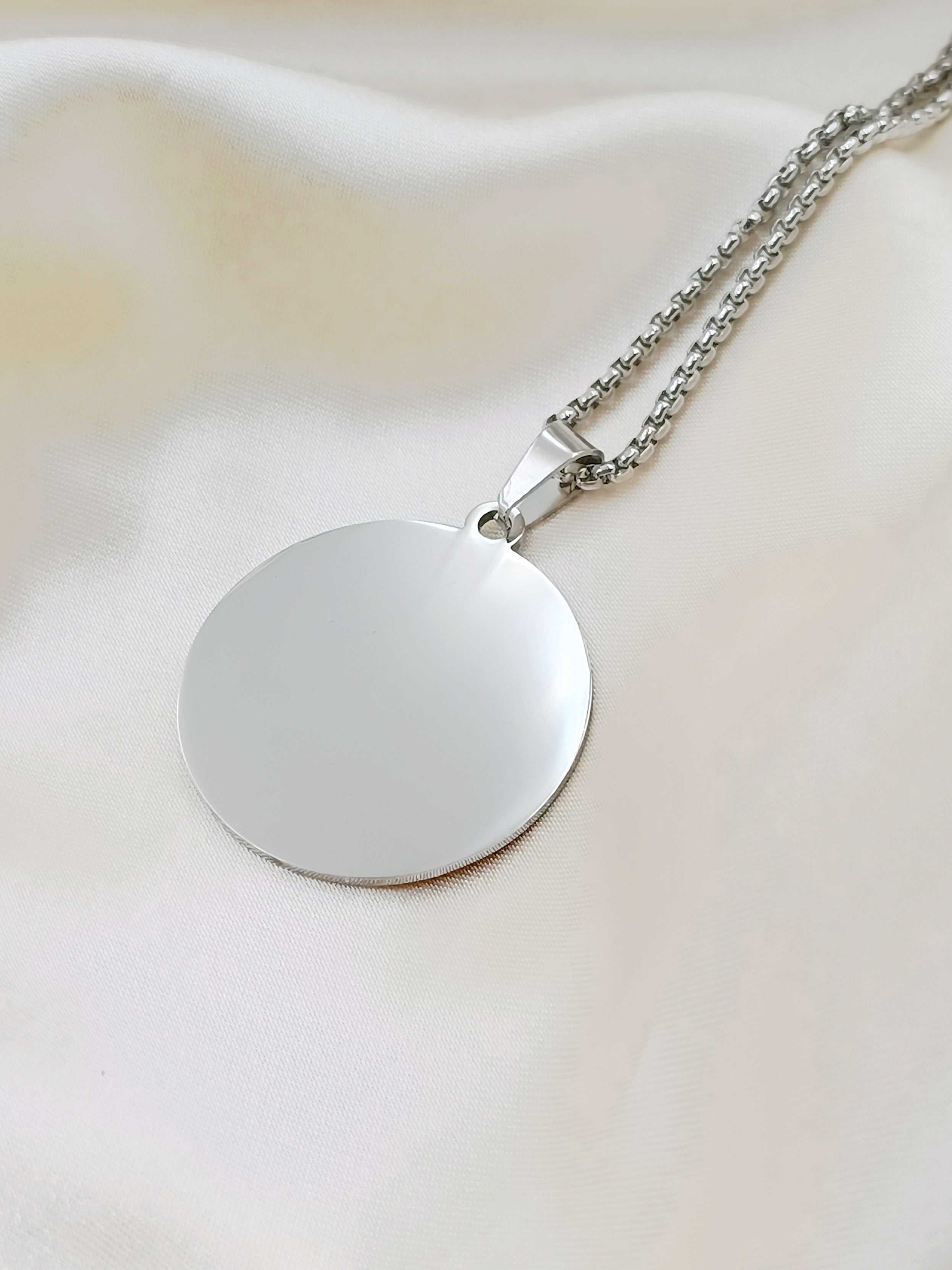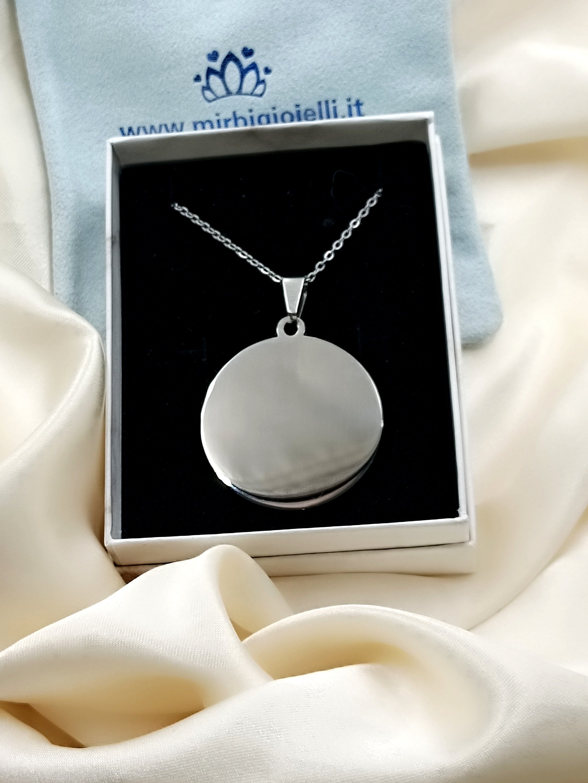 Collana con tondo grande in acciaio anallergico e inossidabile, personalizzabile con incisione o fotoincisione!