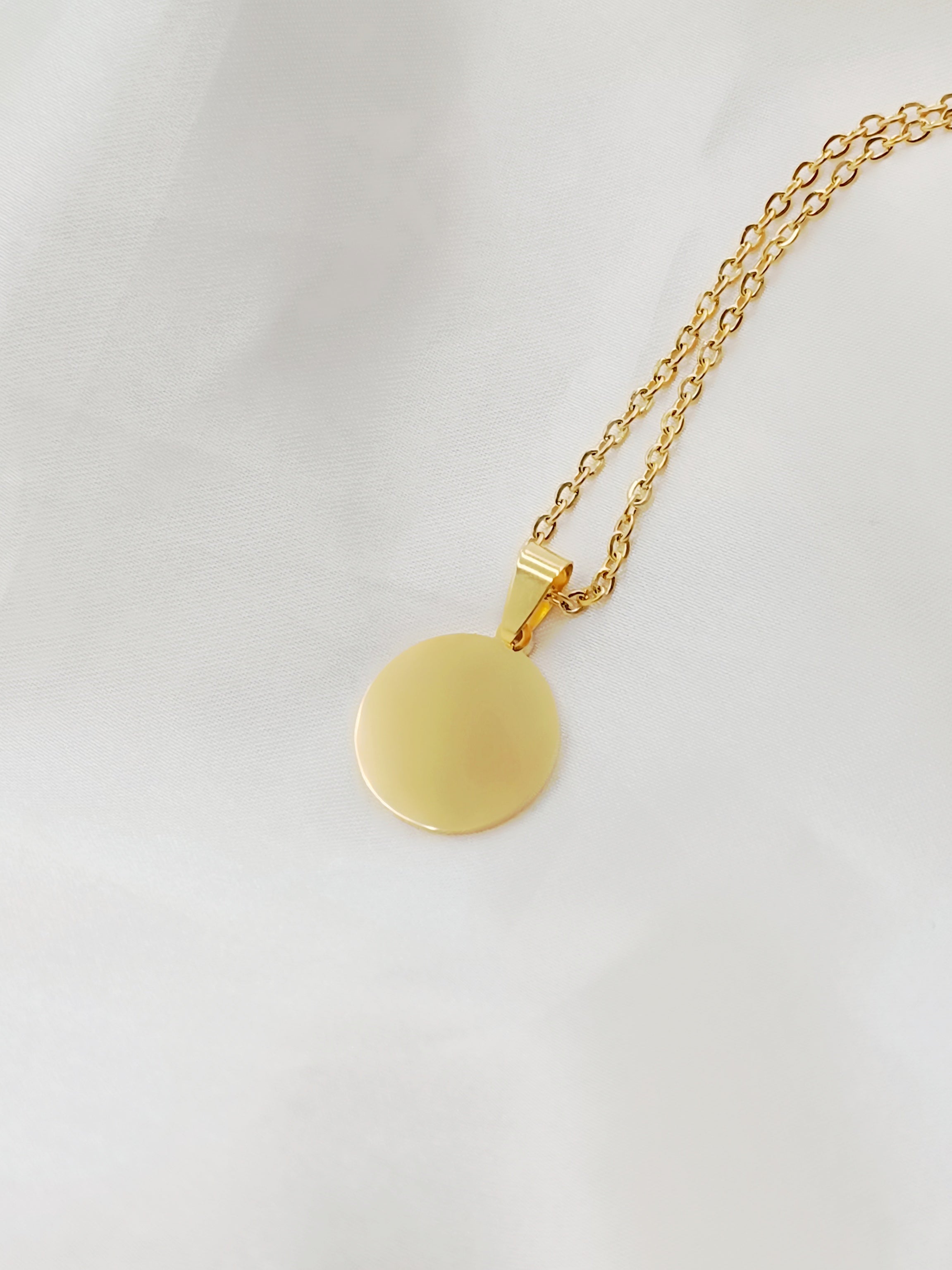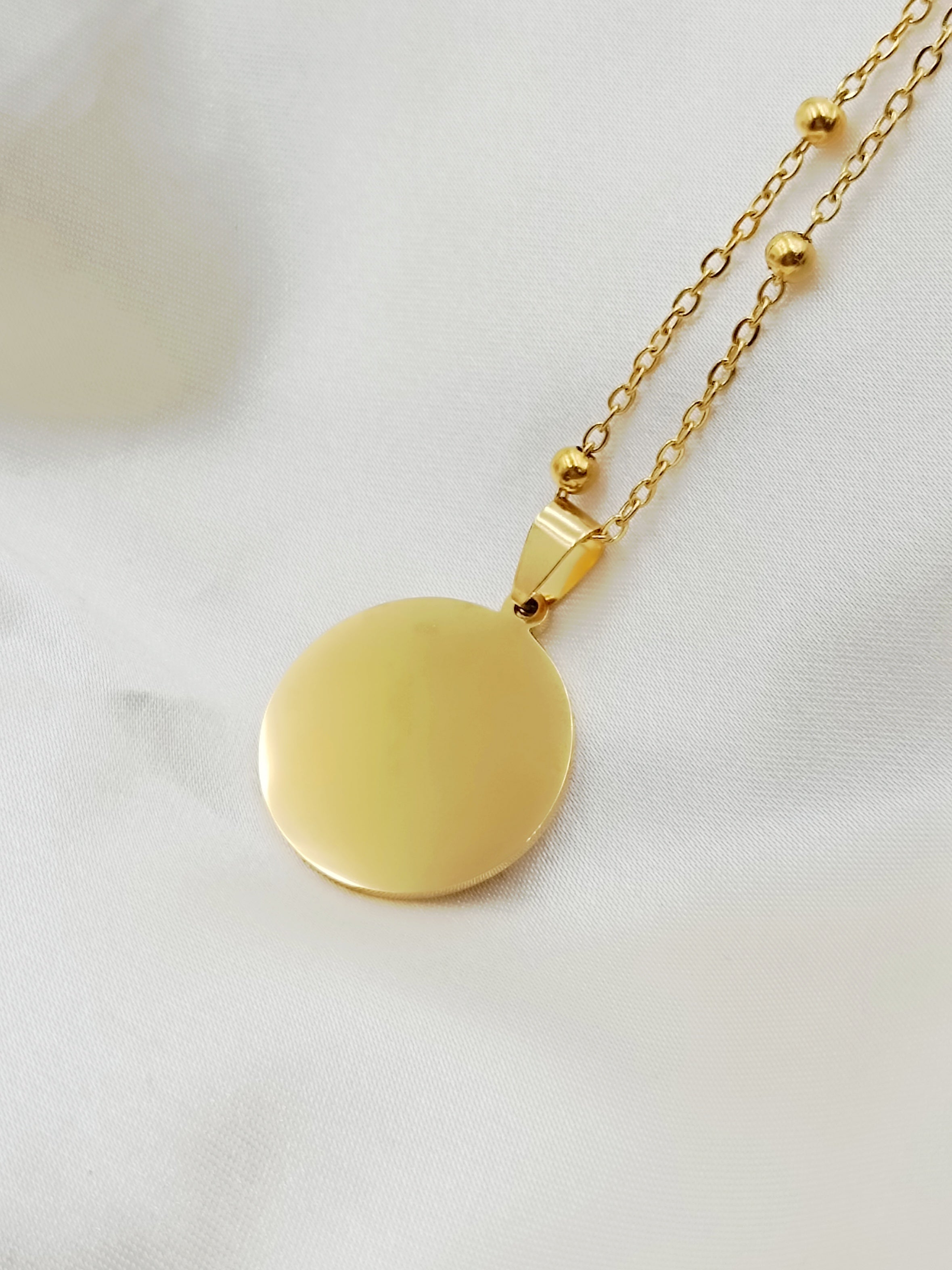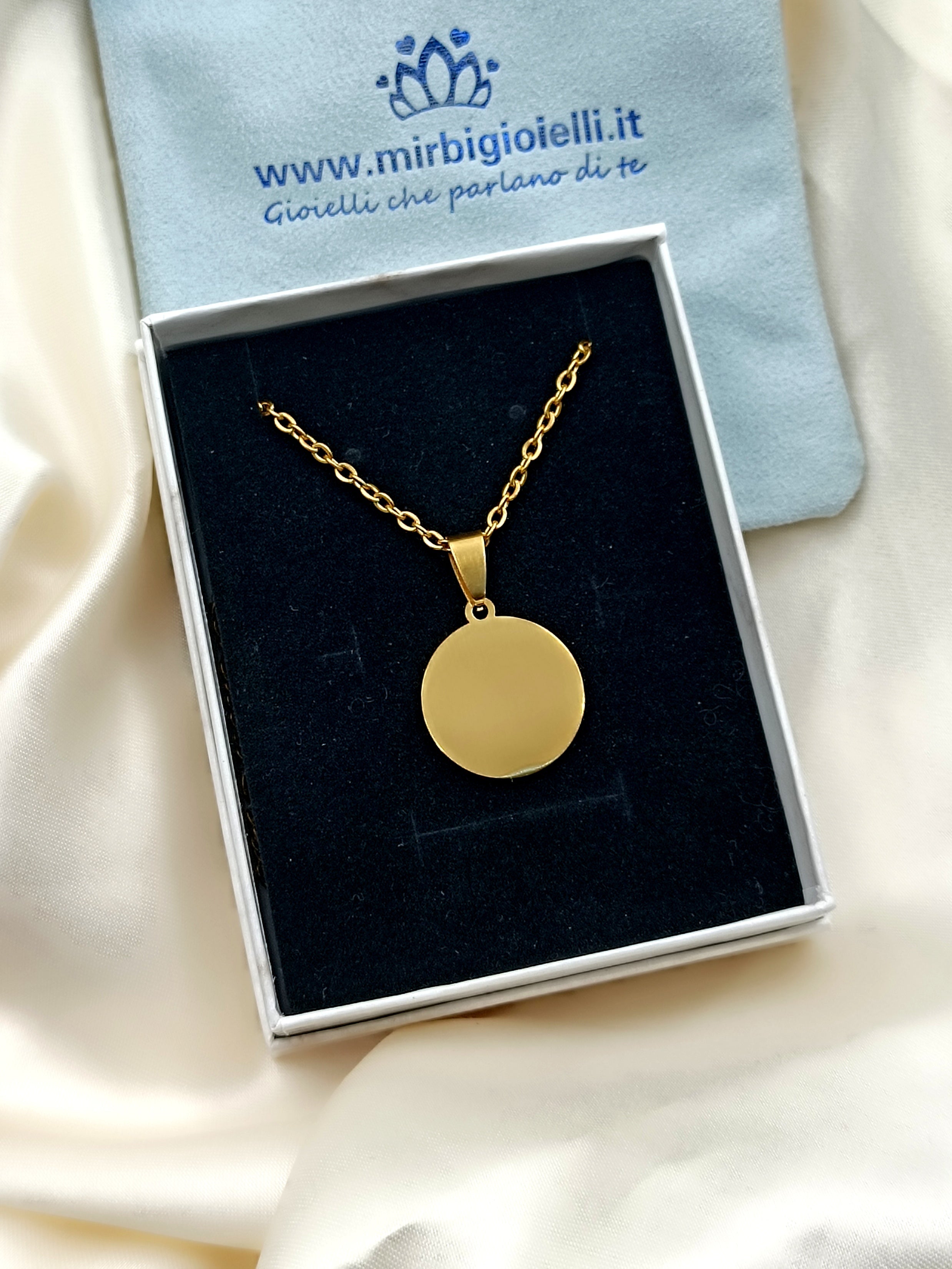 Collana con tondo piccolo in acciaio gold anallergico e inossidabile, personalizzabile con incisione o fotoincisione!