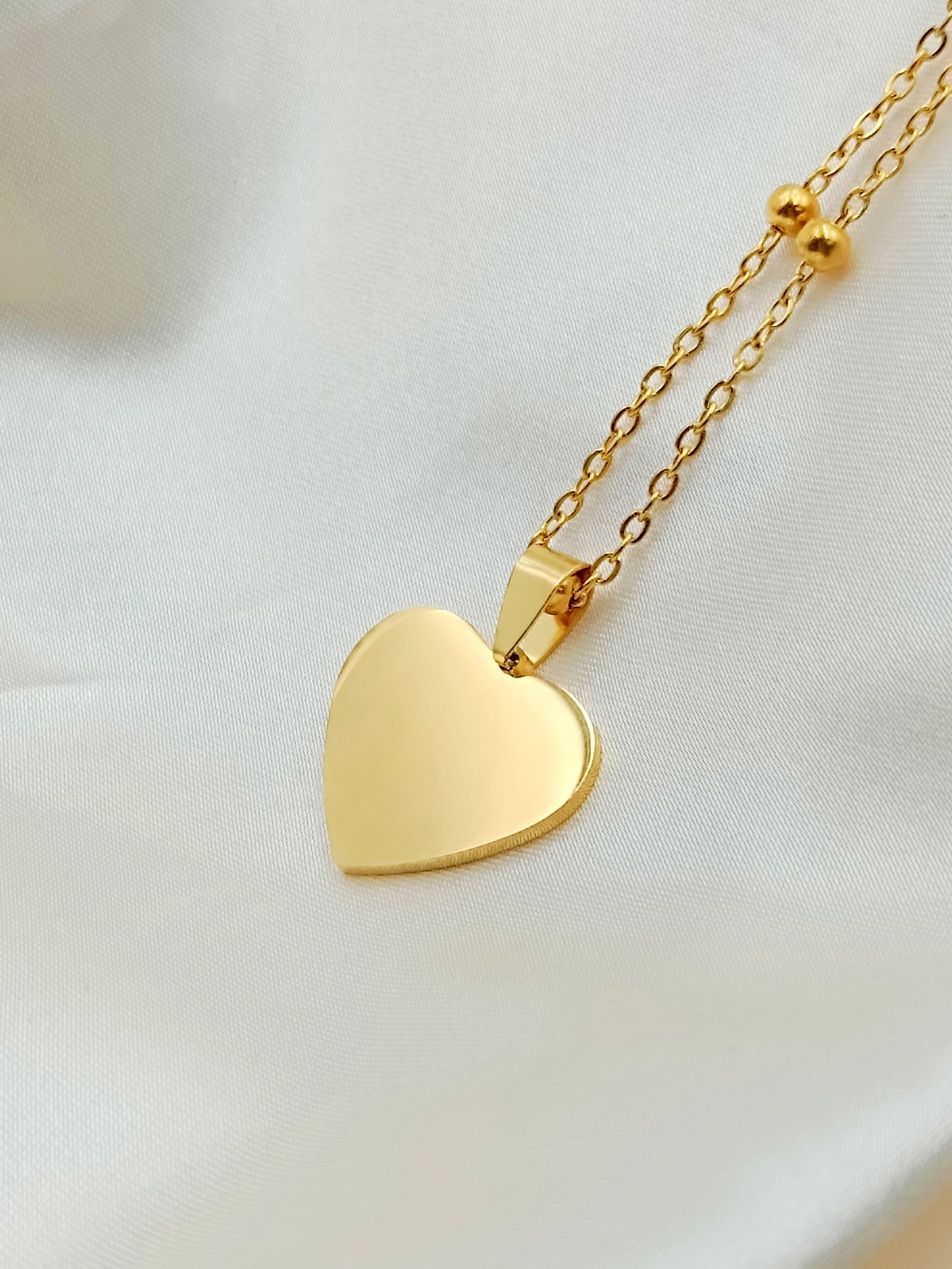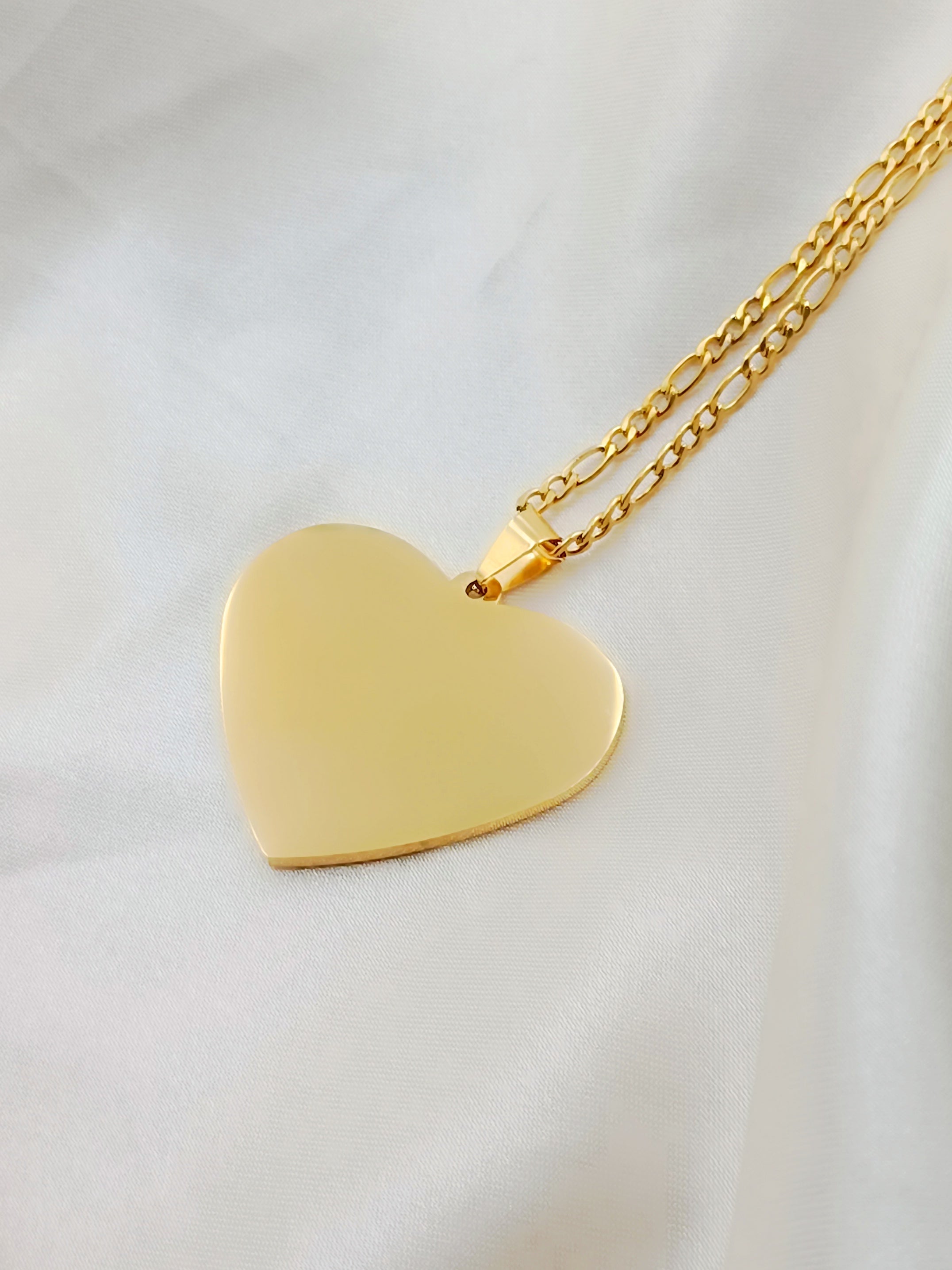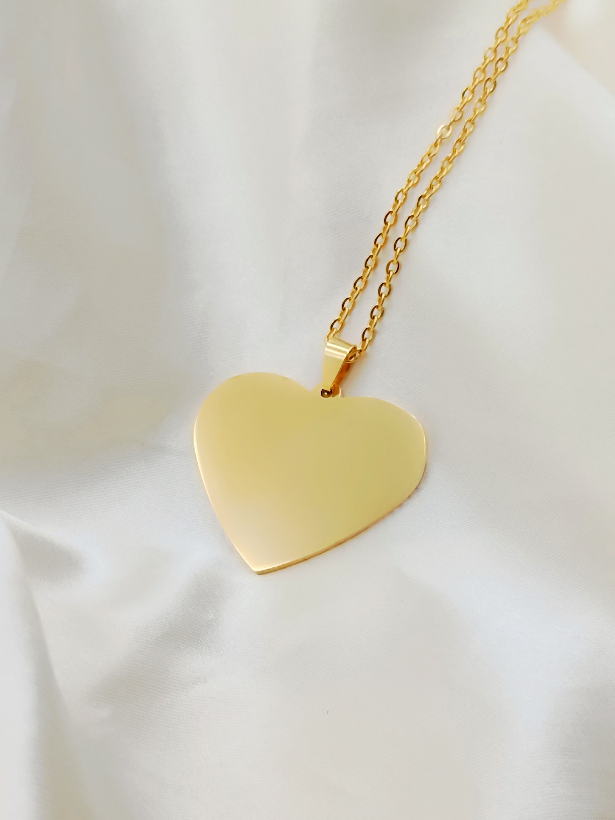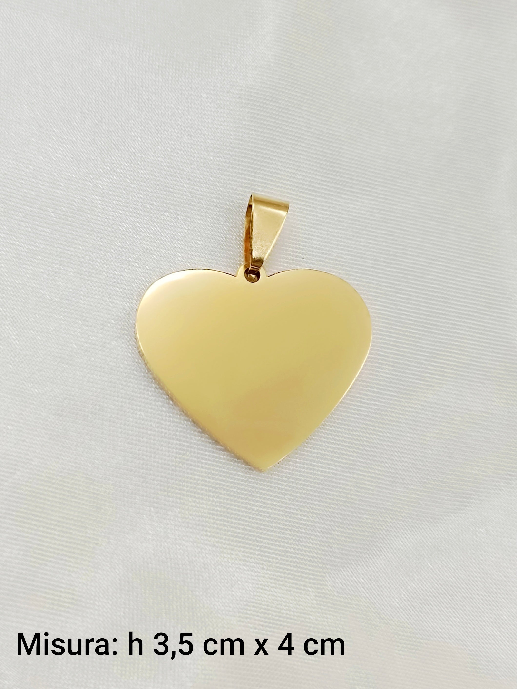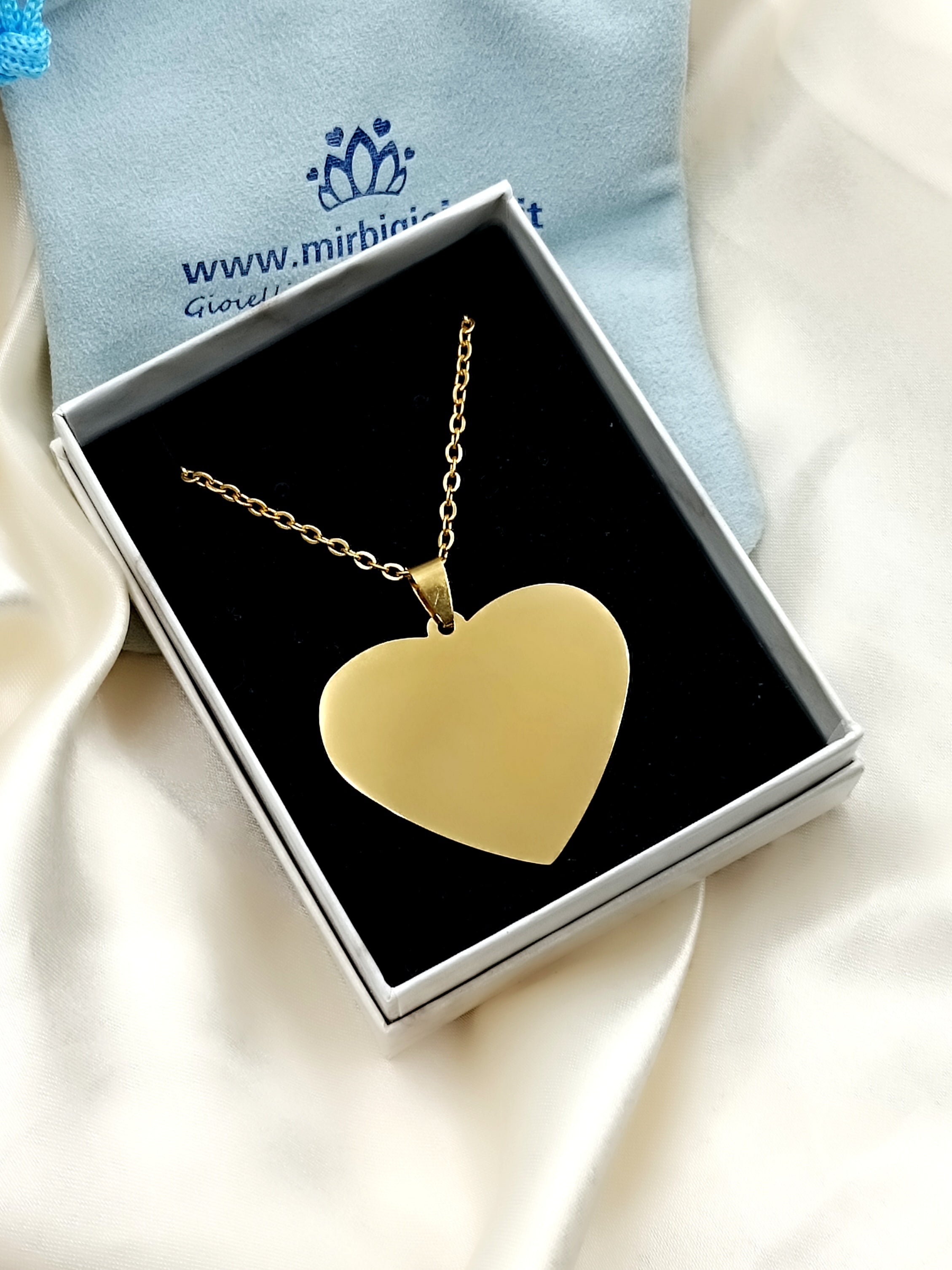 Collana con cuore big in acciaio gold anallergico e inossidabile, personalizzabile con incisione o fotoincisione!