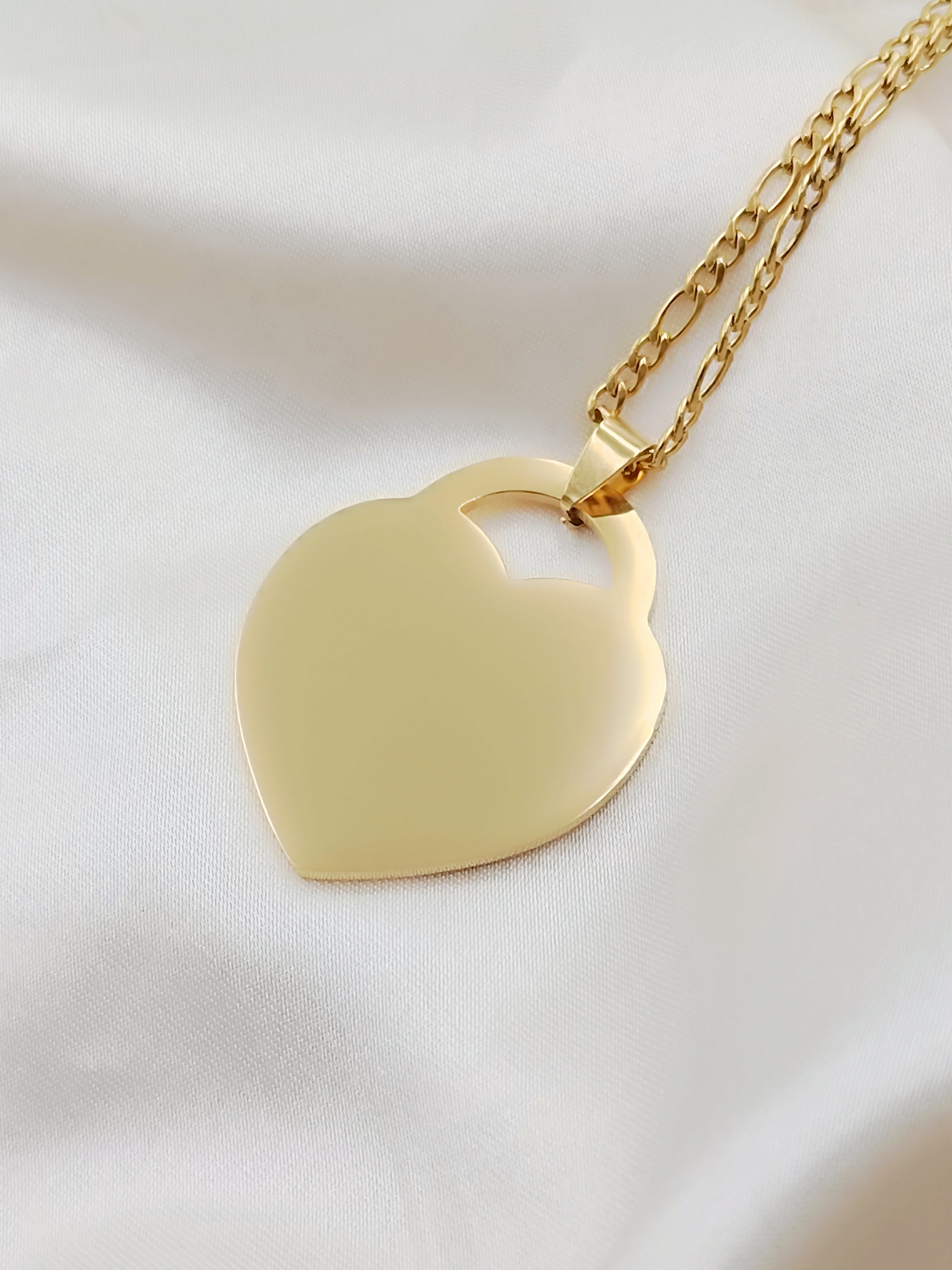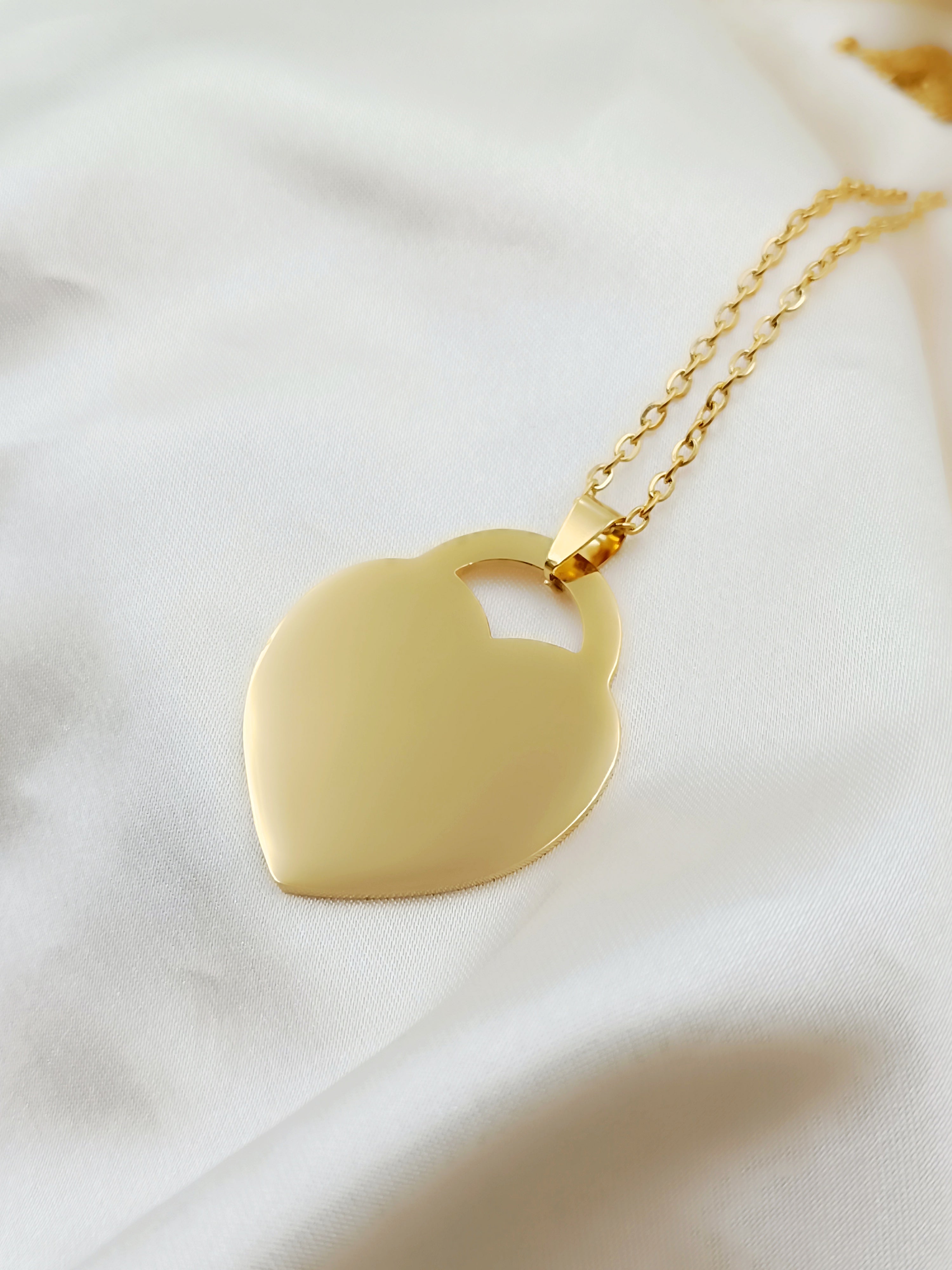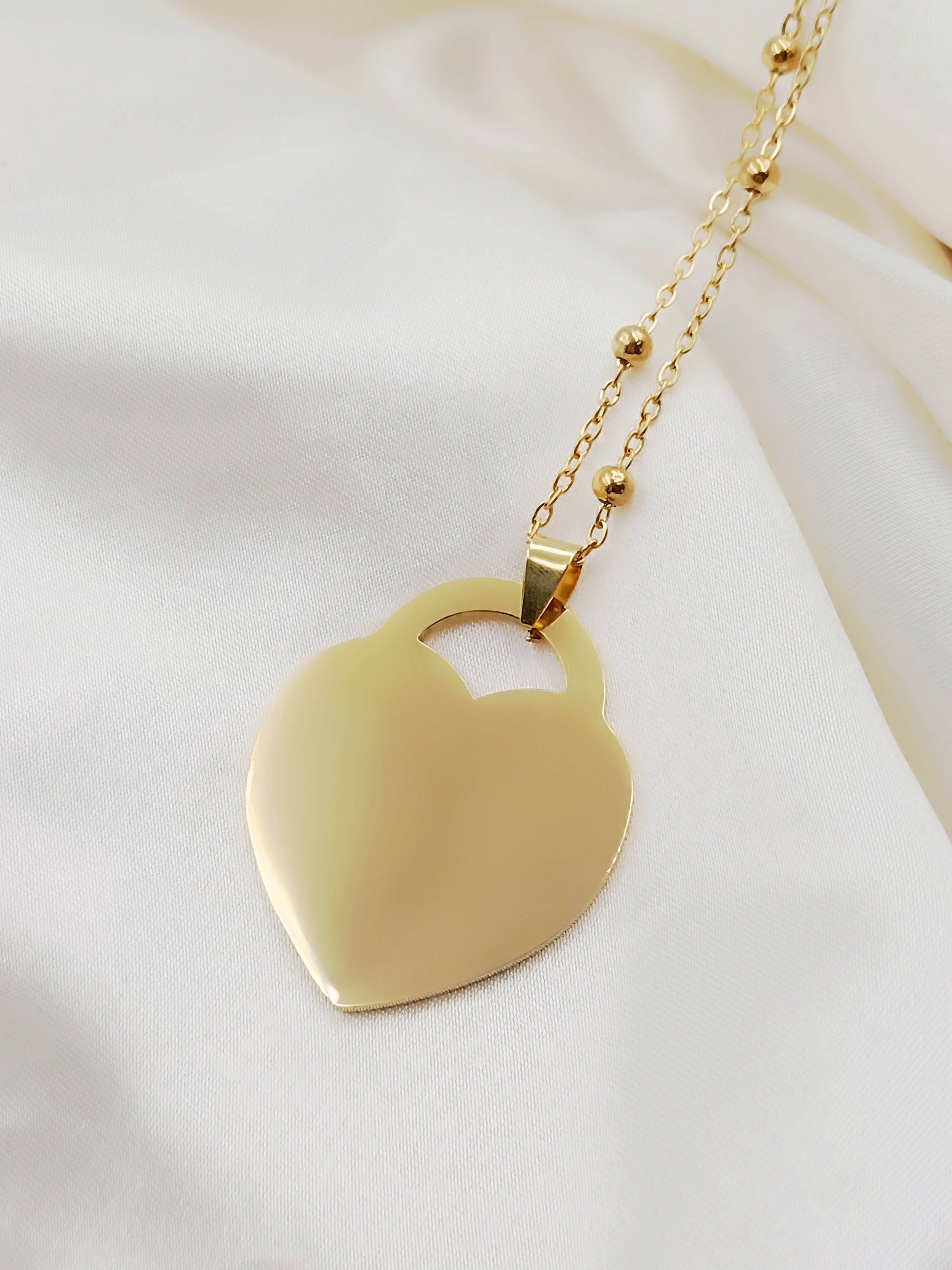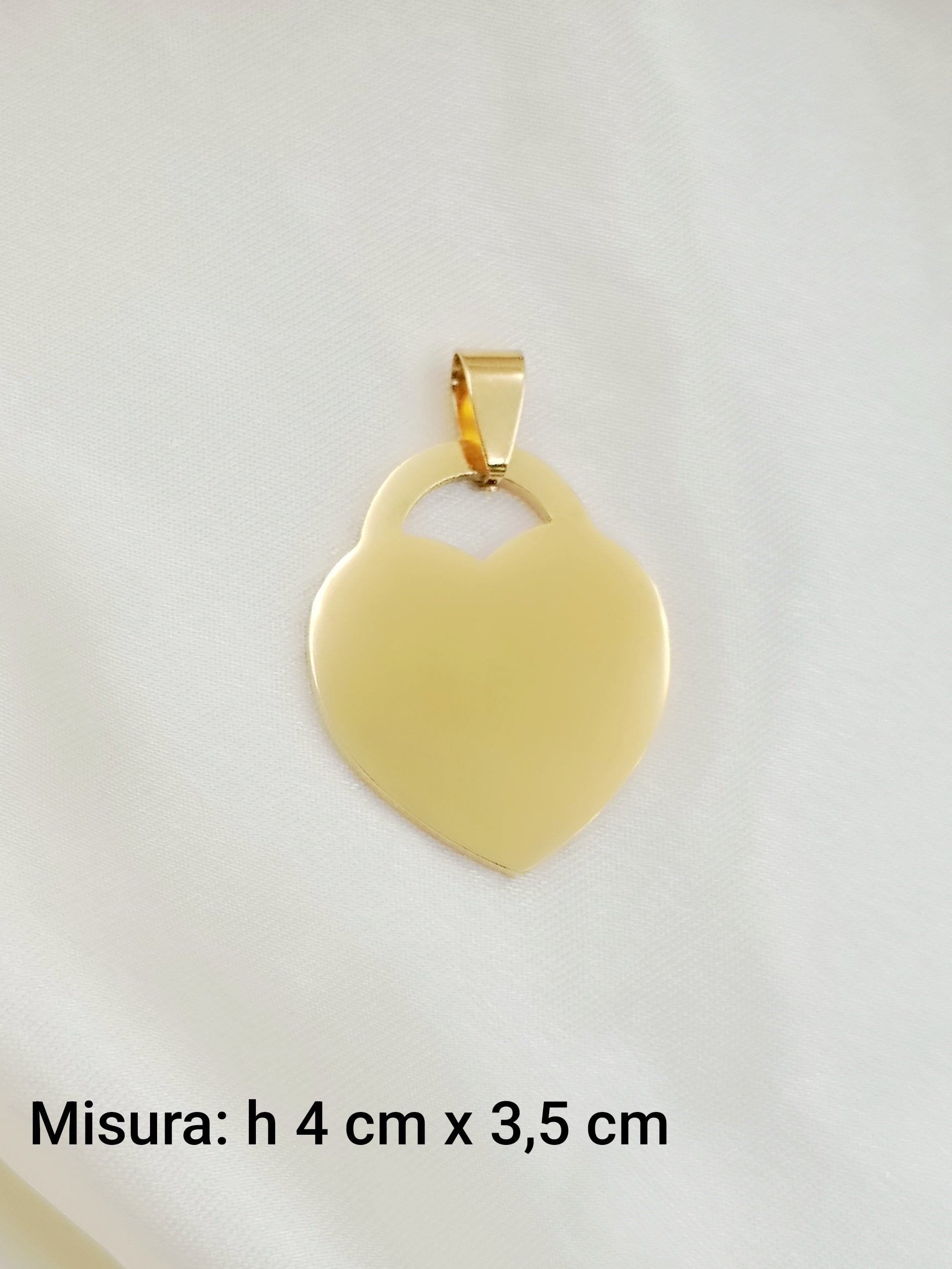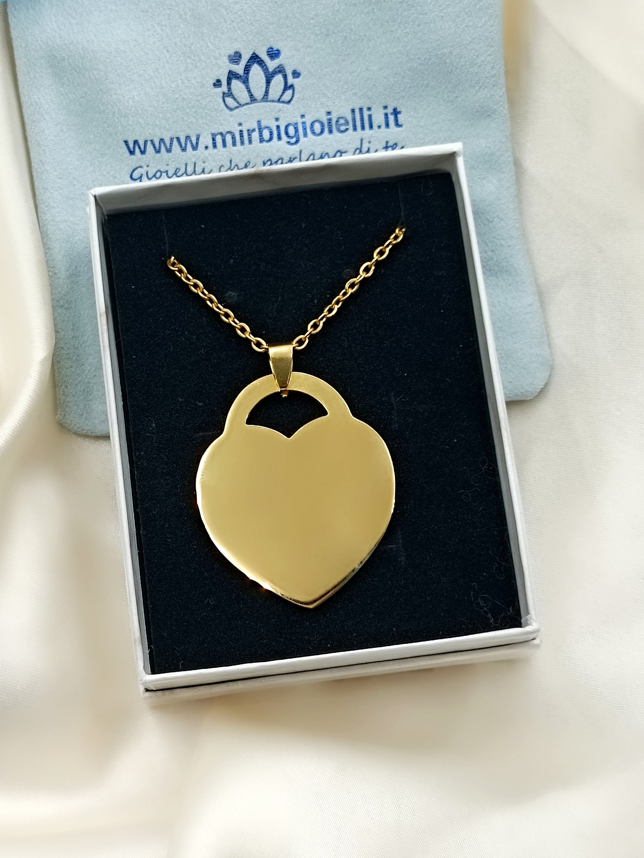 Collana con cuore lucchetto grande in acciaio gold anallergico e inossidabile, personalizzabile con incisione o fotoincisione!
