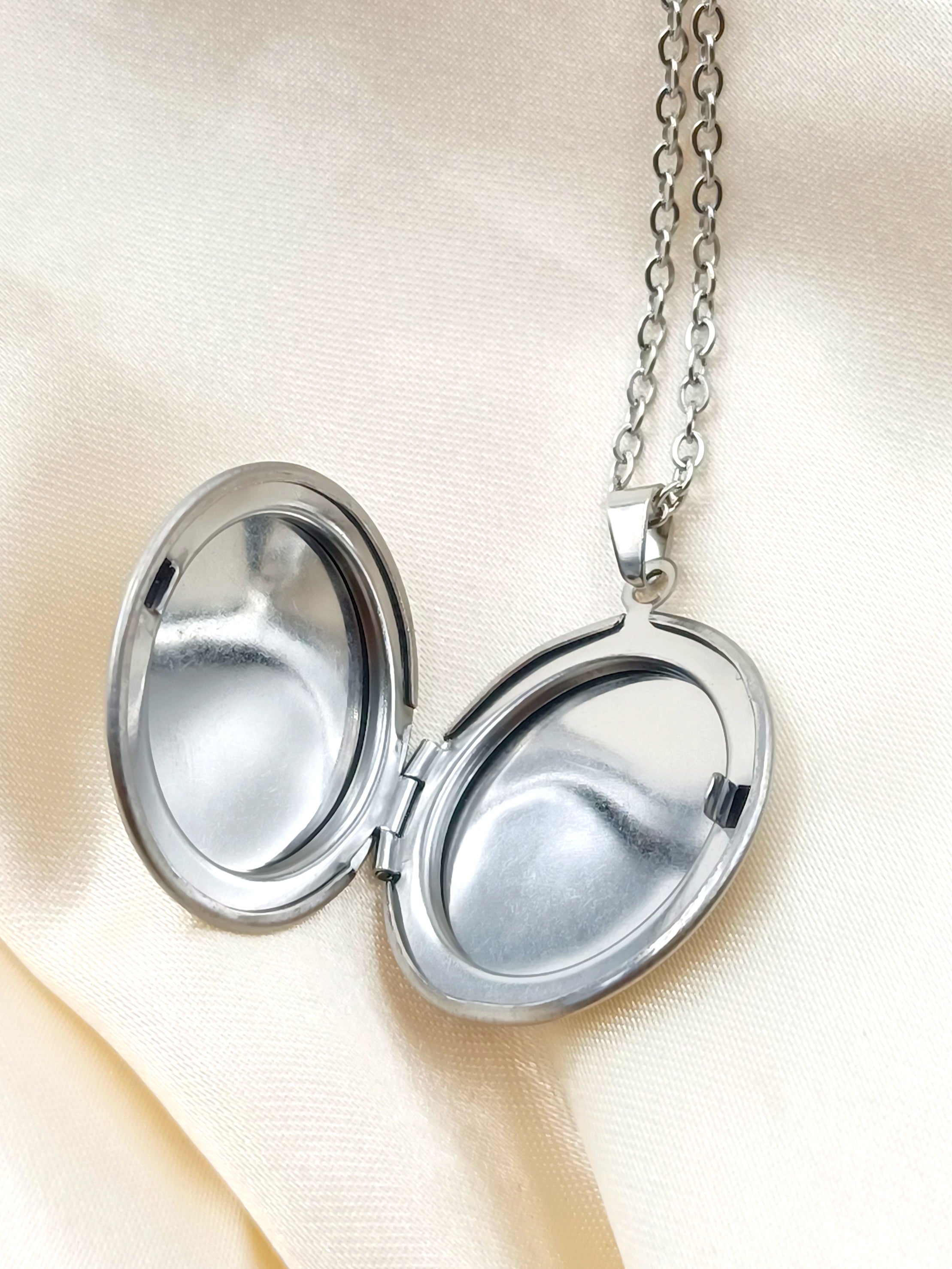 Collana portafoto in acciaio anallergico e inossidabile. Misura 44,5 cm + 5 cm di allungamento.