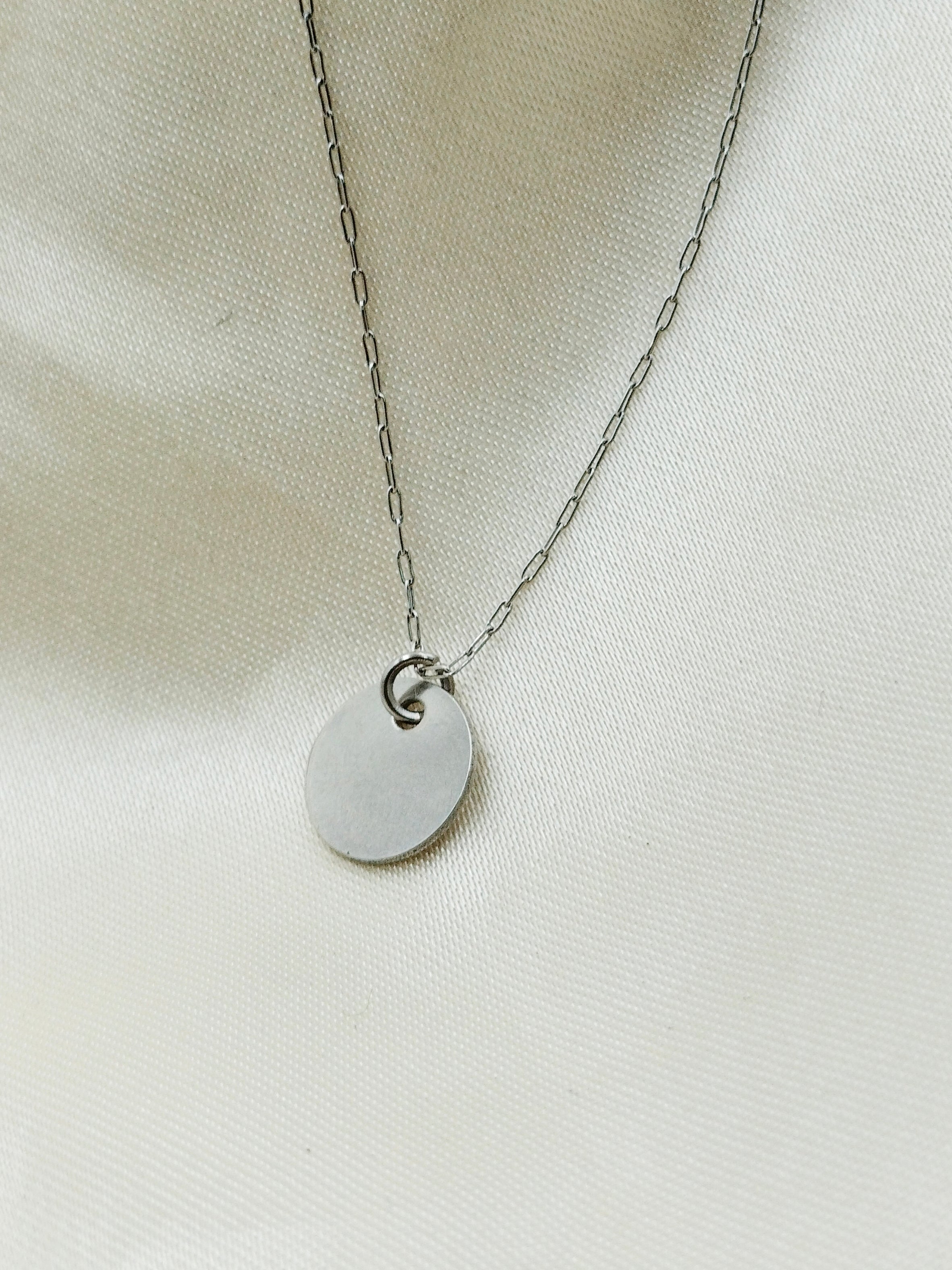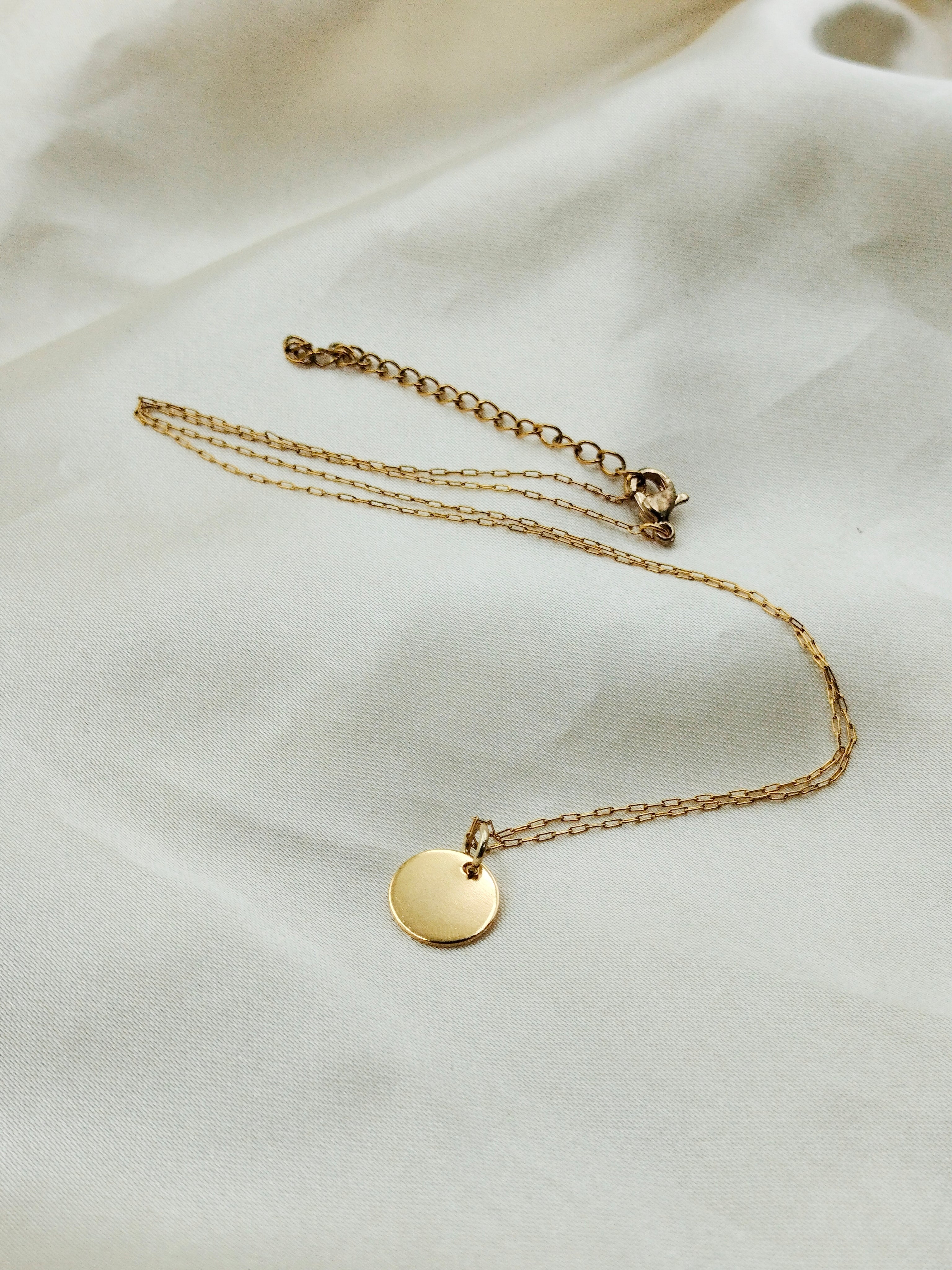 Collana sottilissima in acciaio anallergico e inossidabile con ciondolino rotondo.