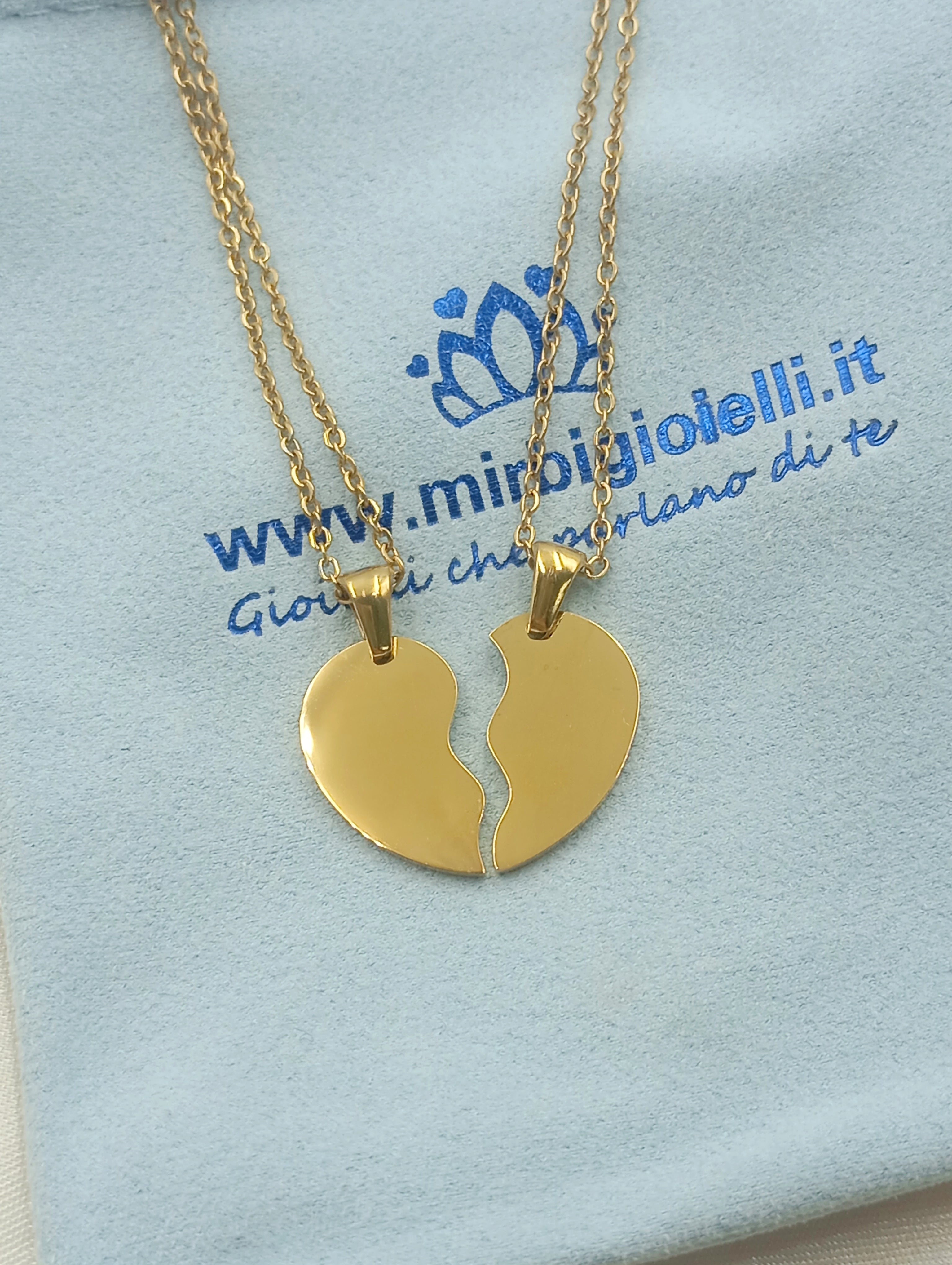 Coppia di collane cuore spezzato in acciaio gold