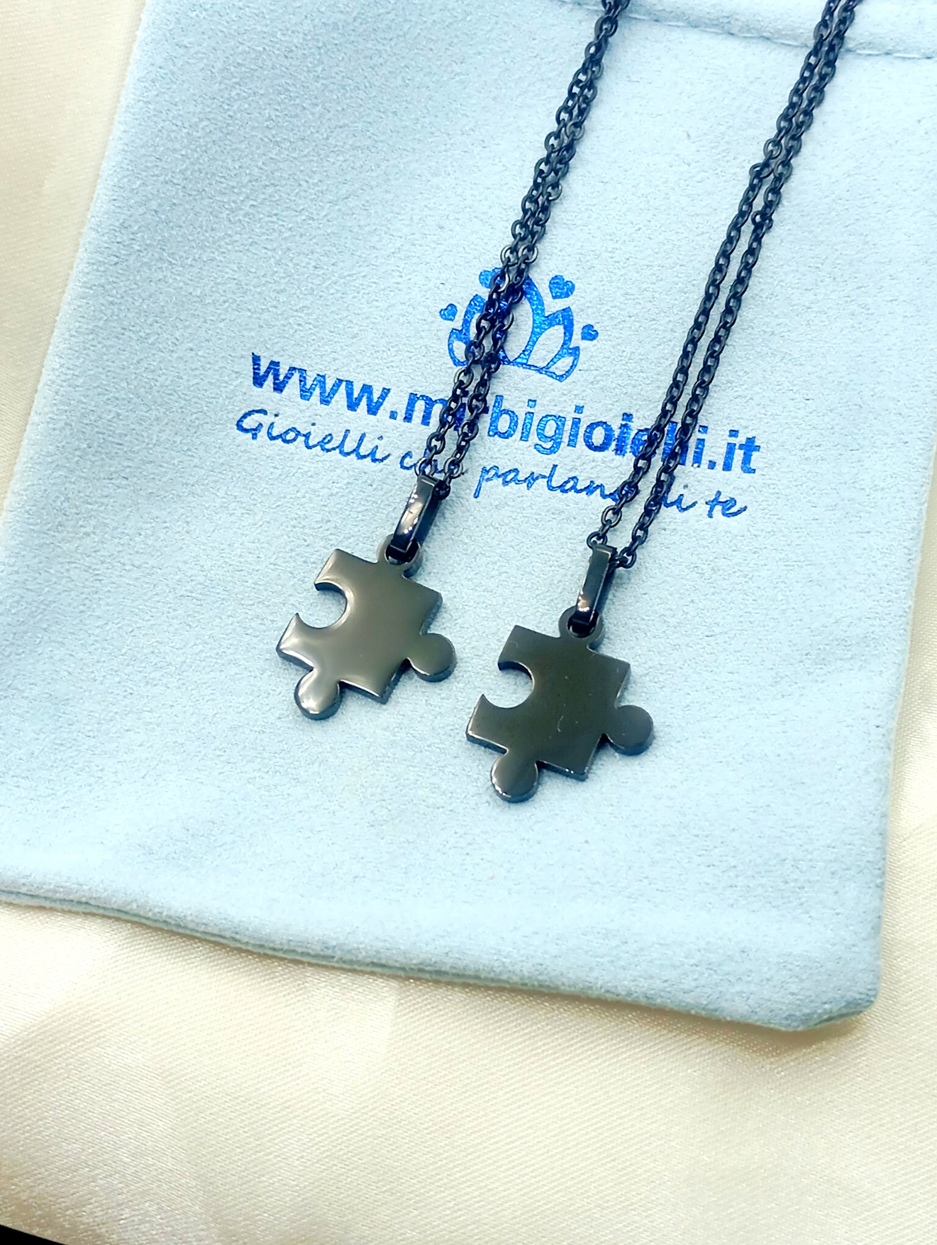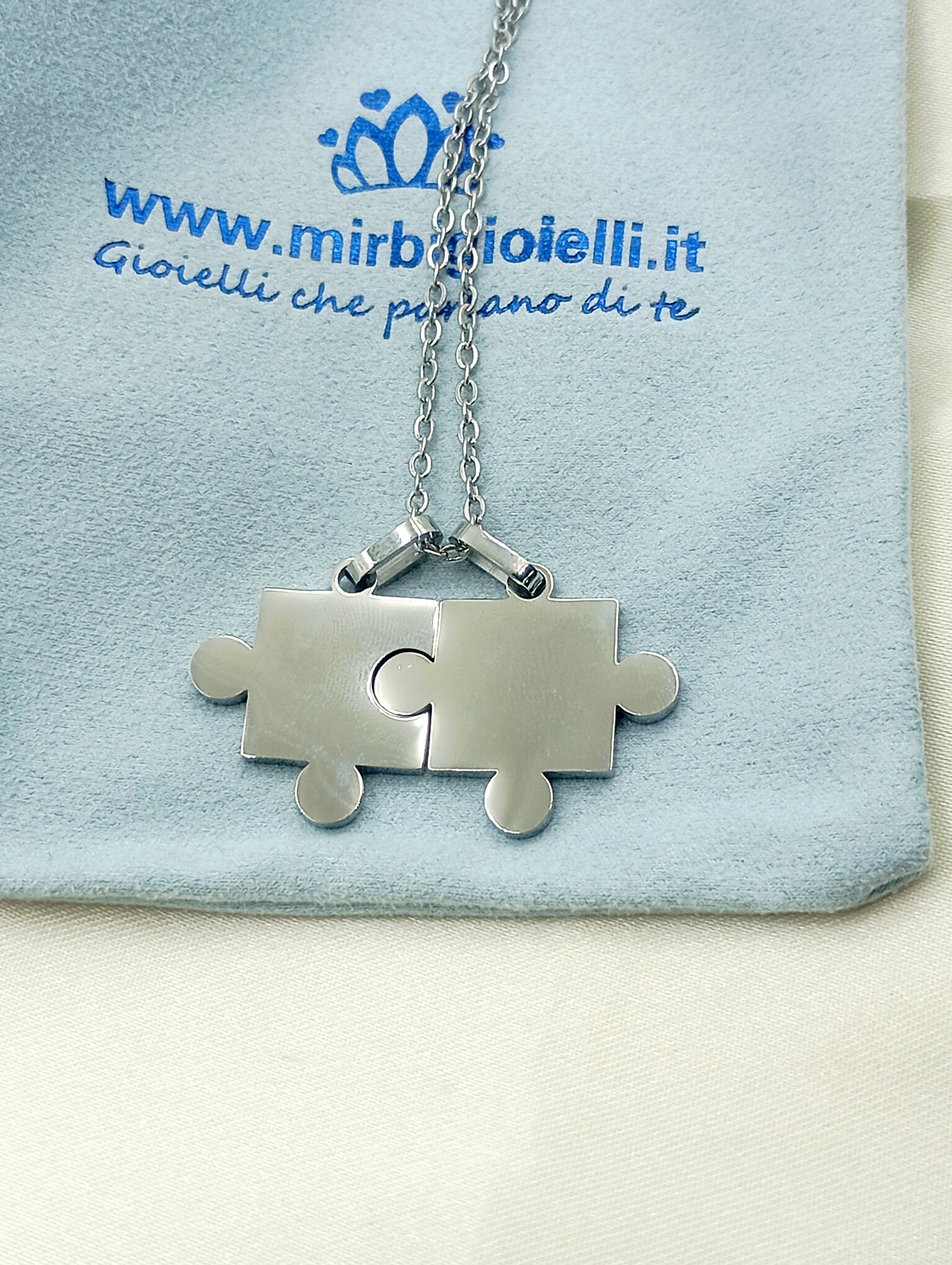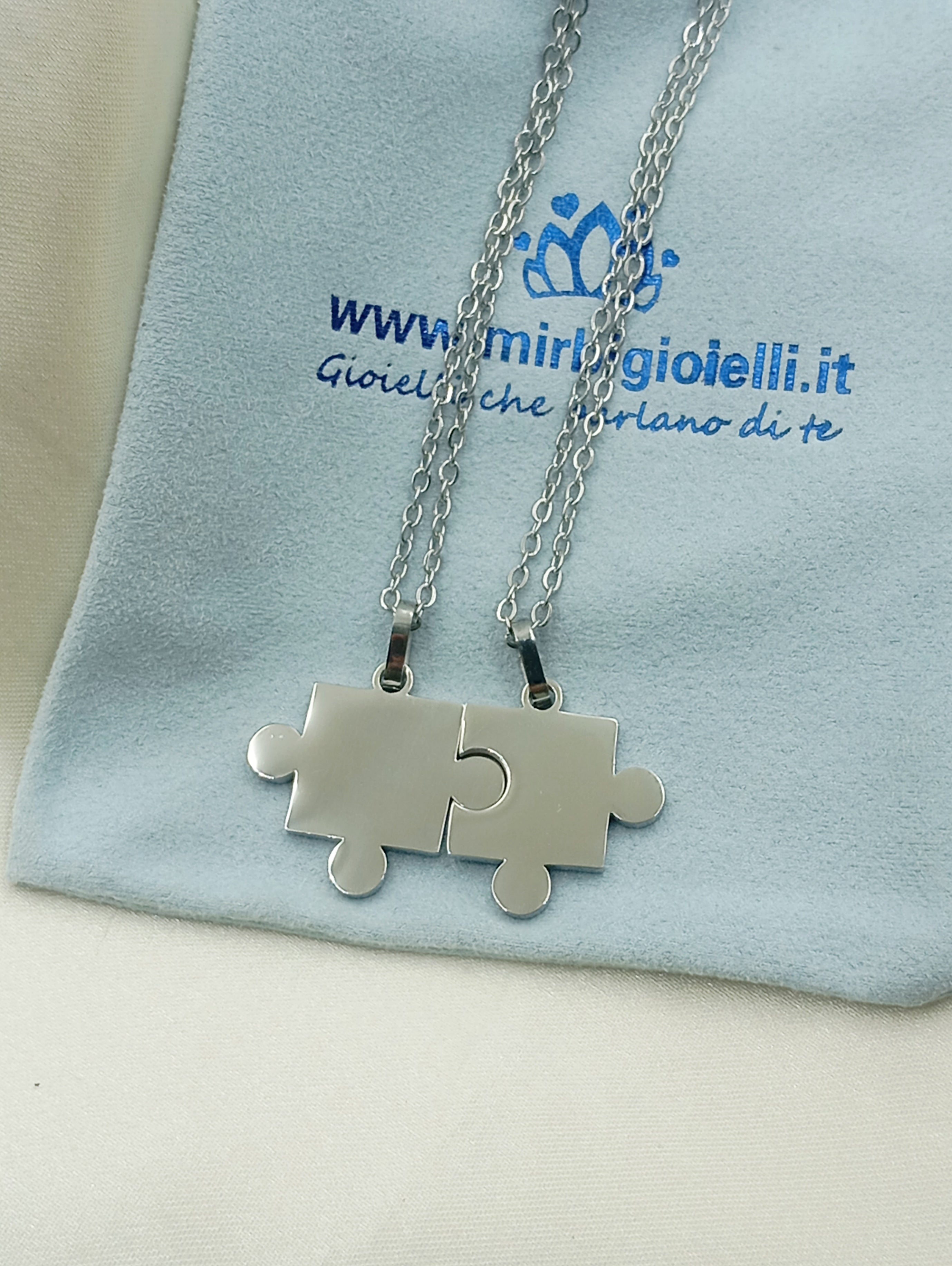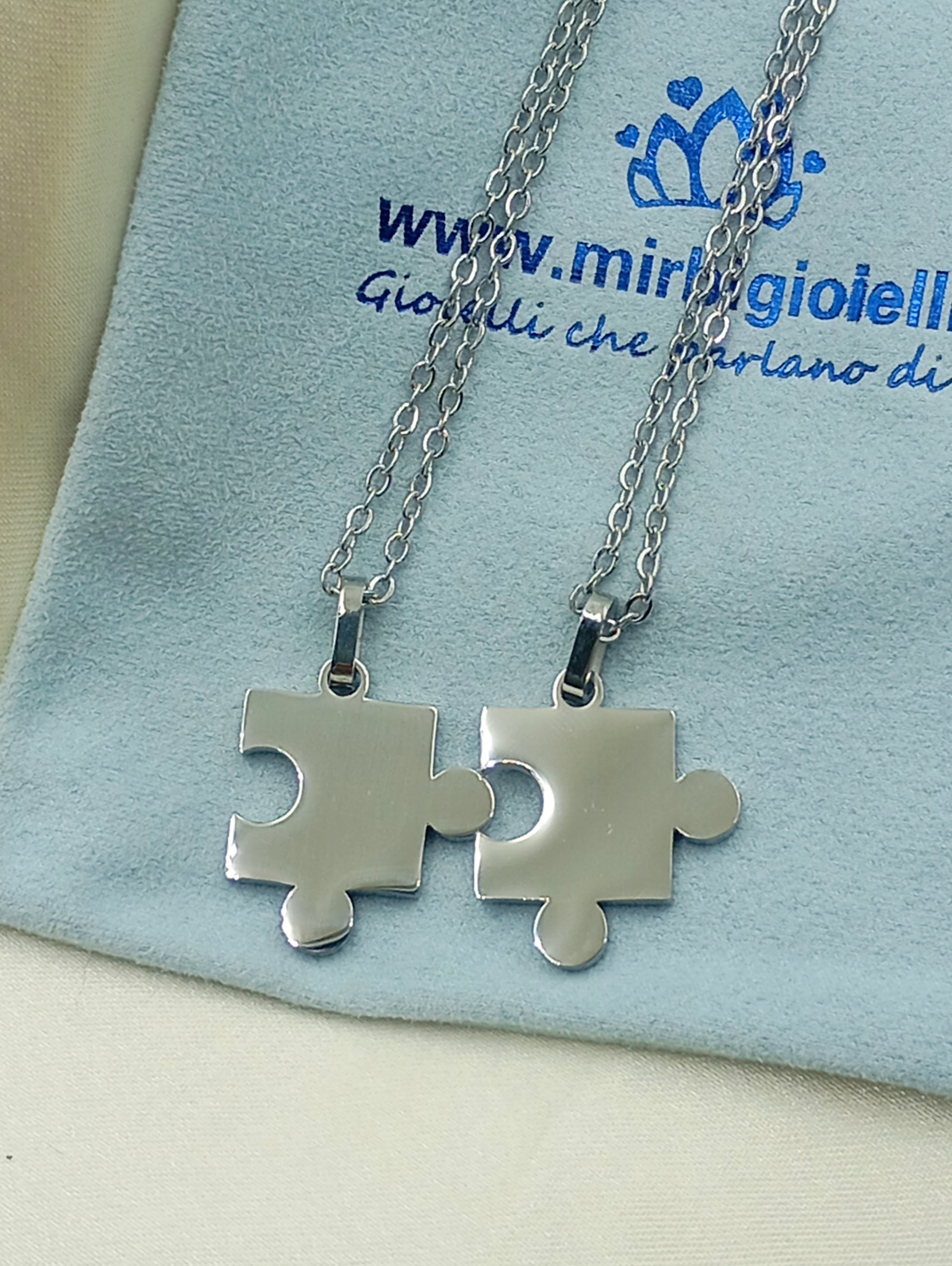 Coppia di puzzle in acciaio inossidabile con incisione. Disponibile nei diversi colori.