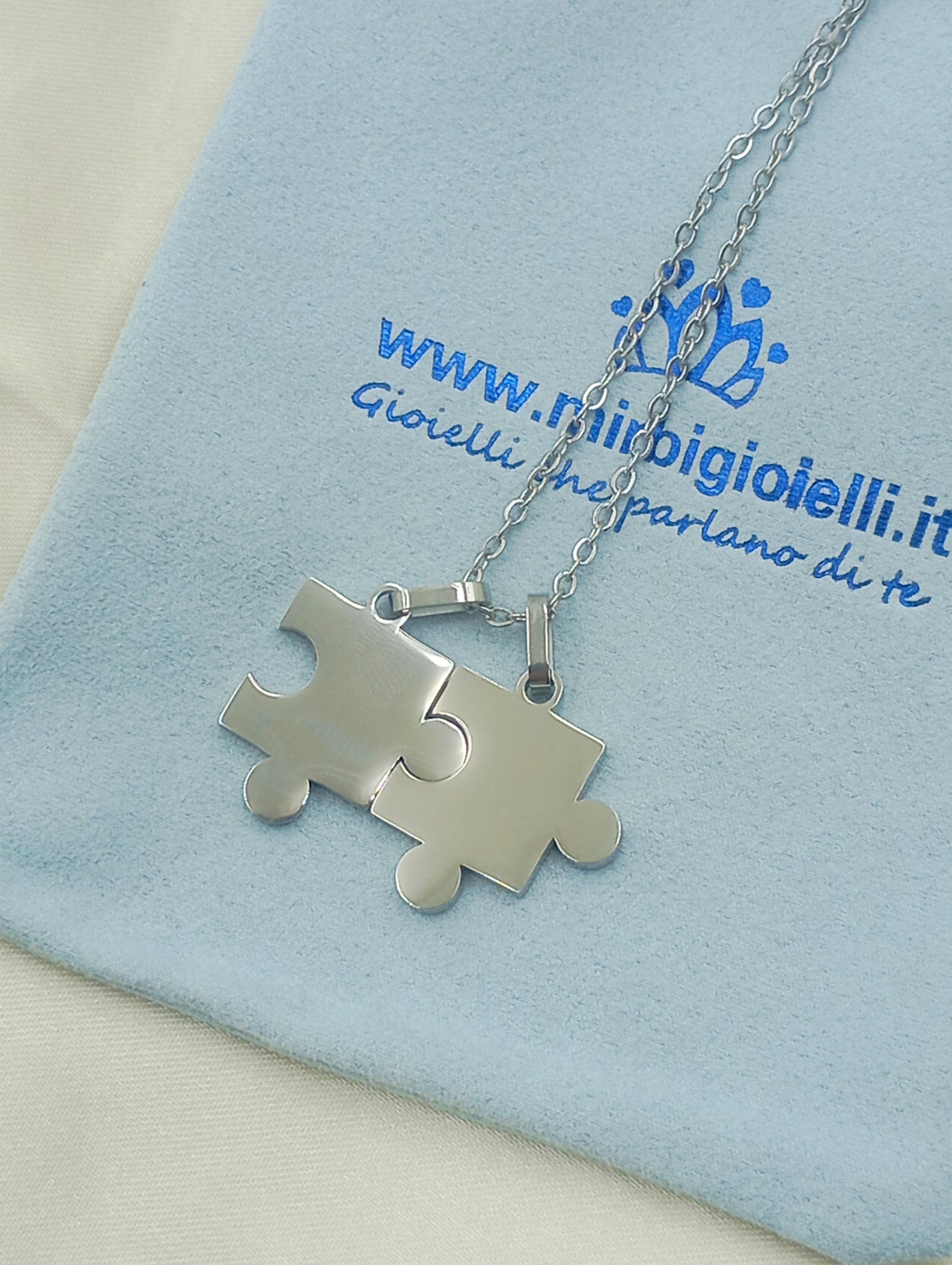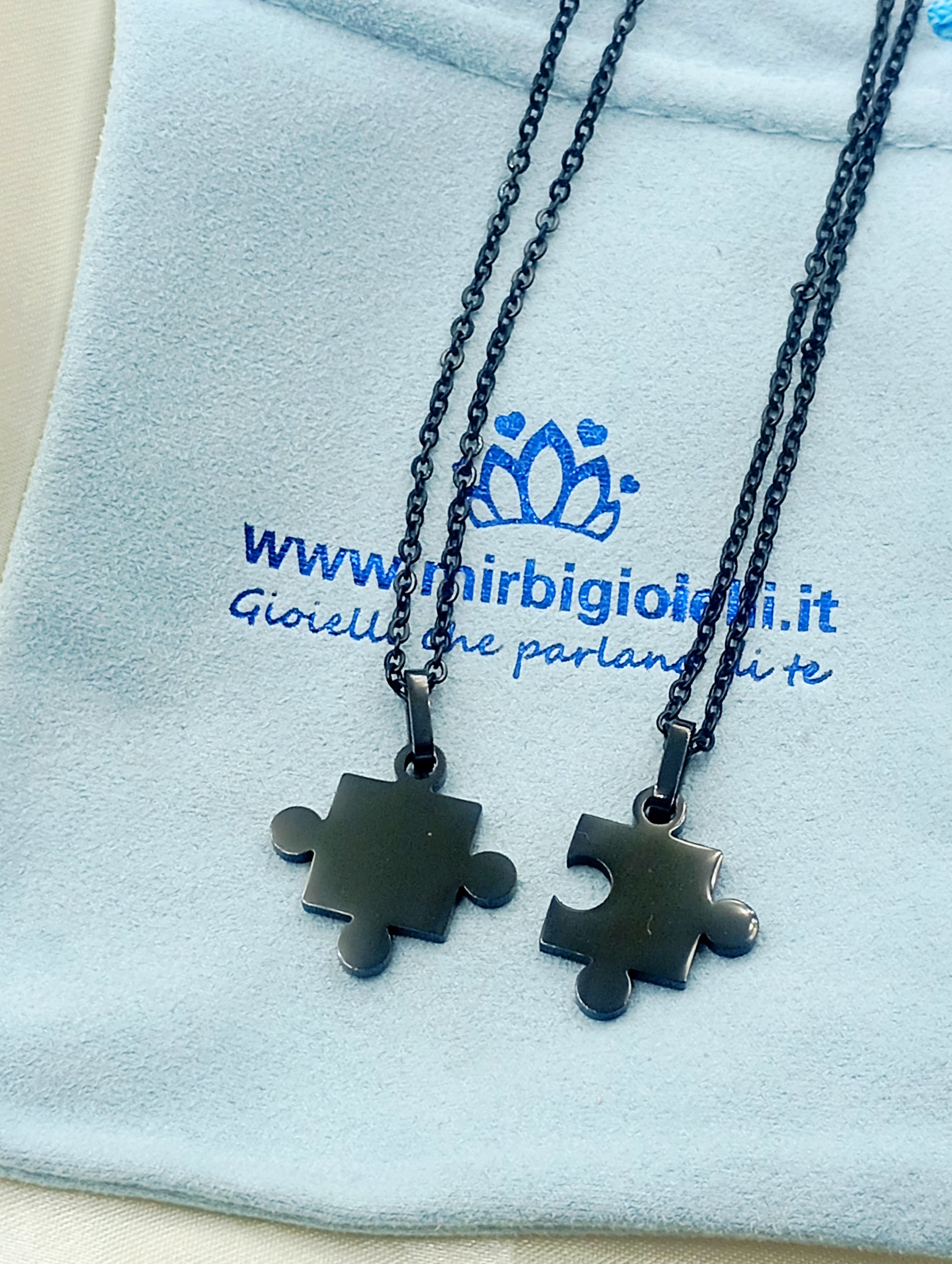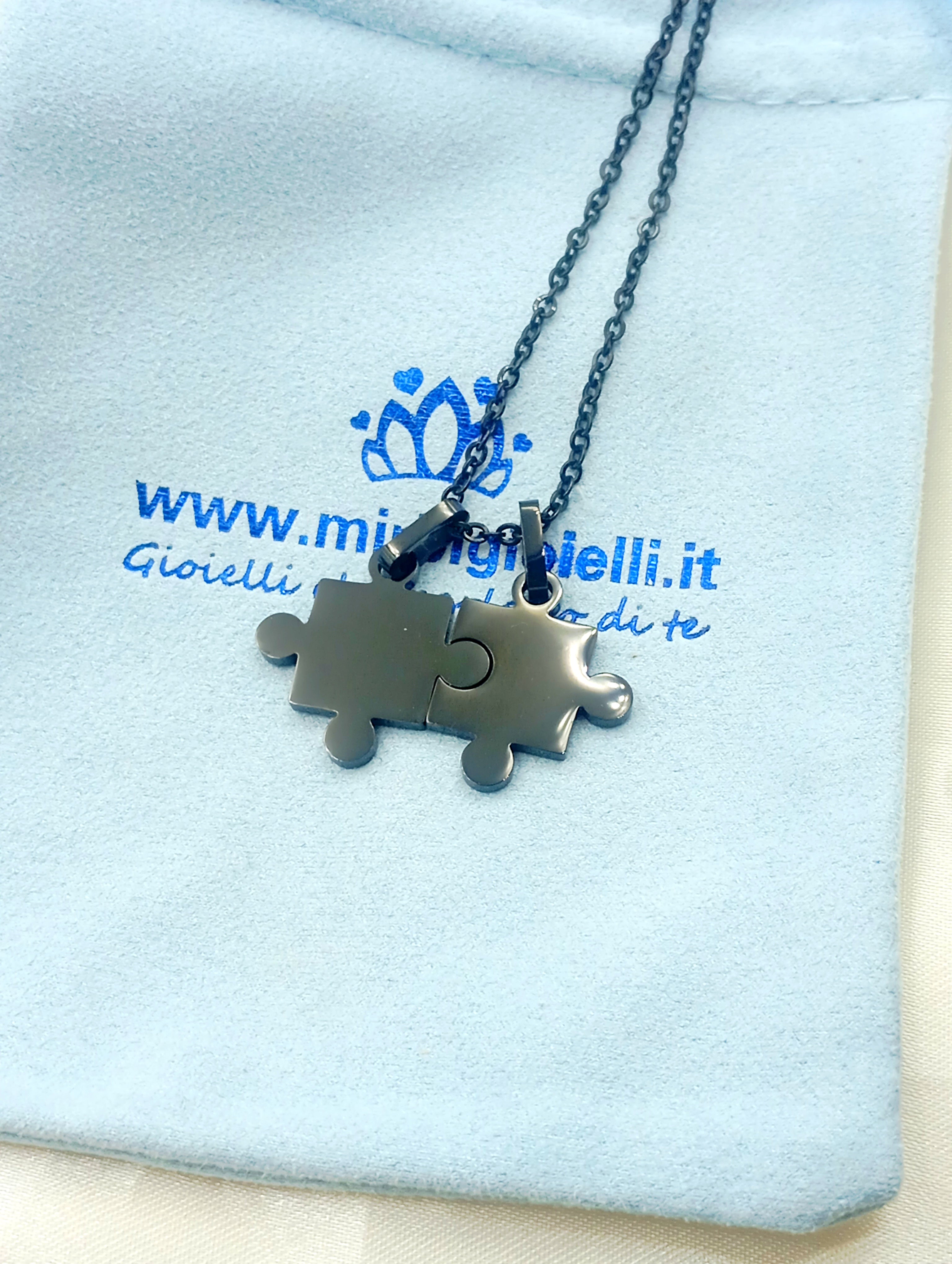 Coppia di puzzle in acciaio inossidabile con incisione. Disponibile nei diversi colori.
