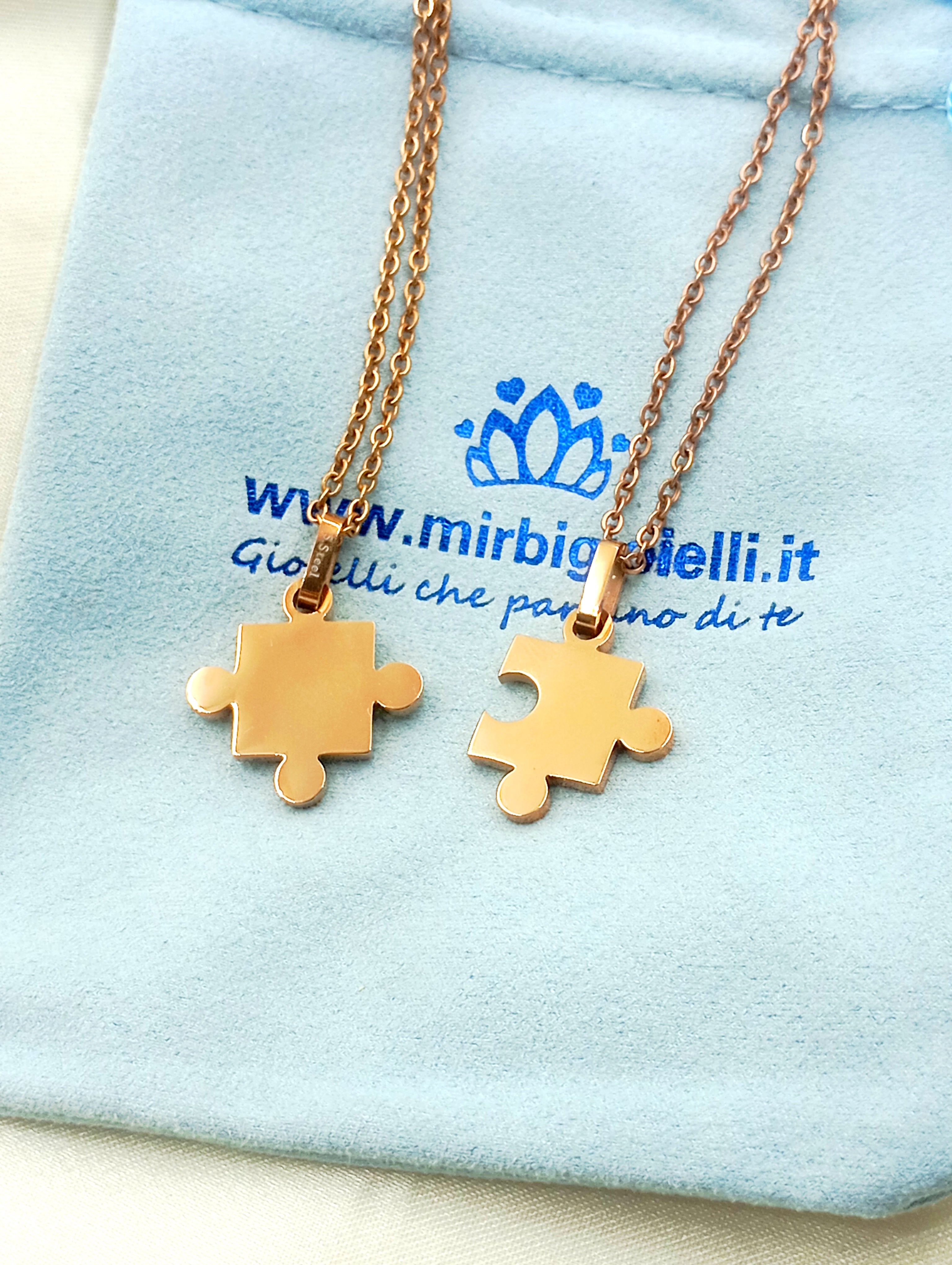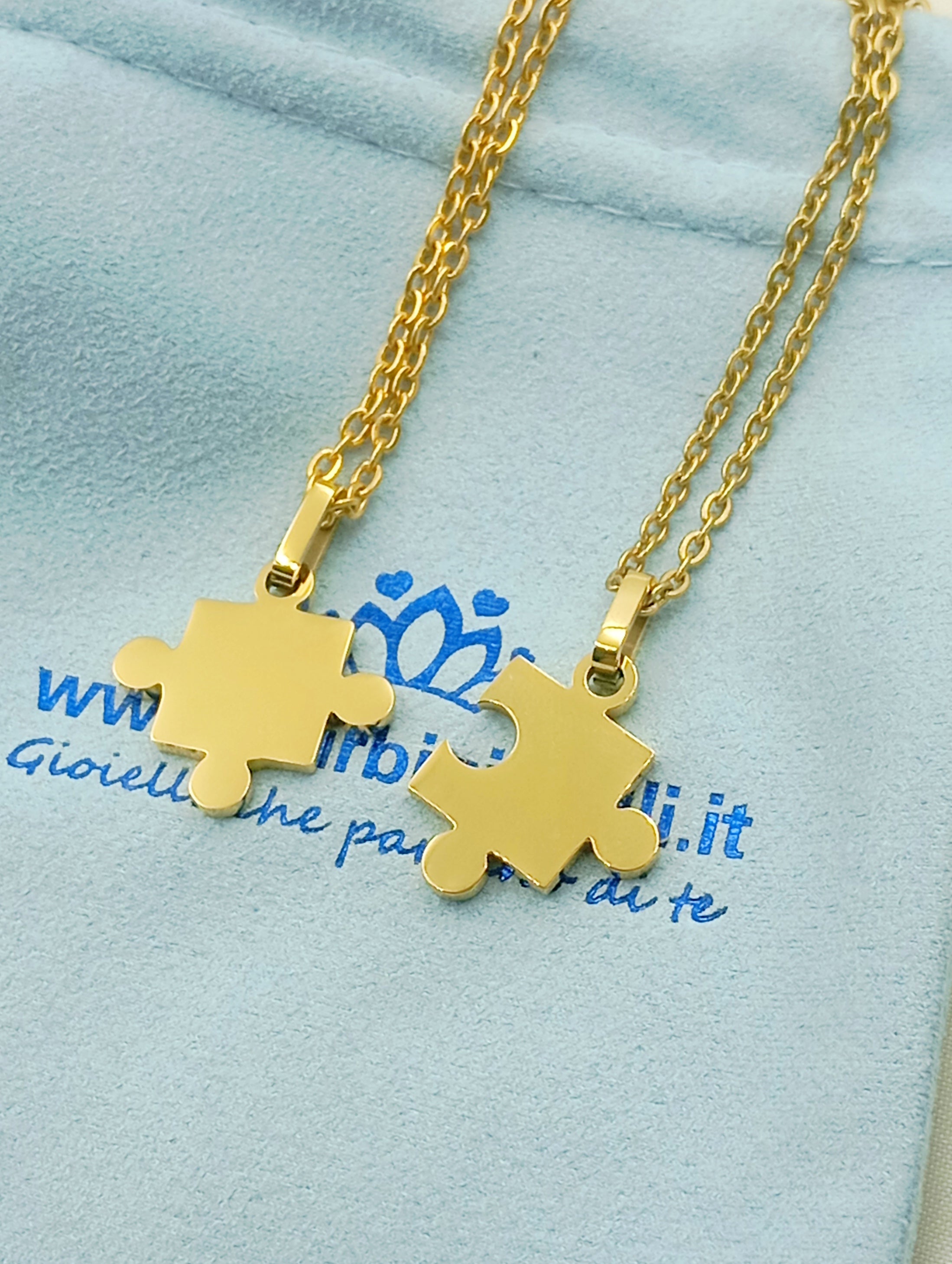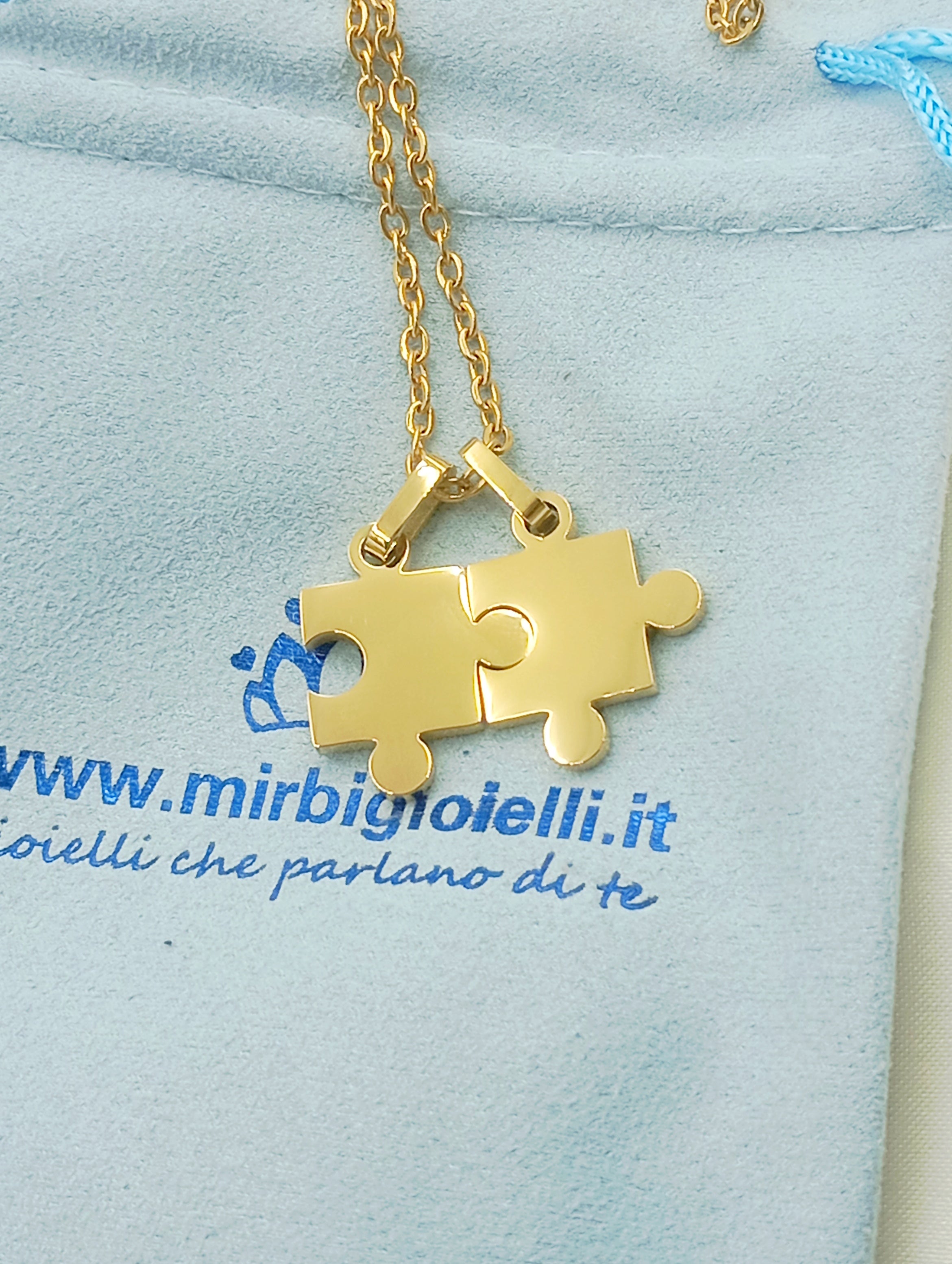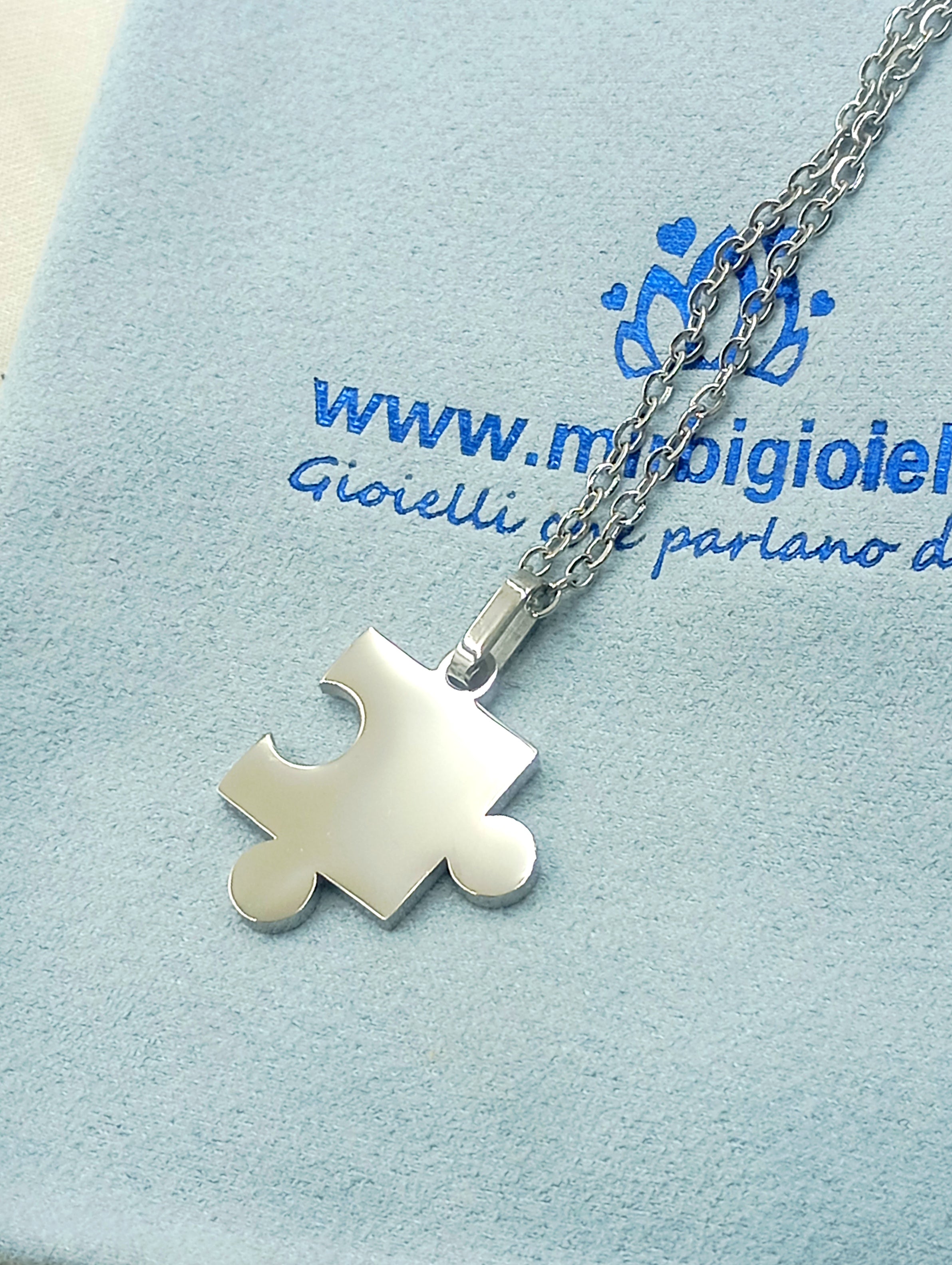 Coppia di puzzle in acciaio inossidabile con incisione. Disponibile nei diversi colori.