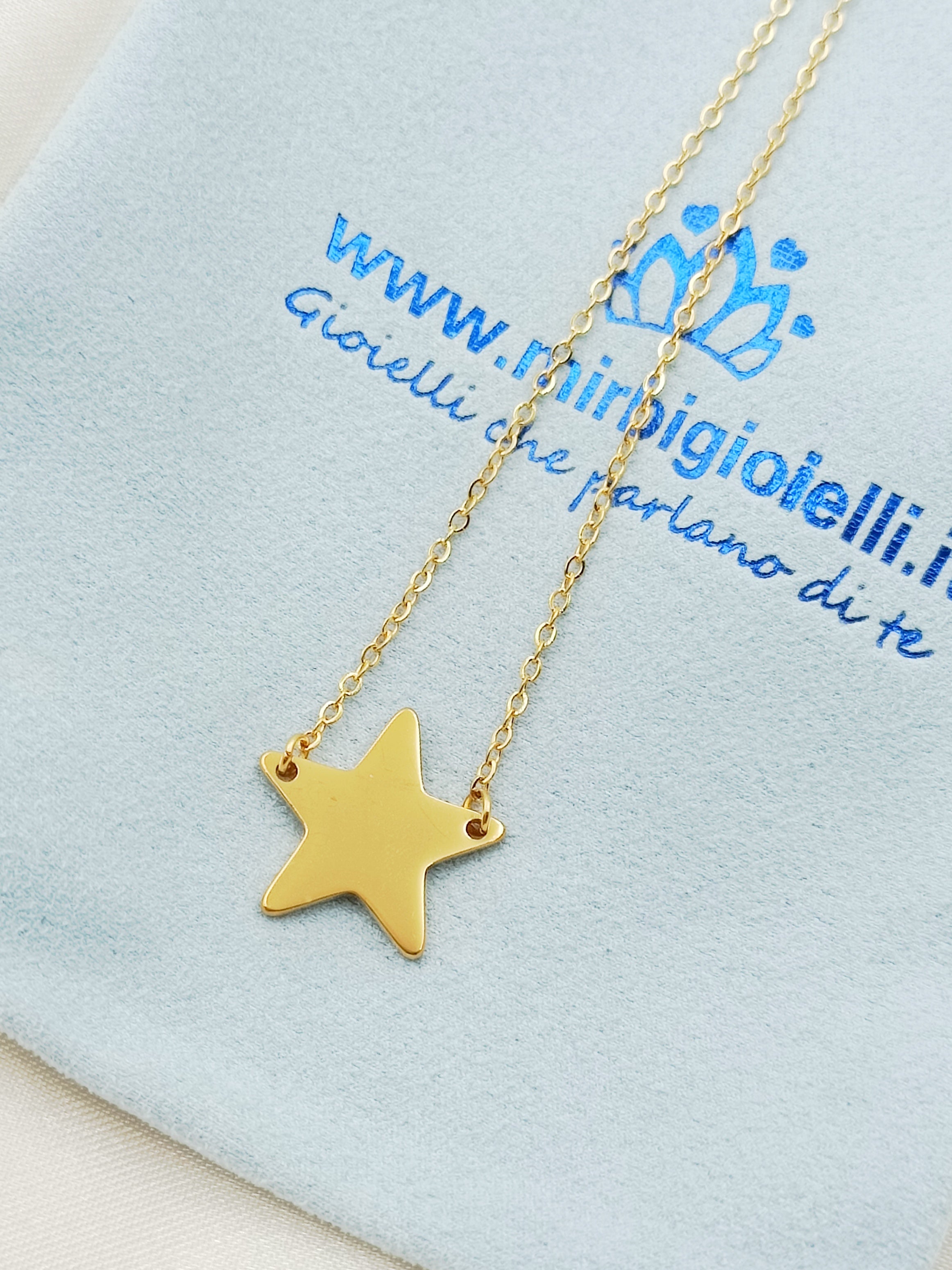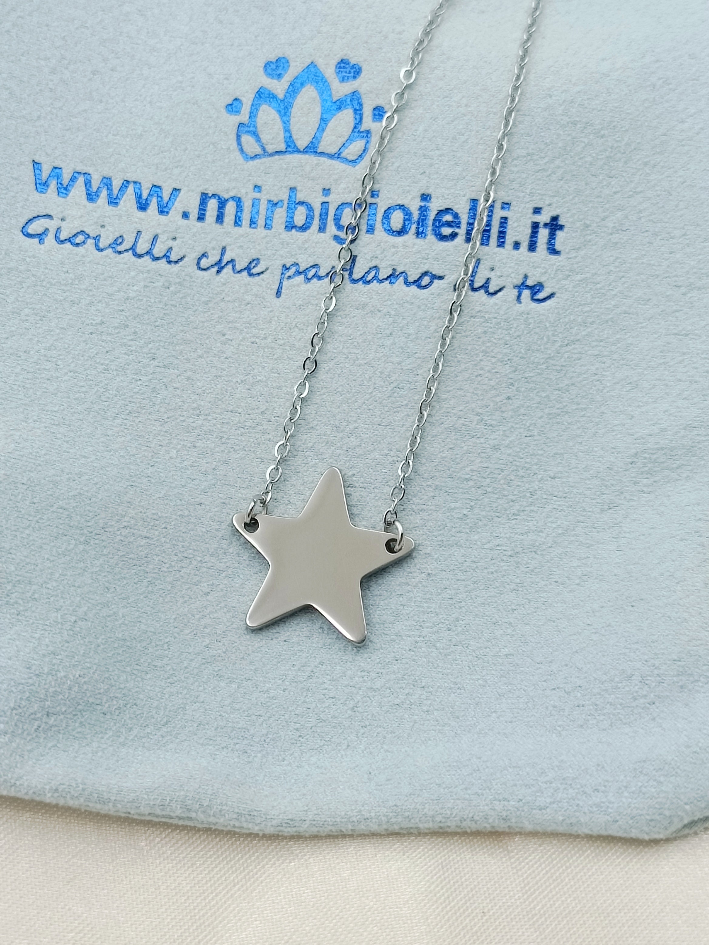 Girocollo con stella in acciaio anallergico e inossidabile, personalizzabile con incisione.