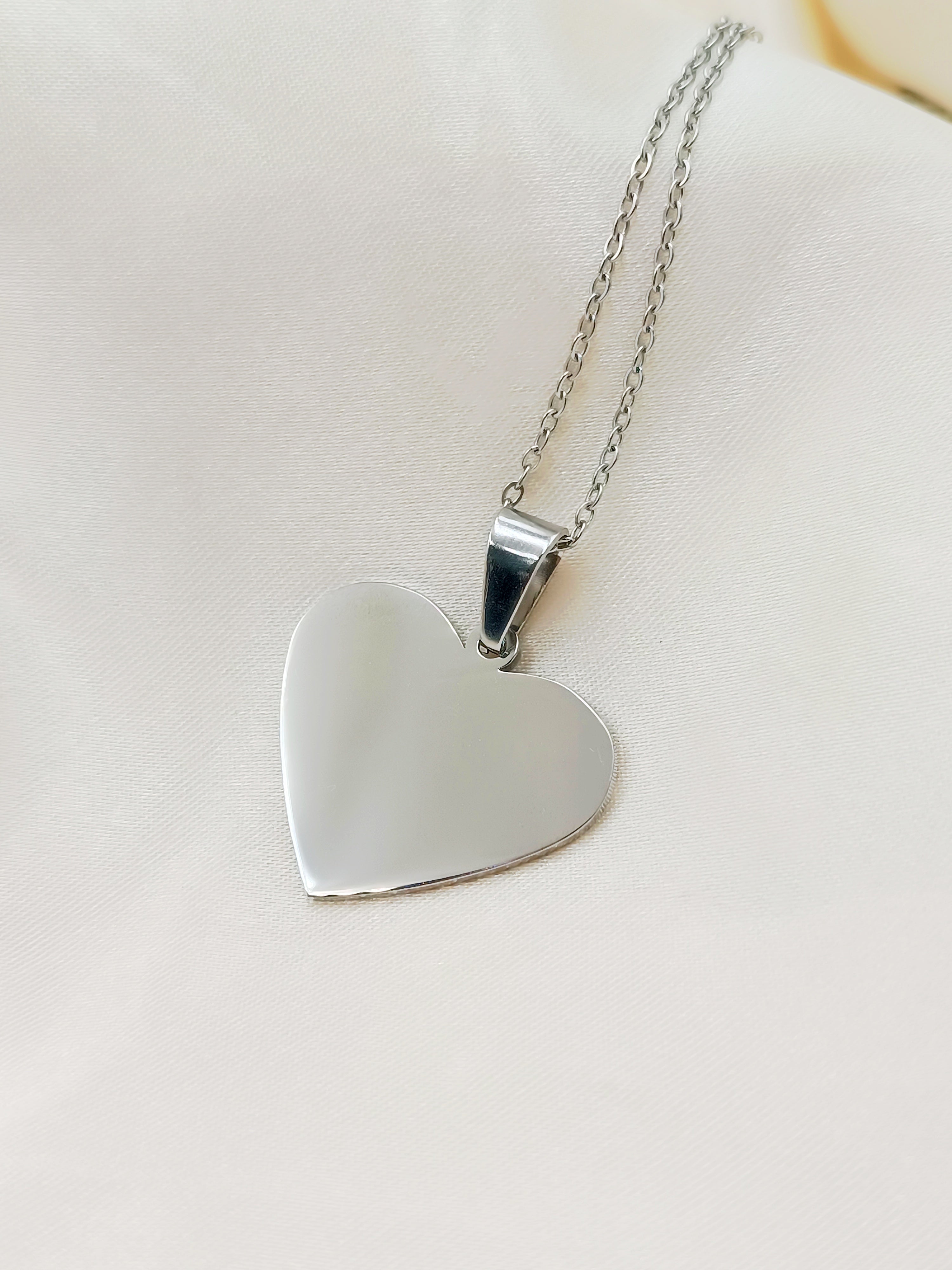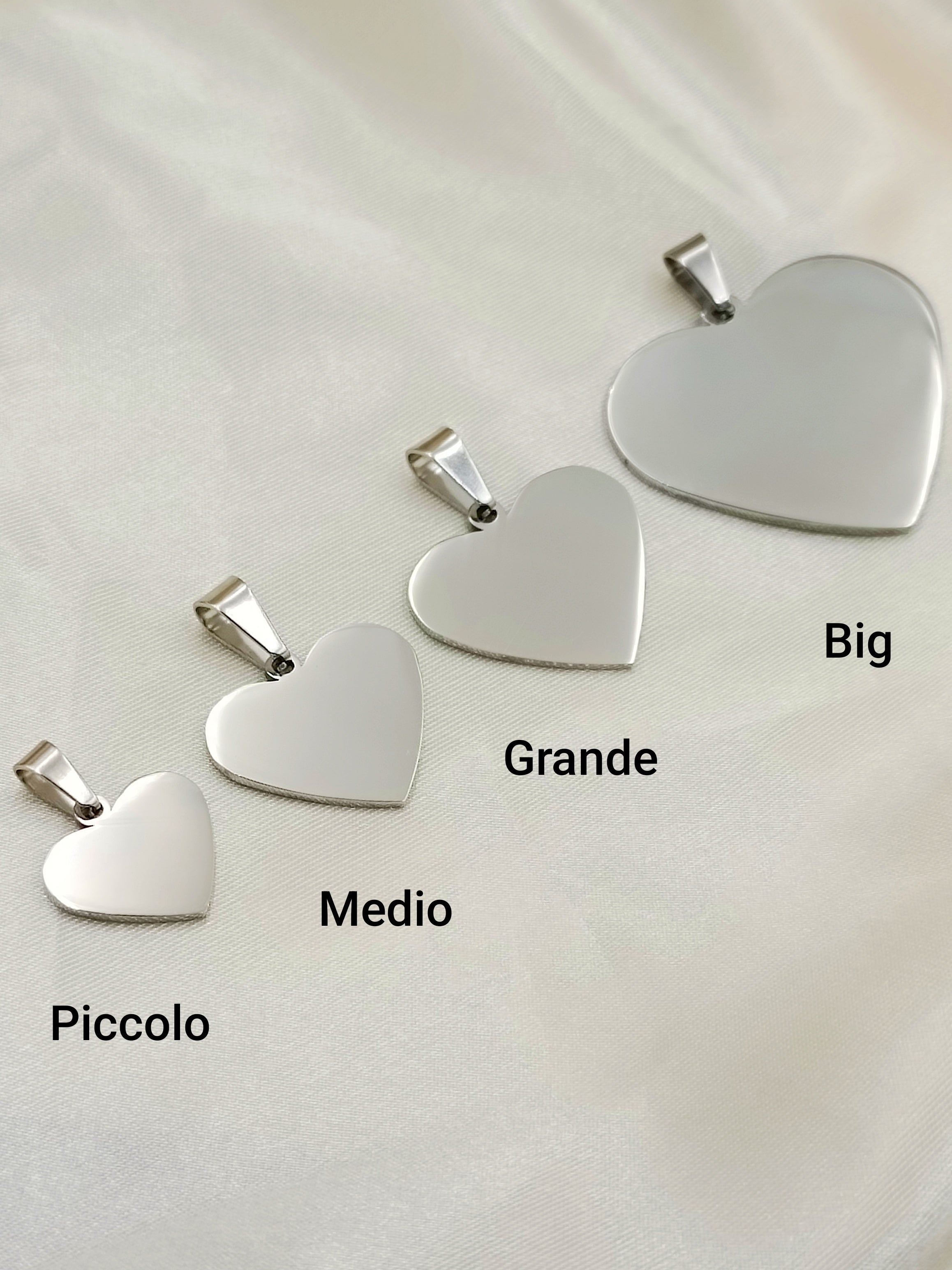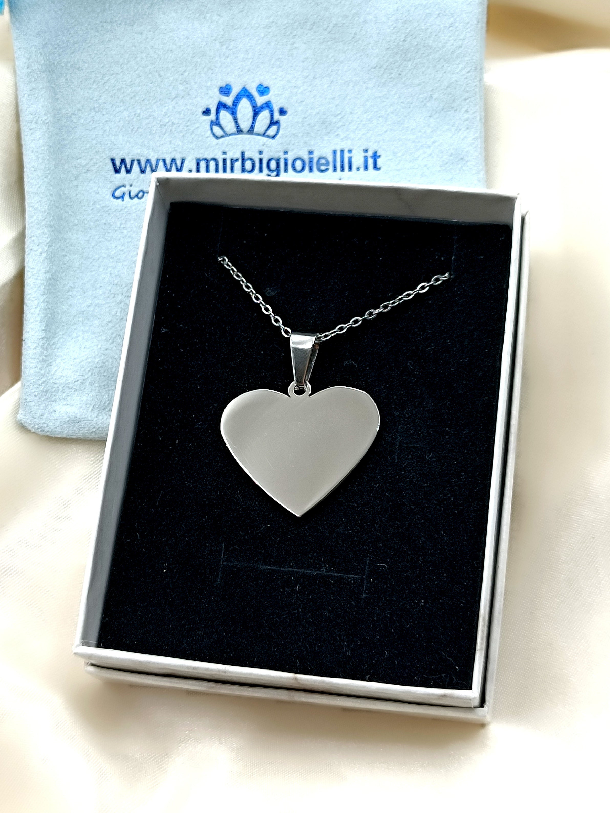 Collana con cuore grande in acciaio anallergico e inossidabile, personalizzabile con incisione o fotoincisione!