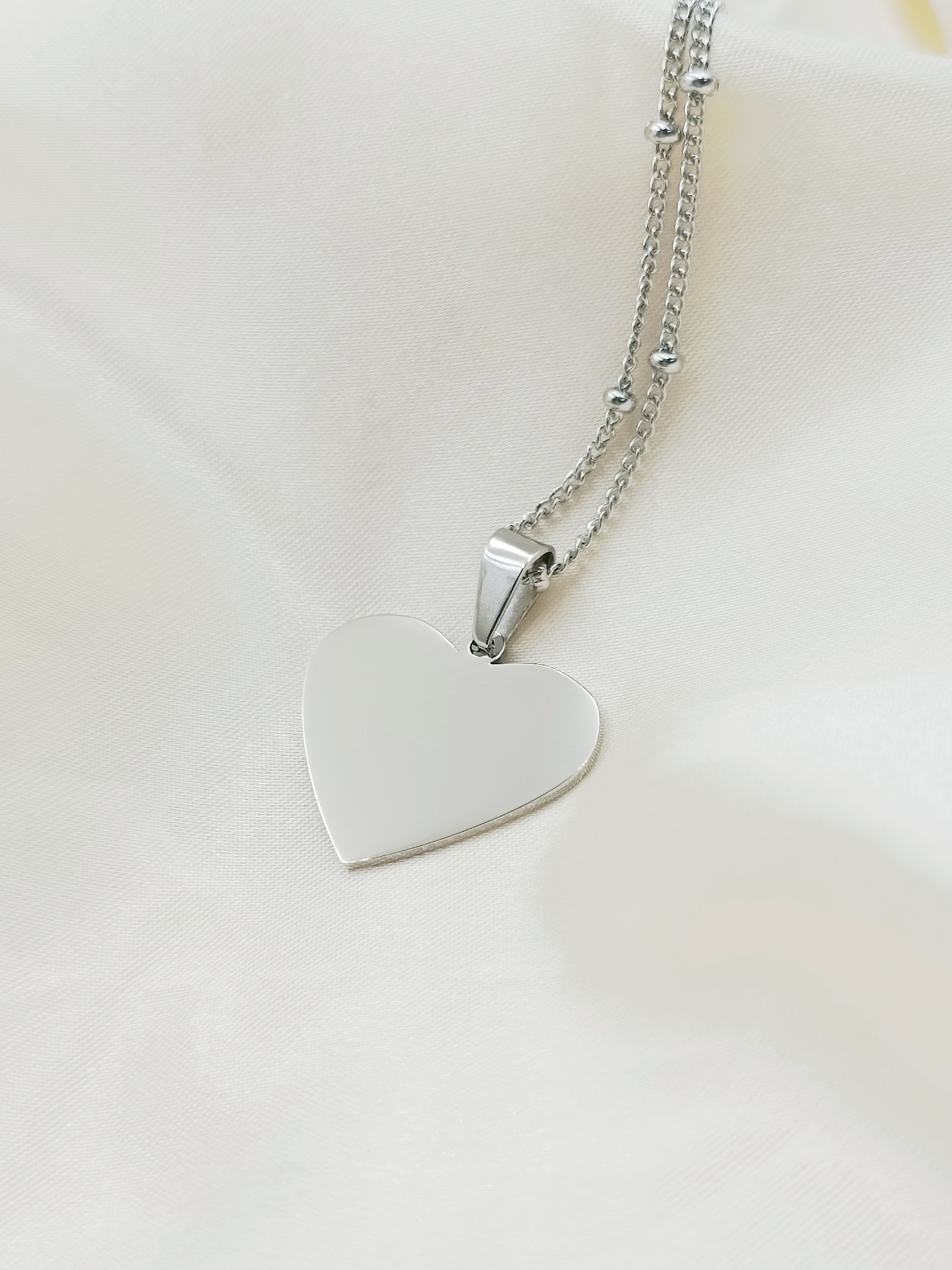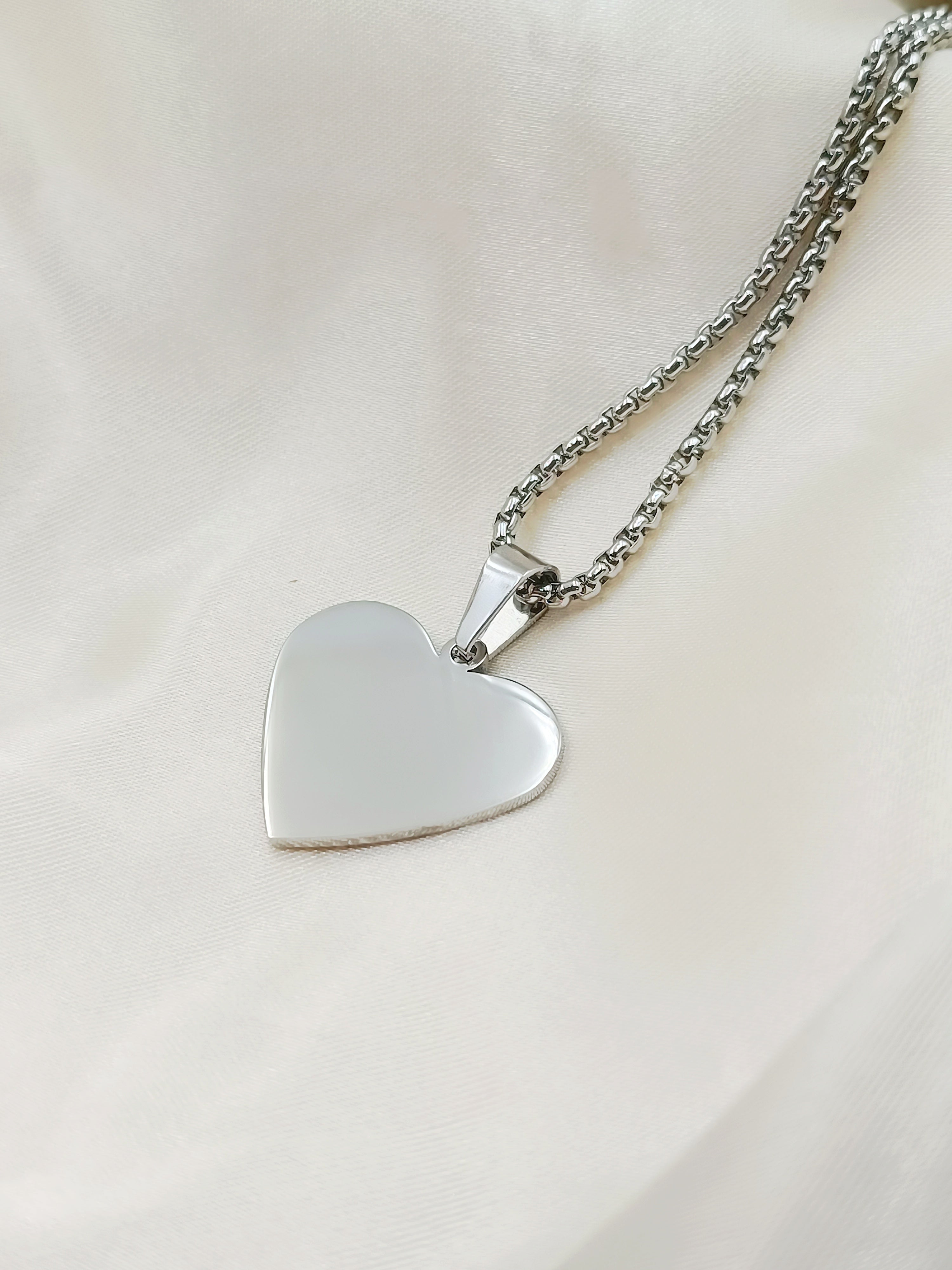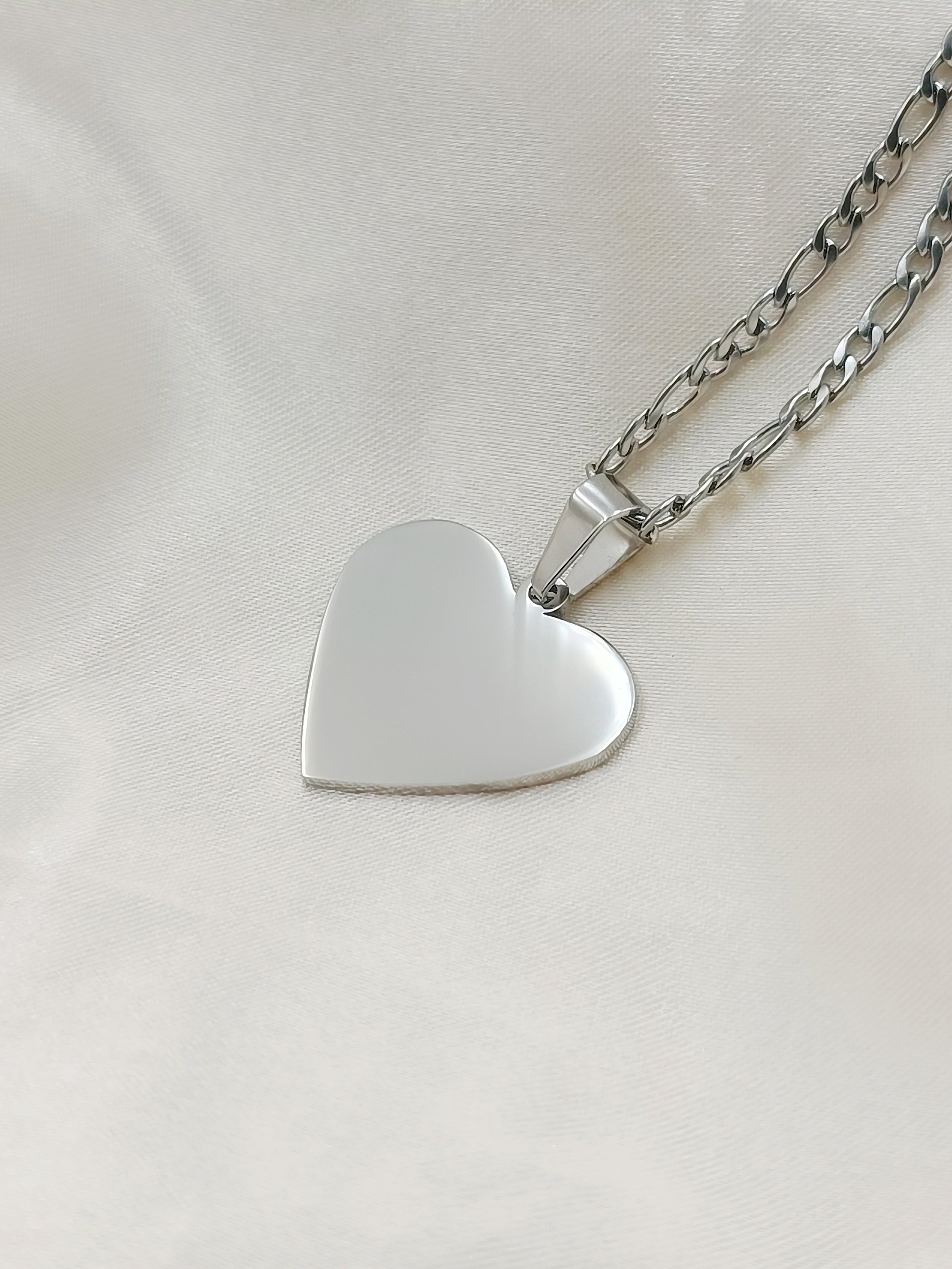 Collana con cuore grande in acciaio anallergico e inossidabile, personalizzabile con incisione o fotoincisione!