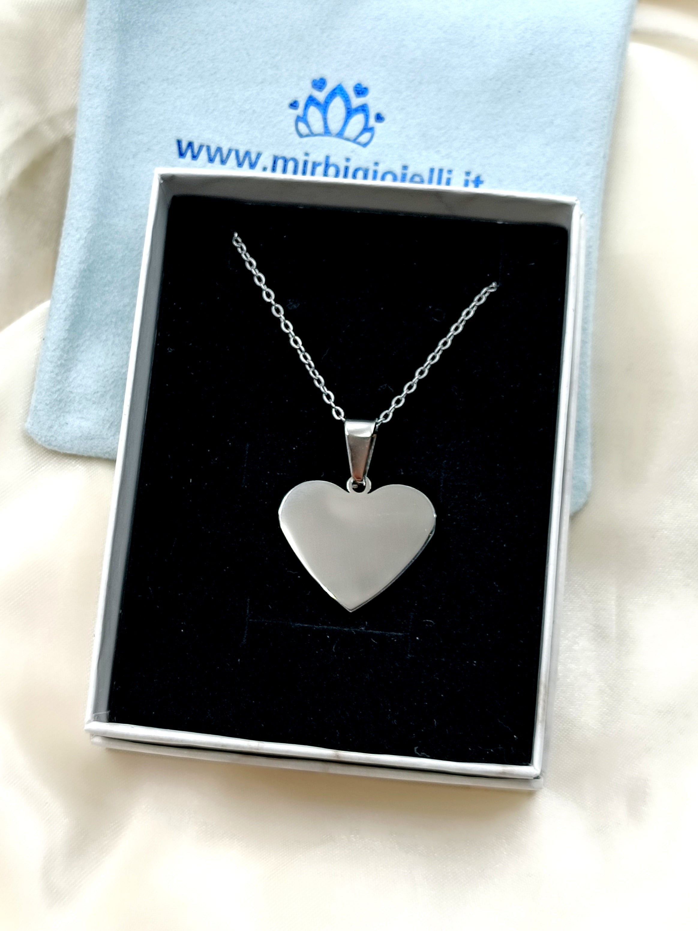 Collana con cuore medio in acciaio anallergico e inossidabile, personalizzabile con incisione o fotoincisione!
