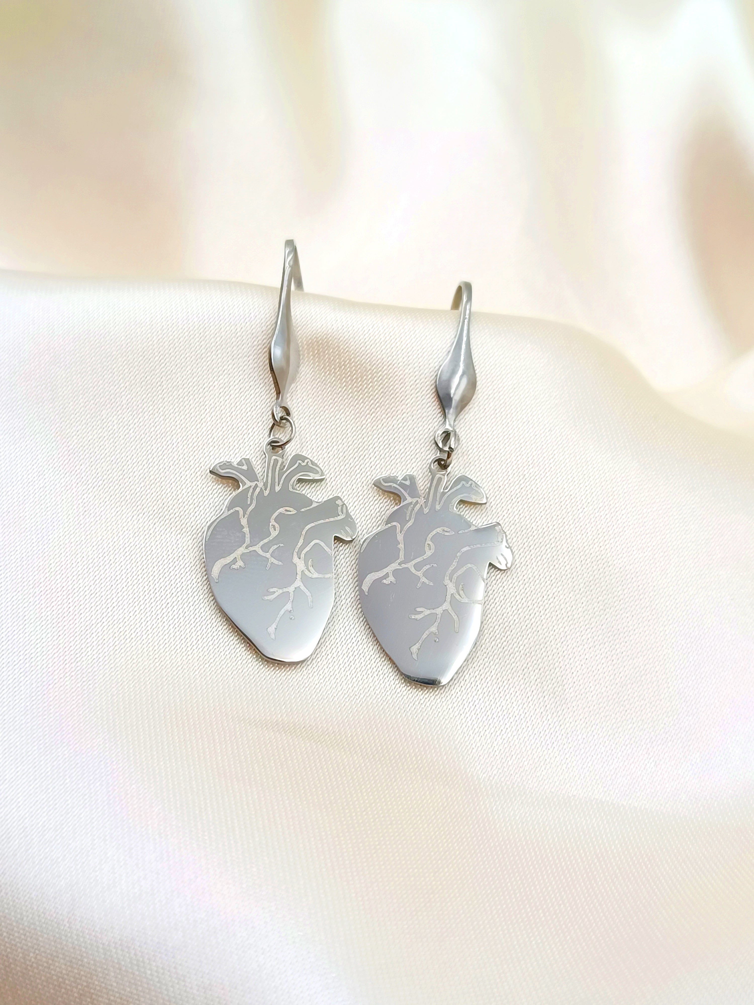 Orecchini in acciaio anallergico e inossidabile con cuore anatomico.
